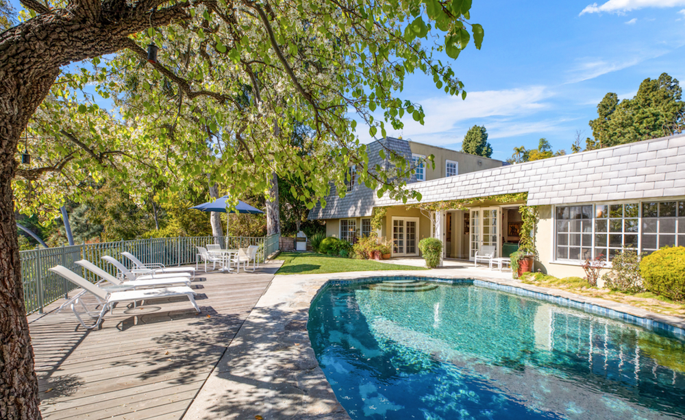 Located on a cul de sac, this remodeled Bel Air beauty has mountain and ocean views. The living room and family room all open up to a beautiful backyard with pool and grassy area. The large kitchen features Viking and Subzero appliances, double sinks, walk-in pantry, and an abundance of storage. The adjoining family room, master bedroom, 2 family bedrooms, and maids are all also on the first floor. The master bedroom includes fireplace, a luxe bath with Ultra-spa tub, steam shower, a walk-in closet and extra built-in's, and a large dressing area. The second story is a separate guest suite that consists of a large living room, bedroom, and bath - also perfect for a home office. Los Angeles living at it's finest!