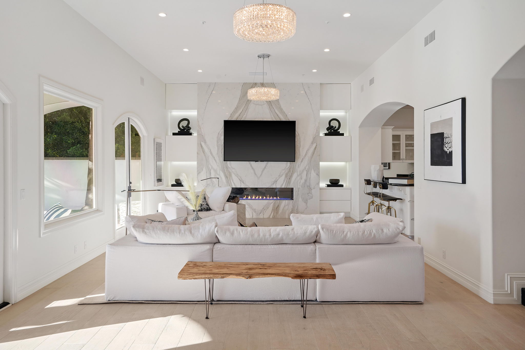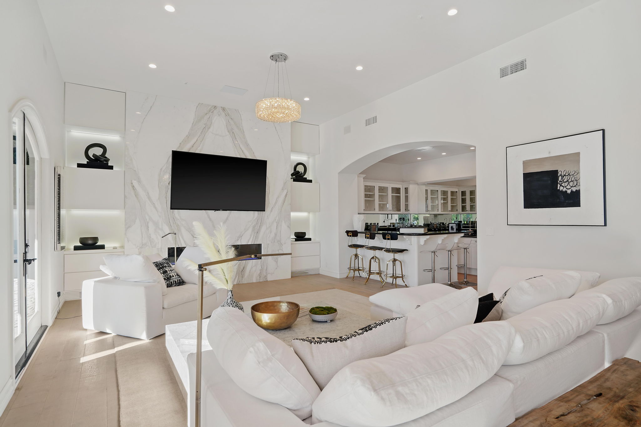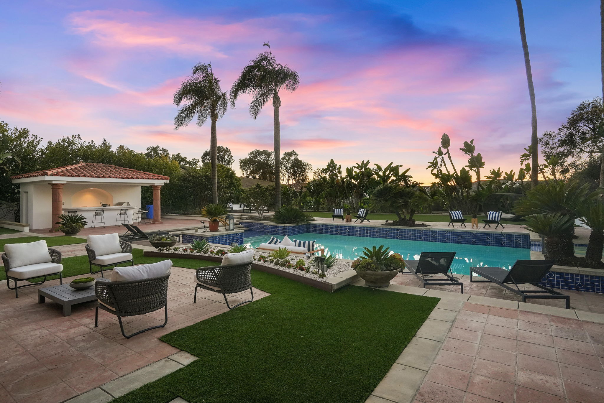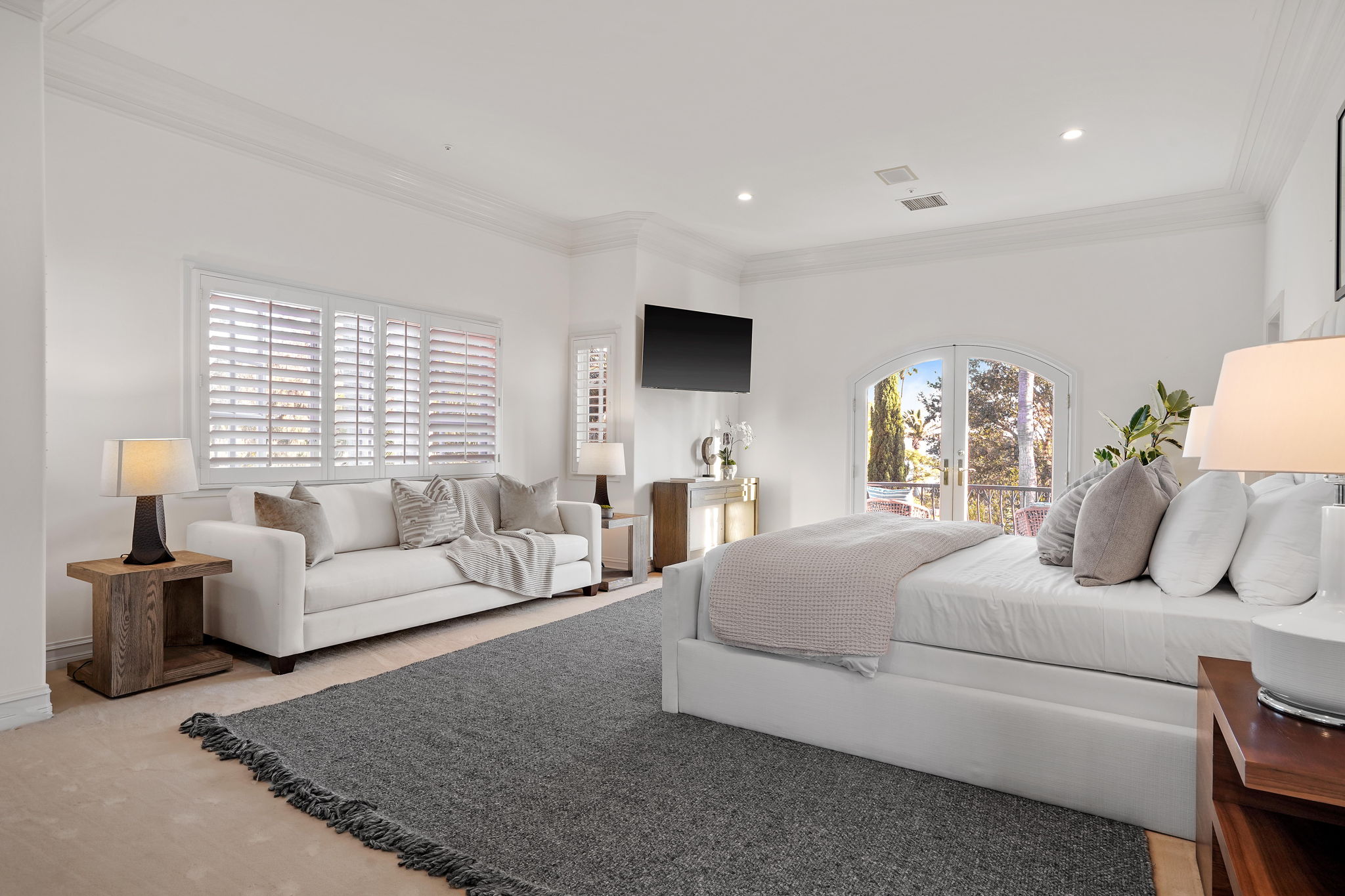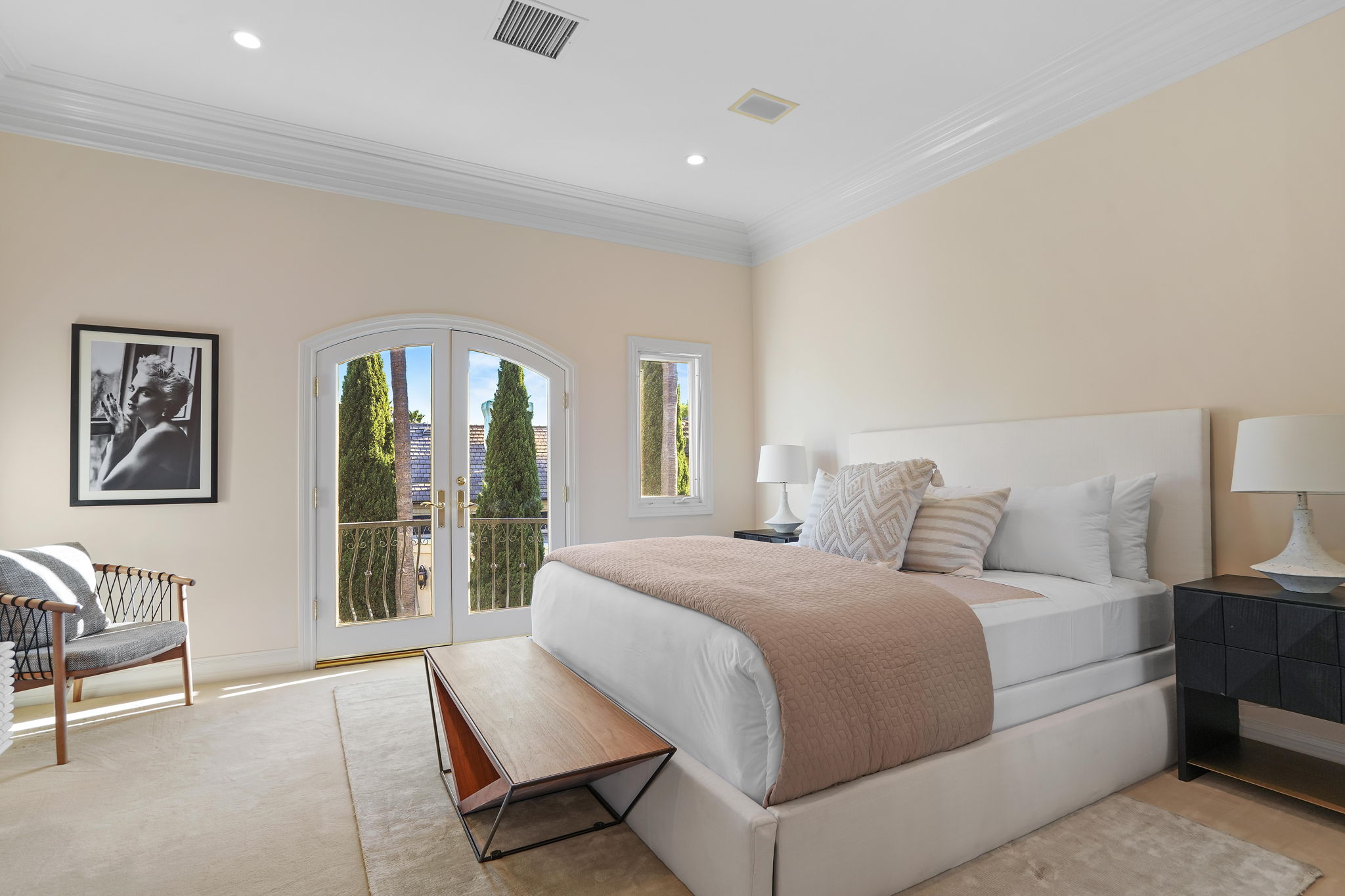 Set behind private gates on an almost three-quarters acre lot, this 9,600 Sq. Ft. home boasts unparallel amenities and scale, along with city and ocean views. The massive gated front yard is manicured to perfection and leads you to the grand foyer and sitting area with double-height ceilings and an abundance of natural light. The elegant dining room features paneled walls in black and white. The newly remodeled gourmet kitchen offers 4 new Fisher/Paykel dishwashers, 4 ovens, Gaggenau stove with 6 burners and 2 grills, large center island, and Du Chateau wood flooring – all leading to the large family room with an entertainment/bar area. The sun-lit paneled library/office enjoys views of the yard and built-in bookshelves. Upstairs, the spacious owner’s suite enjoys views of the ocean and Catalina Island, fireplace, automatic blackout shades, private balcony, and a walk-in closet, as well as a stunning newly remodeled master bathroom with hot tub and huge spa-like shower. All other guest bedrooms are en-suite and have been remodeled. Other rooms include a large dance/studio, bonus/game room, gym room, sauna, massage room, and wine cellar. The expansive private grounds include a massive saltwater pool and jacuzzi adorned with exquisite blue mosaic tile. A huge outdoor covered patio with automatic shades and a remodeled pool bathroom complete this private oasis, surrounded by no less than 37 palm trees. This “smart” home comes replete with extensive camera and security systems, heating, A/C, lighting, and TVs that can be controlled from anywhere in the world. This idyllic estate is located within the gated community of Bear Brand Ranch with 24-hour security. Close proximity to shops, gourmet restaurants, and renowned schools, and only minutes away from the ocean and harbor.