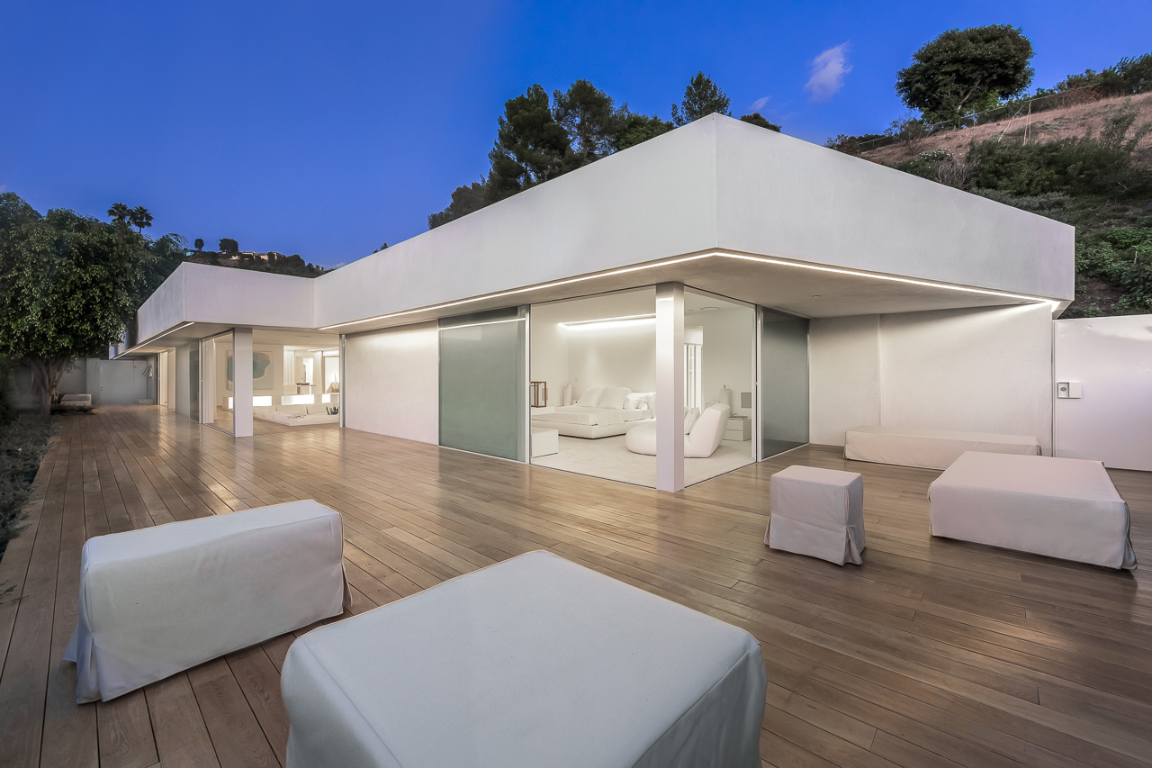 The Beverly Hills and California lifestyles come together in this newly completed first signature 1960s home re-imagined through the eyes of world-renowned architect Miguel Angel Aragones. Situated on a private perch with city and ocean views, the home is the perfect union of modern architecture with the natural setting creating the absolute finest indoor-outdoor living experience. From the moment of entrance, a spacious open floor plan, conversation living room, open dining area and kitchen all flow together for the ideal entertaining showplace. The 4 bedroom 4 bathroom home features the finest materials and pristine craftsmanship while boasting every cutting-edge technological amenity. Highlights of the home include a stunning master suite with a private shower garden, a lounge/media room, state-of-the-art kitchen and a kidney shaped pool. Quiet perfection, sophistication and elegance for a true quintessential Trousdale experience.