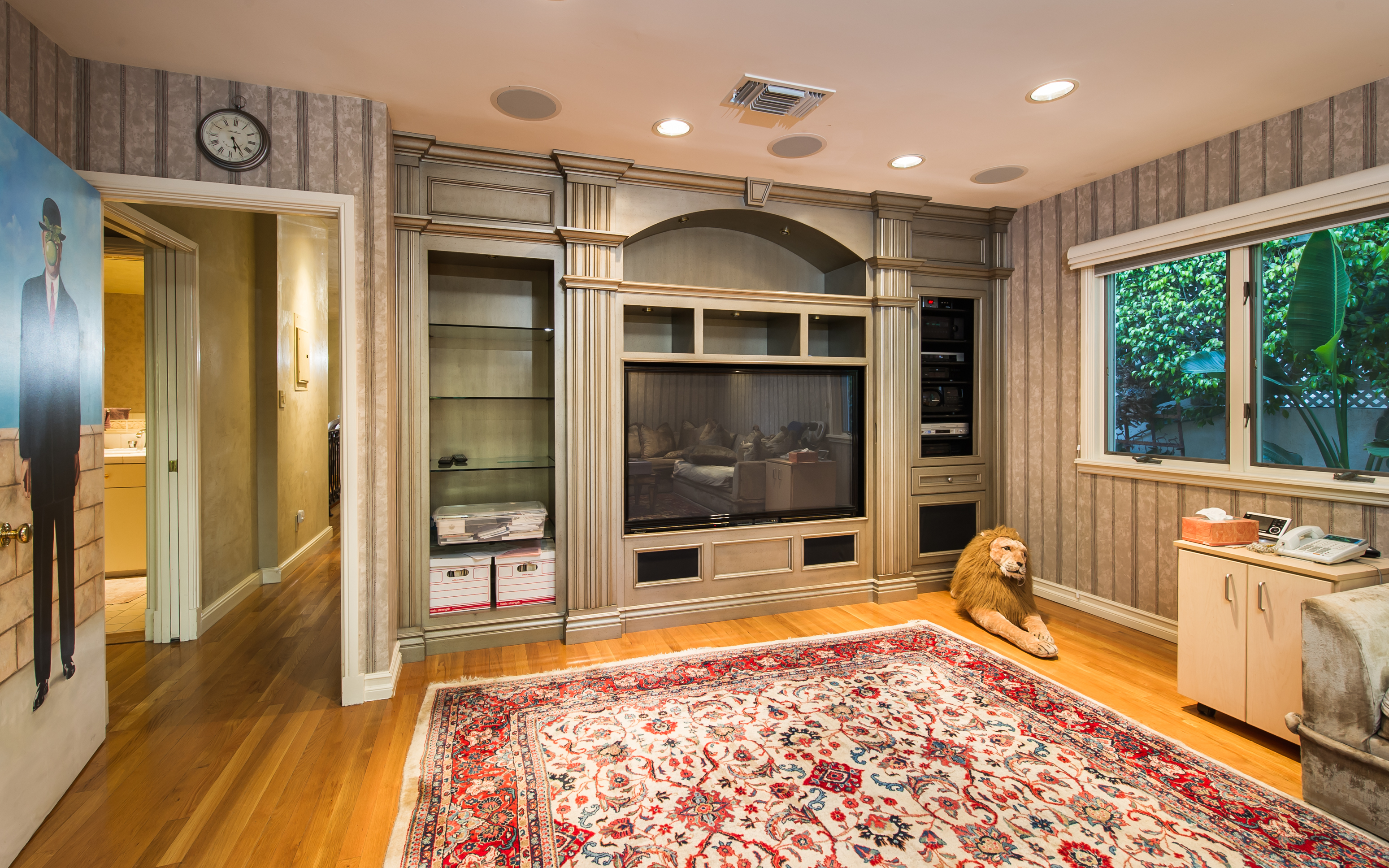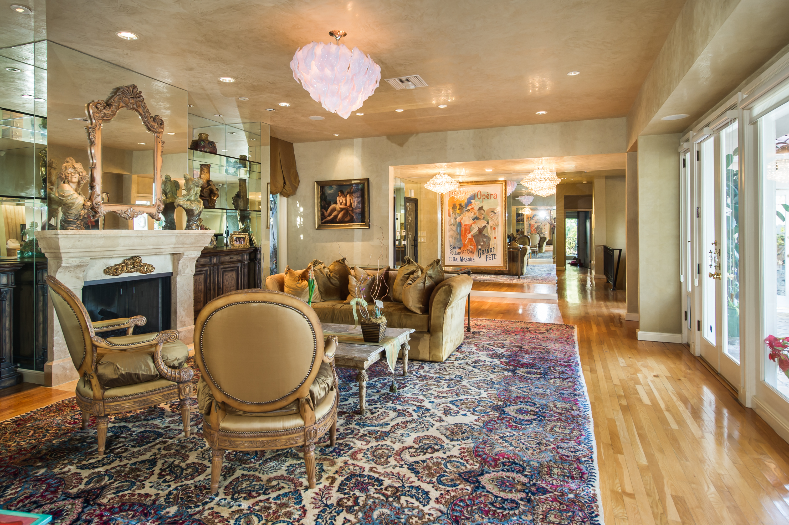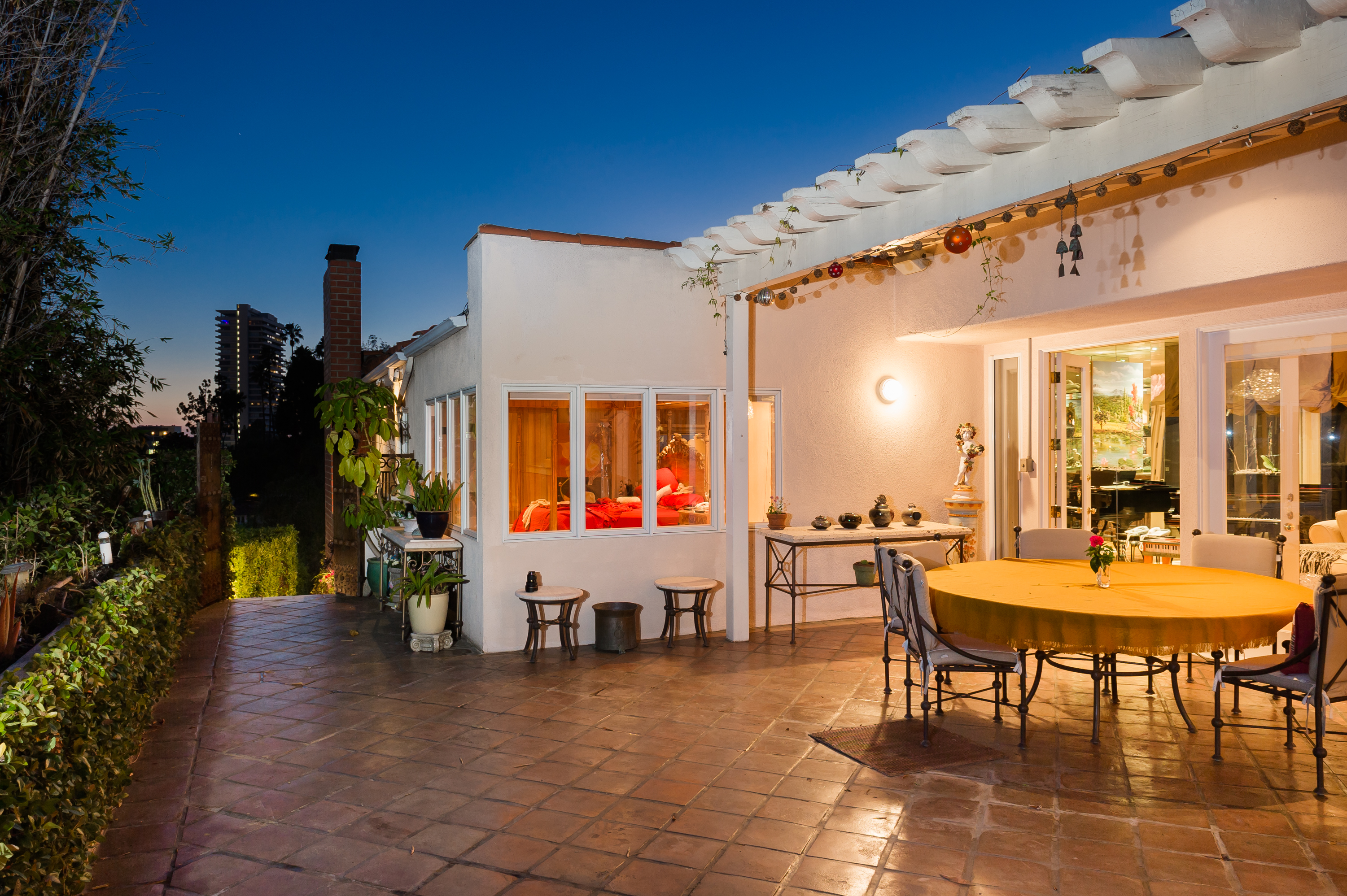 A stunning privately gated villa on a tremendous street-to-street lot in the famed "Sunset Strip". The 4,200+ sq. ft. home boasts 5 bedrooms and 4 baths, soaring ceilings, an expansive living room with fireplace and floor-to-ceiling French doors that open up to a romantic 800 sq. ft. terrace overlooking the city lights and ocean. Large master retreat with sitting area and 180 degree views from DTLA to the Pacific Ocean, fireplace, large bathroom with steam shower and huge walk-in closet. Private, saltwater pool and large grassy area.