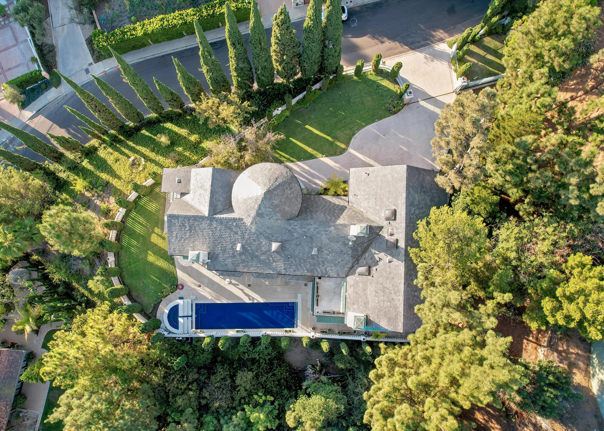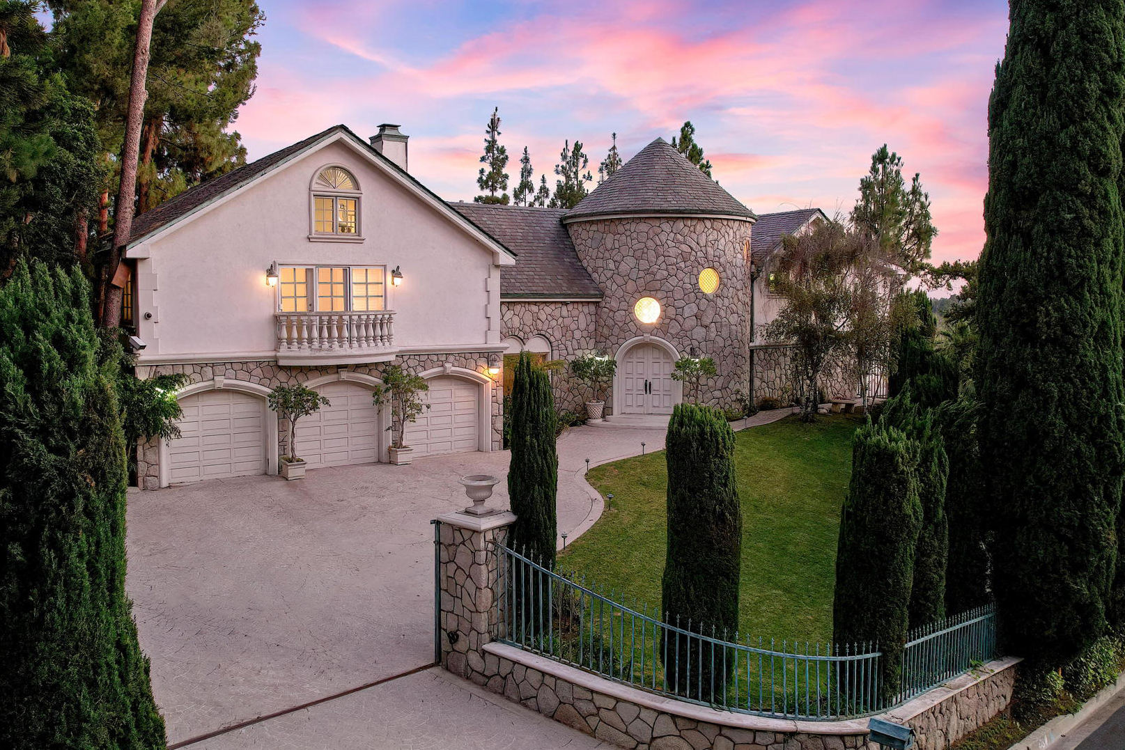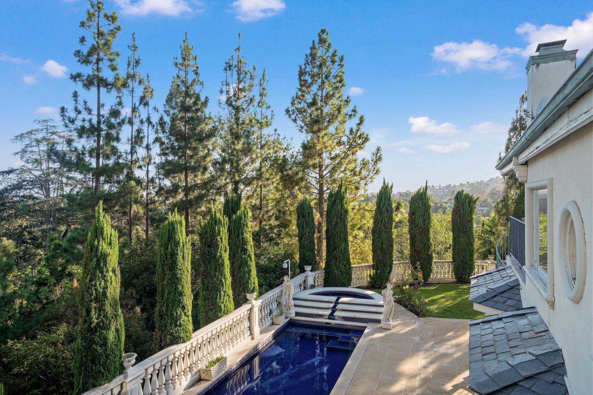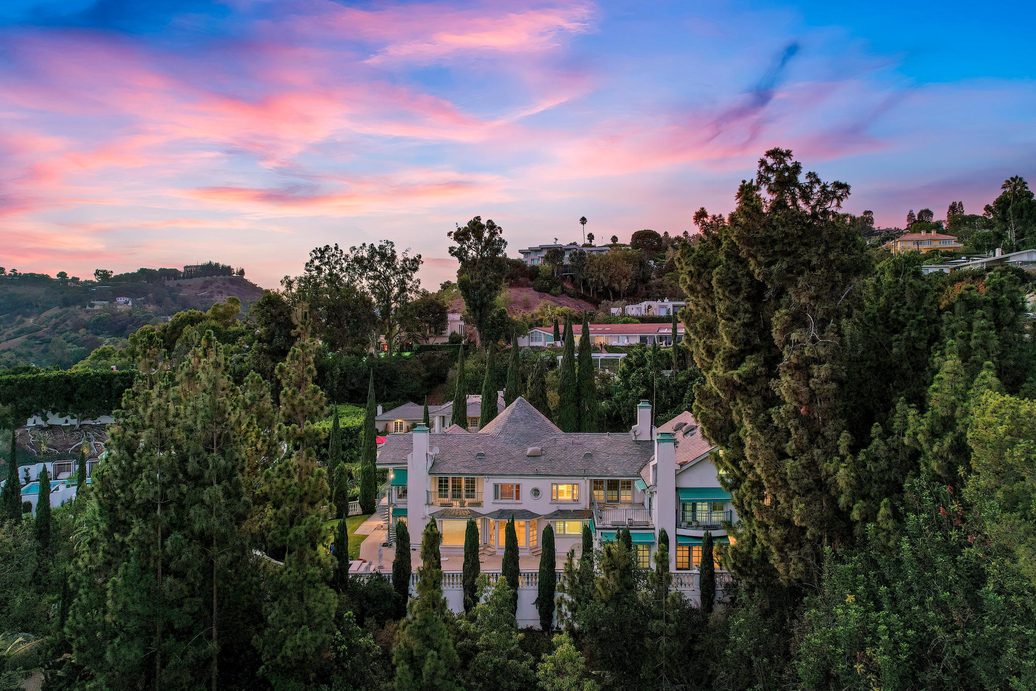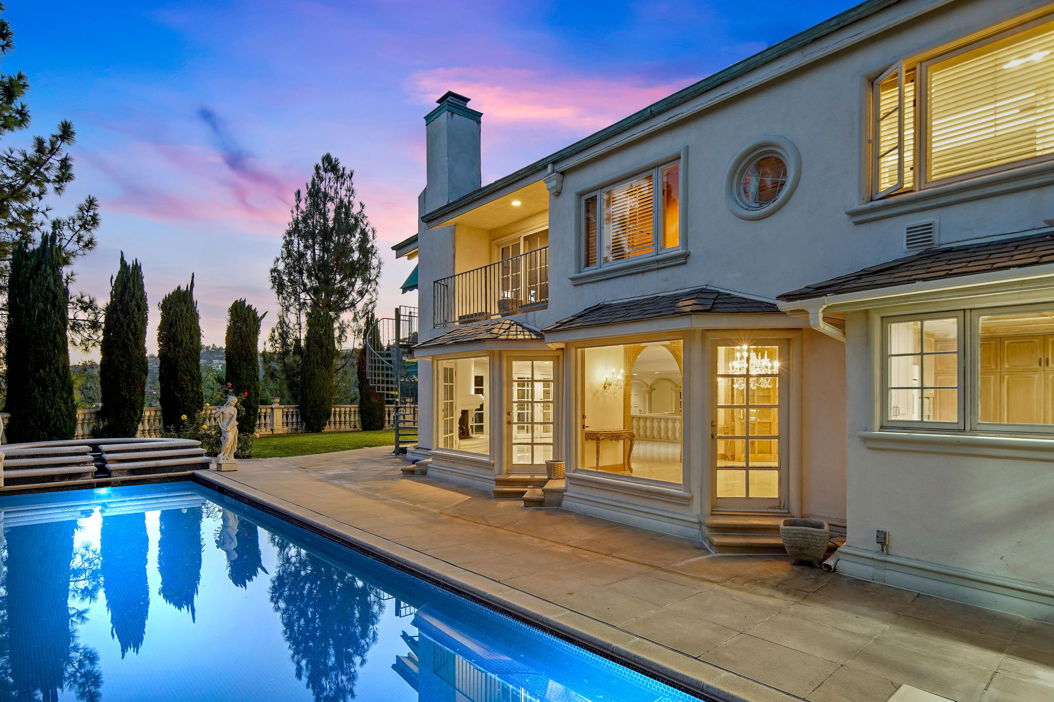 This rare offering with panoramic views sits secluded in lower Beverly Hills P.O. on nearly half an acre of land. A unique opportunity to either remodel the 6,100+ sq. ft. timeless traditional structure, or develop a brand new home, both which pencil out on investment. The existing home is replete with 6 beds and 8 baths, a gorgeous pool and spa, iron-gated driveway, and attached three car garage. Large cypress trees and mature landscaping surround the home offering complete privacy. The impressive facade features a charming stone rotunda exterior and Tudor-style windows. Enter into the stunning, formal foyer with marble floors, a crystal chandelier focal point, spiral staircase and Renaissance-style murals. French doors lead to the dining and living rooms replete with a built-in buffet, console tables, sunken bar, a large fireplace, and a plethora of natural light. The rest of the residence features oak wood paneling, four fireplaces, custom built-ins, an elevator, sauna, and multiple balconies with city and tree top views.