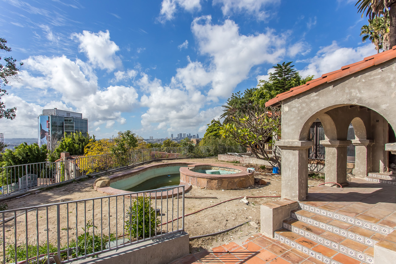 Needs complete renovation. A prime development opportunity just above the Sunset Strip with stunning Century City views. This 7,703 square foot flat parcel has an impressive soils report, existing permitted retaining walls and preliminary plans for a 3,500, 4,200 and 6,200 square foot home.