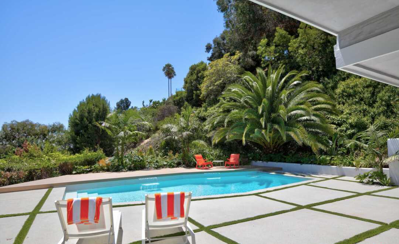 Listing withdrawn until 1/25/21. $1M reduction on this spectacular and significant midcentury Modern home up a gated private driveway, on one of Los Angeles' most desirable and private cul-de-sac streets. Designed by Jacob Tracht A.I.A. in 1959, the superbly sited residence is on a 34,656-square-foot-lot with a large flat pad, great city views, and privacy. The one-story, five-bedroom, five-bathroom home has a grand, pavilion-like great room with floor-to-ceiling walls of glass, high ceilings, and a stunning stone fireplace. A cook's kitchen is adjacent, with high-end appliances and finishes. The spacious primary bedroom suite looks out to the zen garden and views. Gorgeous outdoor spaces, a large, solar-heated swimmer's pool, a generator, and parking for more than six cars complete this very special property.