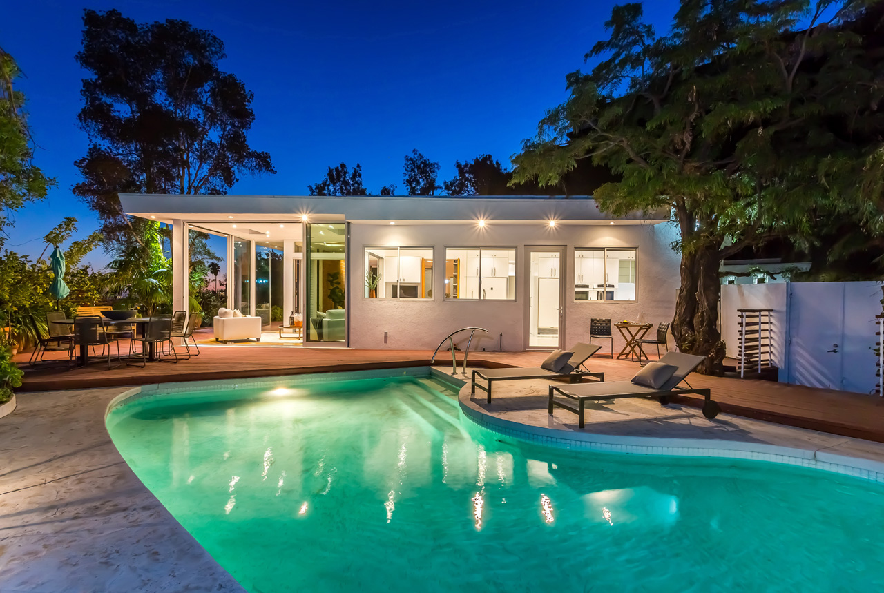 On the market for the first time in more than 30 years, this private midcentury estate is situated on over an acre of land with impressive city views, all set behind a long private driveway at the end of a quiet cul-de-sac. With more than 3,000 sq. ft., 4 beds and 5 baths, this house can be enjoyed just as it is, although the land is worth at least as much as the house as developers could construct a new 12,000+ sq. ft. residence (via Underbuilt). Featuring floor to ceiling windows and a plethora of skylights, this home allows an abundance of natural light. Ideal for entertaining with a wrap-around deck providing the perfect indoor/outdoor access from the spacious kitchen to the beautiful pool.