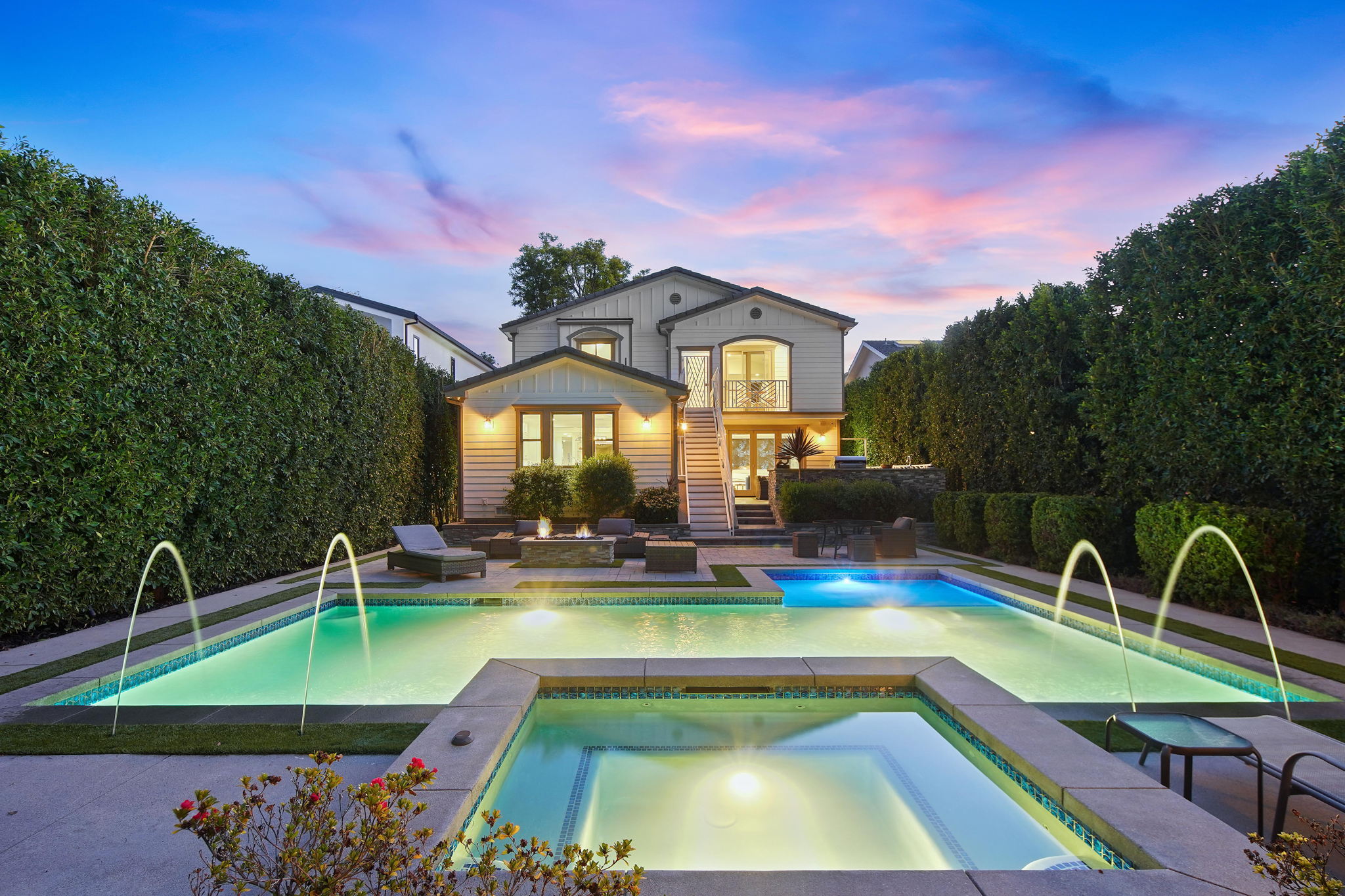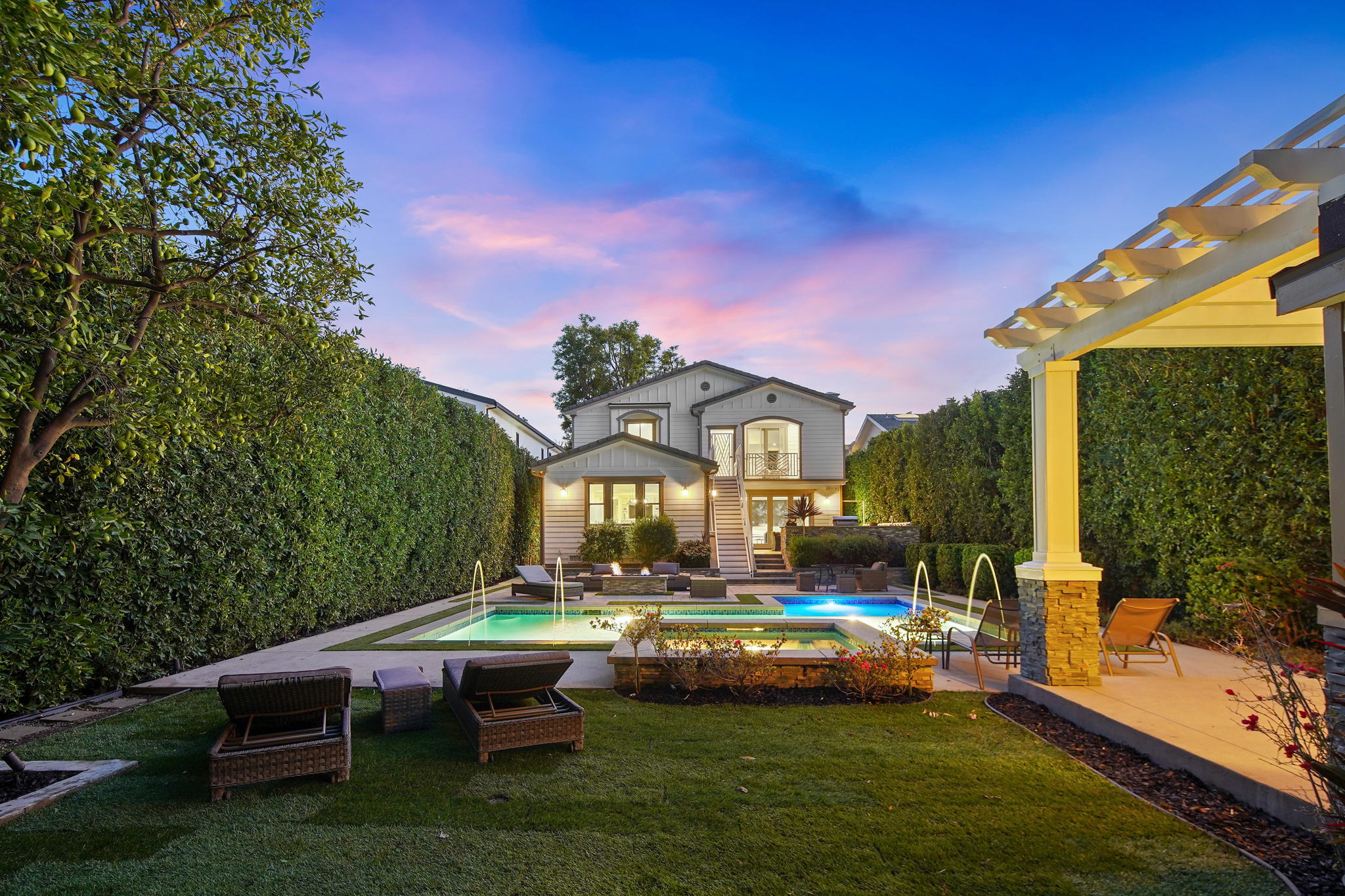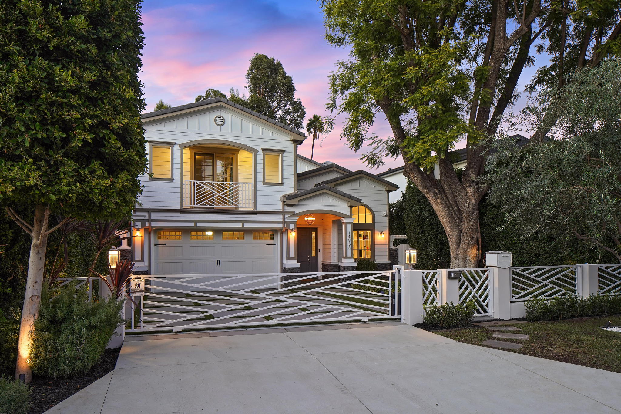 Nestled in prime Sherman Oaks just south of Ventura Blvd., this Cape Cod estate sits tucked away behind private gates and a lush front yard. Enter through the grand foyer boasting double-height ceilings, into the beautiful home replete with stunning white oak floors and custom built-in finishes and fixtures throughout. Large windows allow for abundant natural light to stream into the living room with a fireplace. There is ample space to cook and eat in the chefs kitchen with a center island and breakfast nook, which includes modern stainless steel appliances. The primary suite boasts a fireplace and expansive en-suite bathroom with a separate soaking tub and walk-in shower, as well as a double vanity. Enjoy the pool and spa in the private backyard with cabana, fire pit, and dining area perfect for relaxing or entertaining. New solar system, converted gym, automated smart home Crestron system, and gated driveway parking with 2-car garage complete this impressive offering.