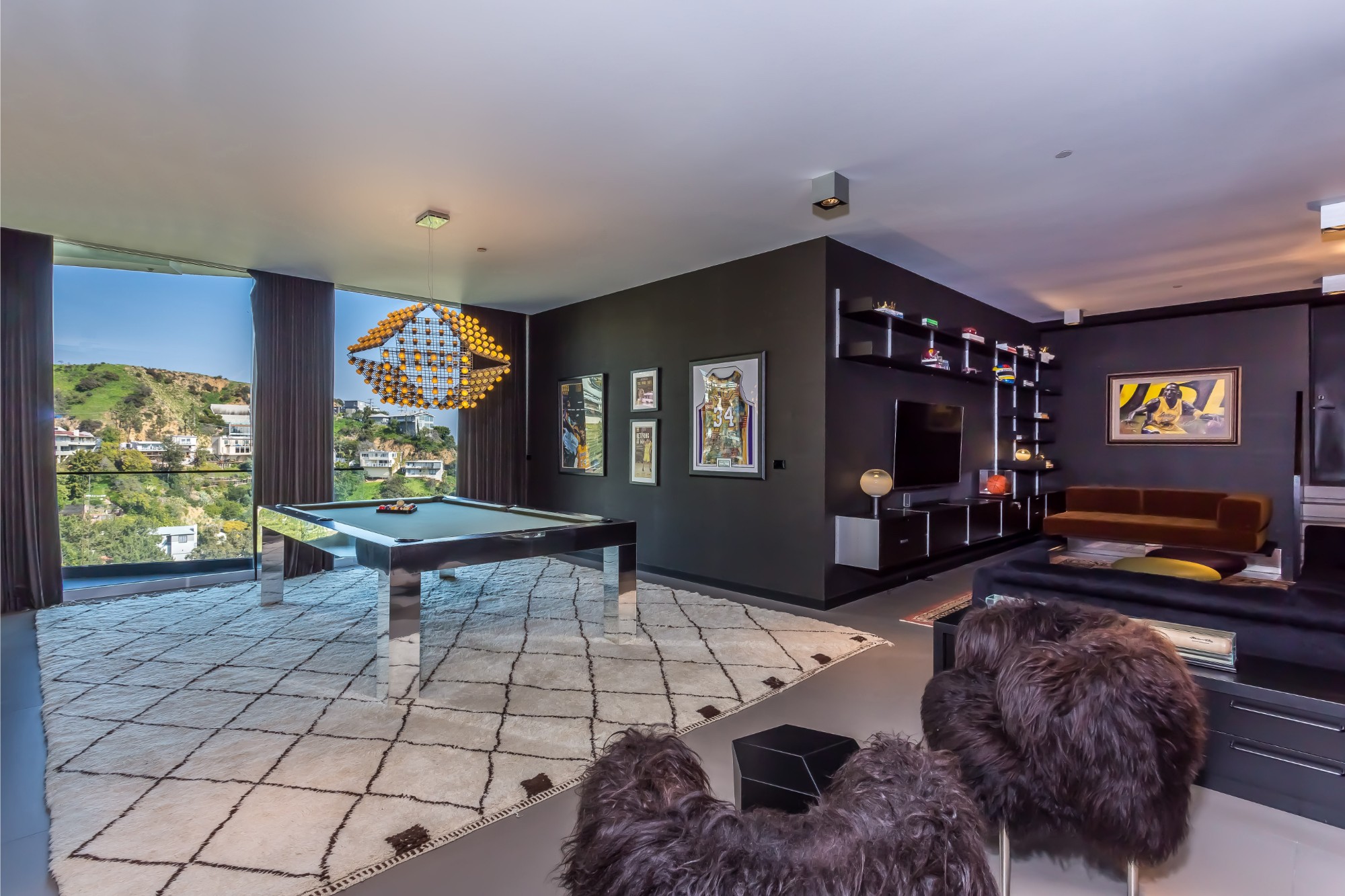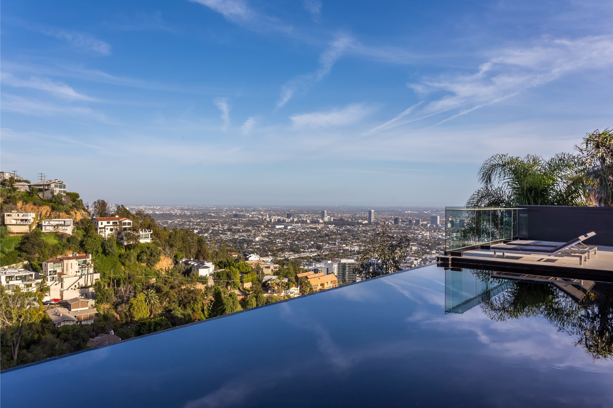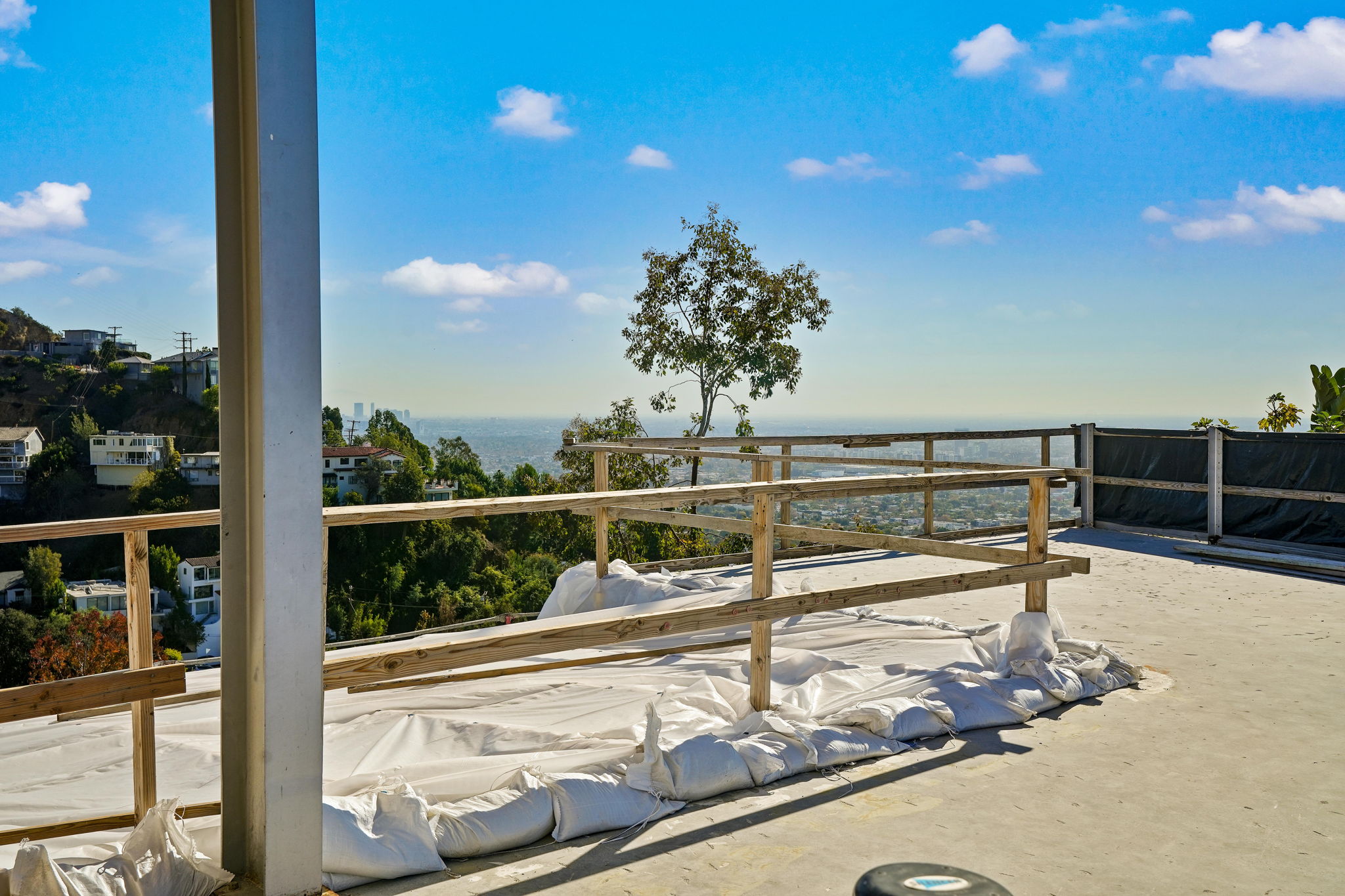 Currently in the middle of a significant remodel, this 12,000+ sq. ft. stunning contemporary estate sits above the Sunset Strip on a quiet cul-de-sac street, boasting panoramic city and ocean views. A perfect opportunity for someone to finish their dream home, or a developer looking for a project with tremendous upside. The main level of the home is completely open and perfect for entertaining, with an Italian kitchen, soaring ceilings and walls of sliding glass doors that lead to massive decks and yard with infinity pool and spa. The owner's suite boasts its own living room and office area, relaxation tub, open bath, floating fireplace, and walk-in closet. Four en-suite guest bedrooms. The previous layout featured a movie theater, entertainer's bar/media area, poker room, billiards room, and gym with separate dry and wet saunas, cold-plunge, therapy bath, massage areas and showers. Two separate 2-car garages. Listing photos include the previously finished home, as well as photos showing its current condition.