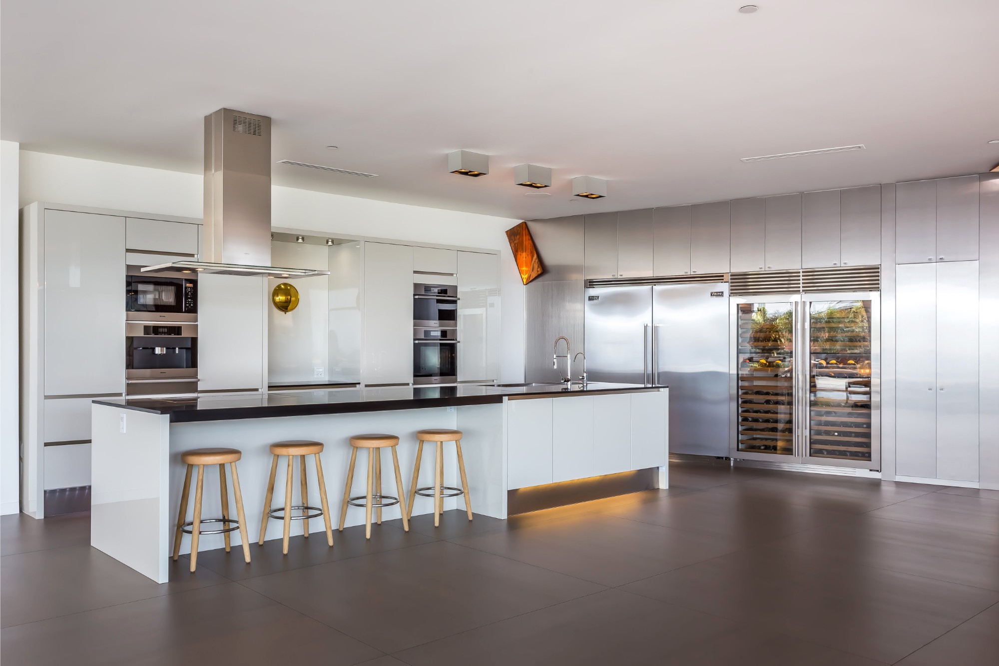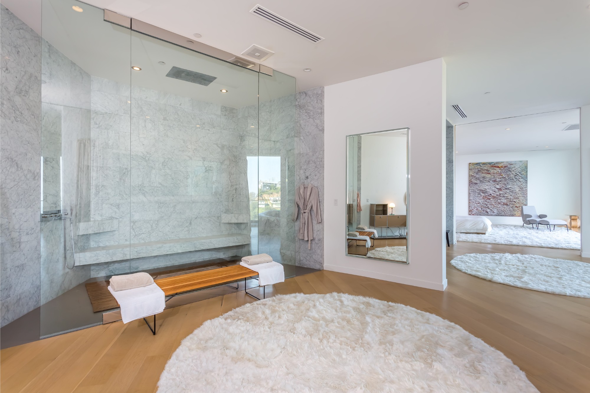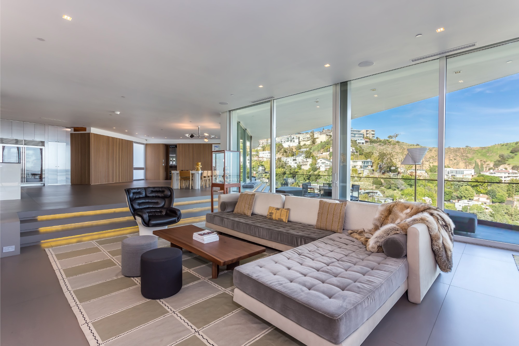 Currently in the middle of a significant remodel, this 12,000+ sq. ft. stunning contemporary estate sits above the Sunset Strip on a quiet cul-de-sac street, boasting panoramic city and ocean views. A perfect opportunity for someone to finish their dream home, or a developer looking for a project with tremendous upside. The main level of the home is completely open and perfect for entertaining, with an Italian kitchen, soaring ceilings and walls of sliding glass doors that lead to massive decks and yard with infinity pool and spa. The owner's suite boasts its own living room and office area, relaxation tub, open bath, floating fireplace, and walk-in closet. Four en-suite guest bedrooms. The previous layout featured a movie theater, entertainer's bar/media area, poker room, billiards room, and gym with separate dry and wet saunas, cold-plunge, therapy bath, massage areas and showers. Two separate 2-car garages. Listing photos include the previously finished home, as well as photos showing its current condition.