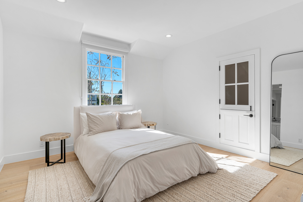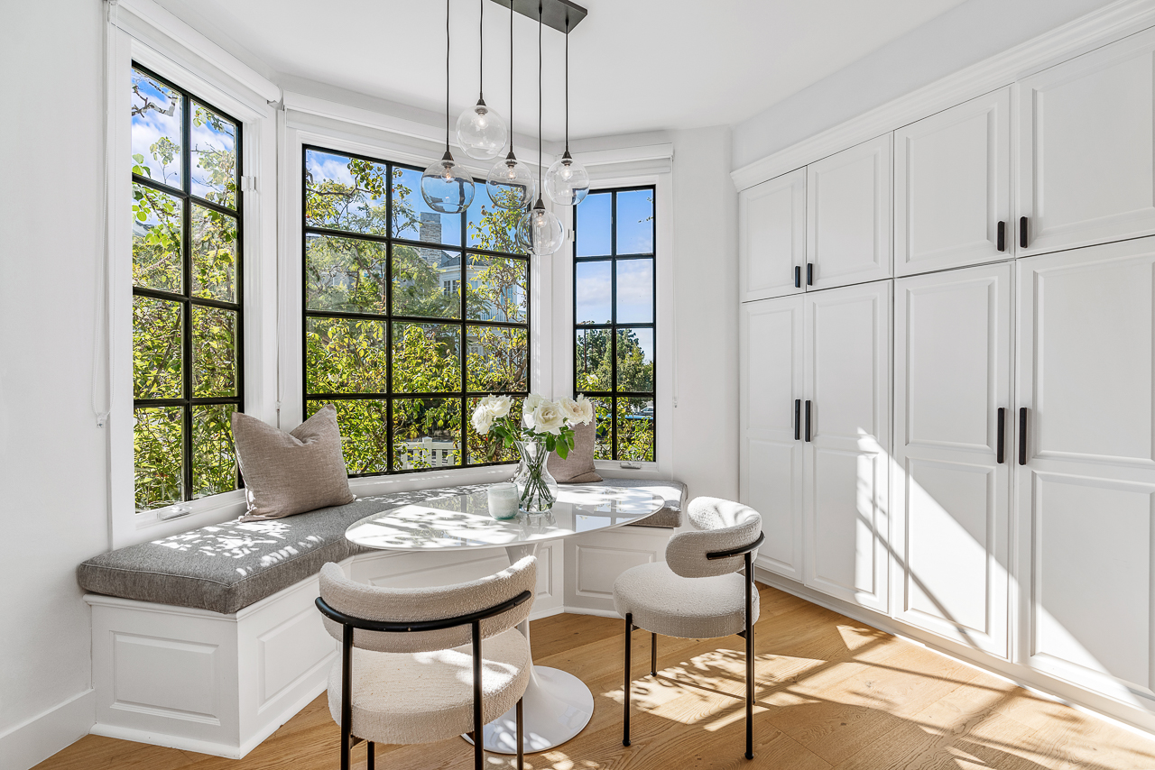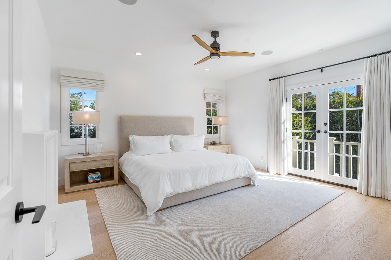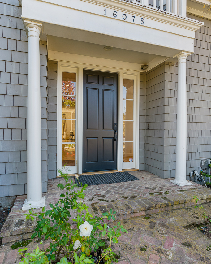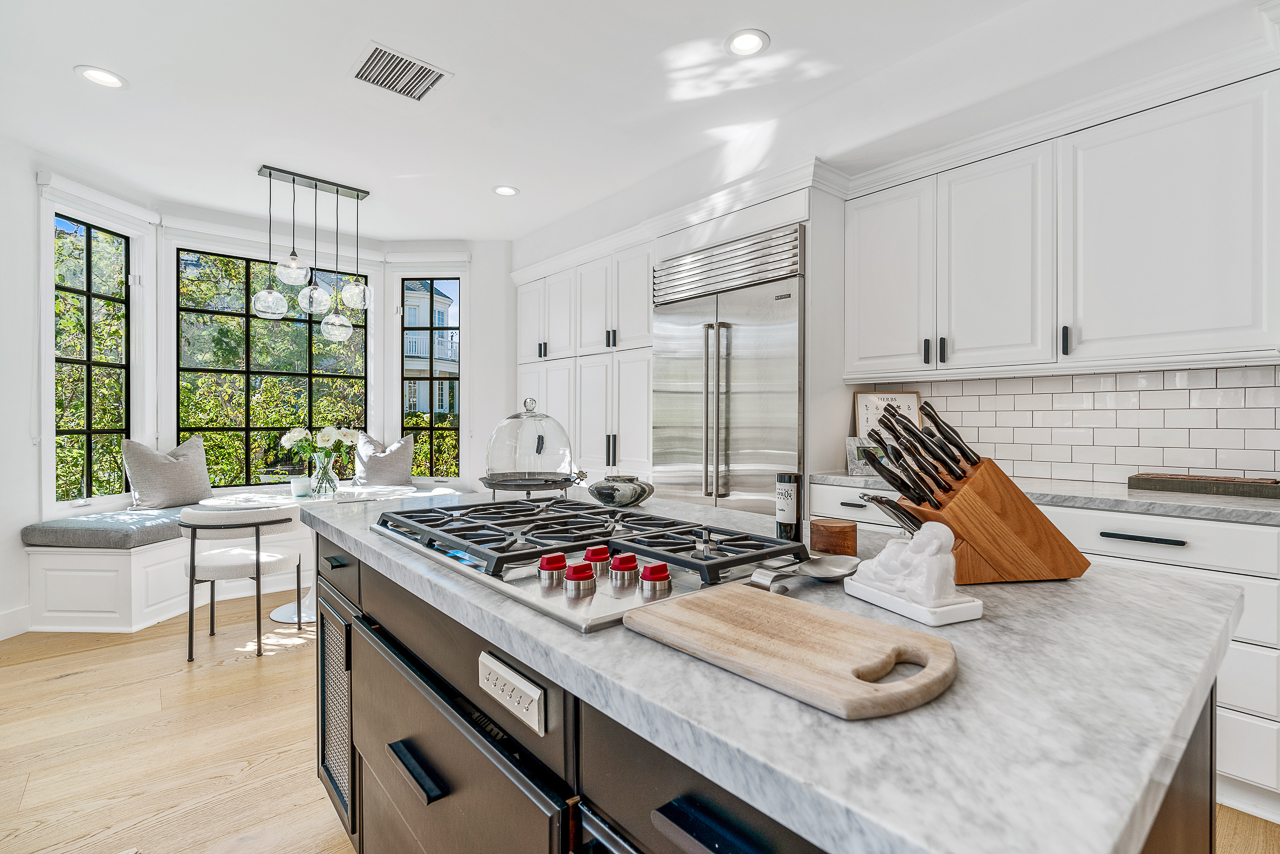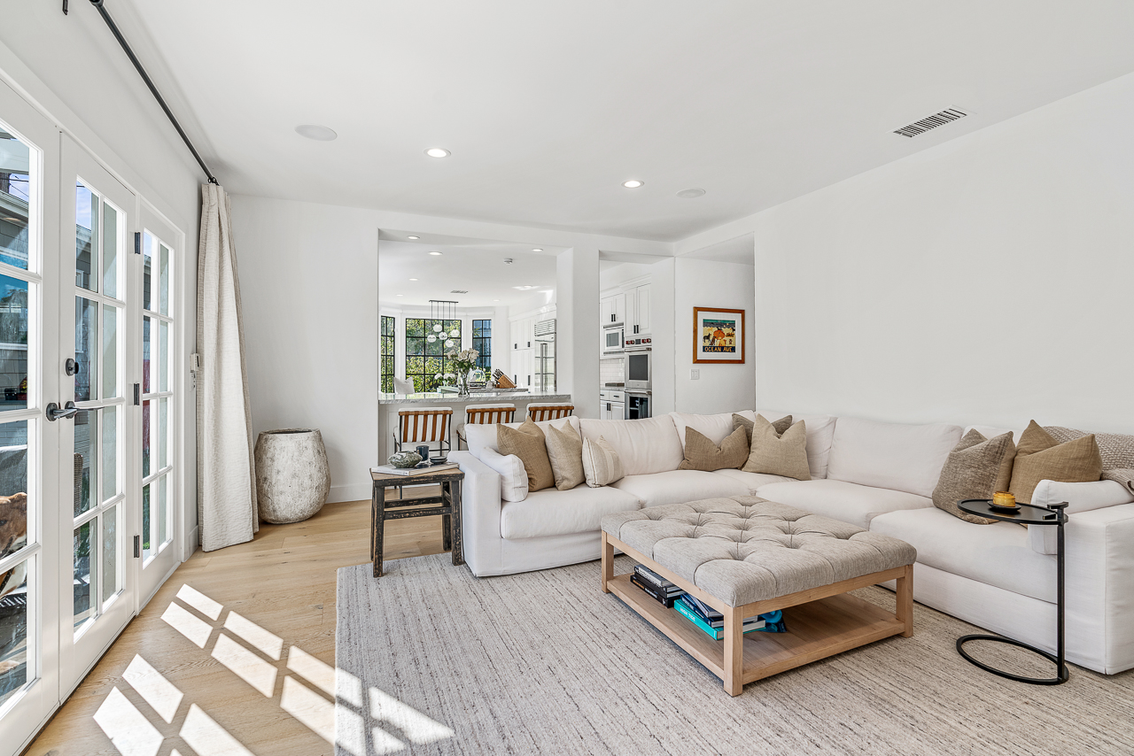Located in the El Medio Bluffs, this recently remodeled home boasts bright and airy finishes throughout. Enter through the gated front door, where you will find the formal living and dining room with custom cabinetry, perfect for entertaining friends and family. The downstairs floor-plan also offers an en suite bedroom and powder bath. The open concept kitchen features open shelving, an oversized center island, a custom built-in banquette, and separate countertop seating. The cozy family room off of the kitchen opens up to the secluded and tranquil backyard, with a newly built pergola, pool/spa with waterfall feature and electric cover, BBQ area with fridge, and an outdoor shower. The cascading staircase leads up to three spacious en suite bedrooms, a laundry room, and a bonus playroom. The primary bedroom includes a fireplace, newly remodeled bathroom with an oversized dual vanity, and a large walk-in custom closet. The detached garage is easily accessible through the backyard. Short distance to the Palisades Village, restaurants, shopping, beaches, parks and schools. Truly a Palisades gem!