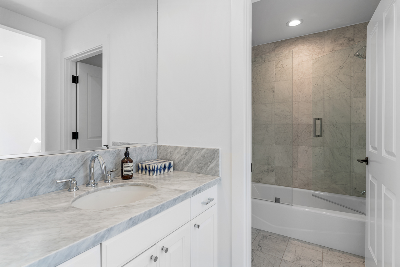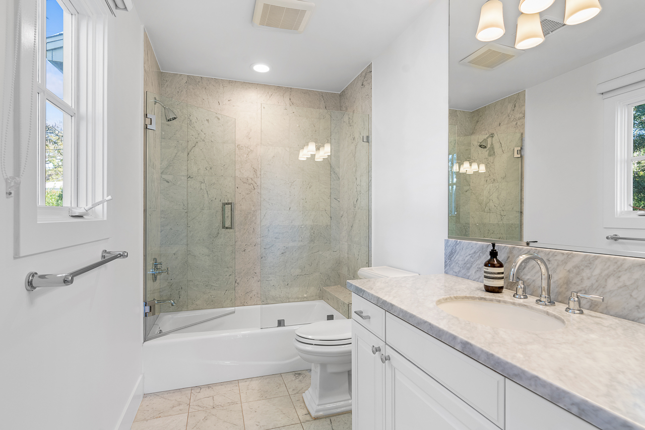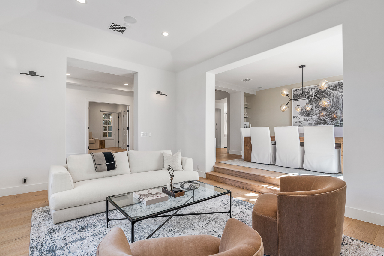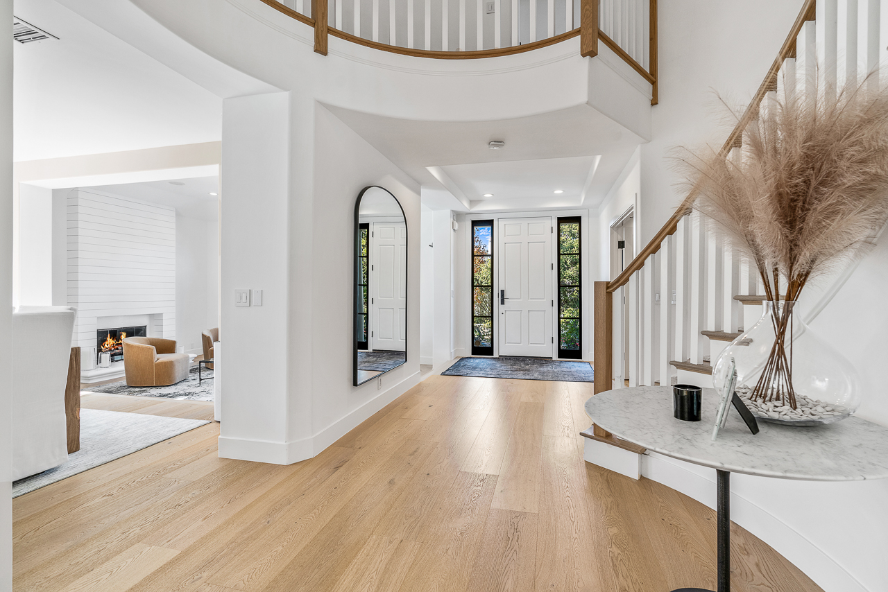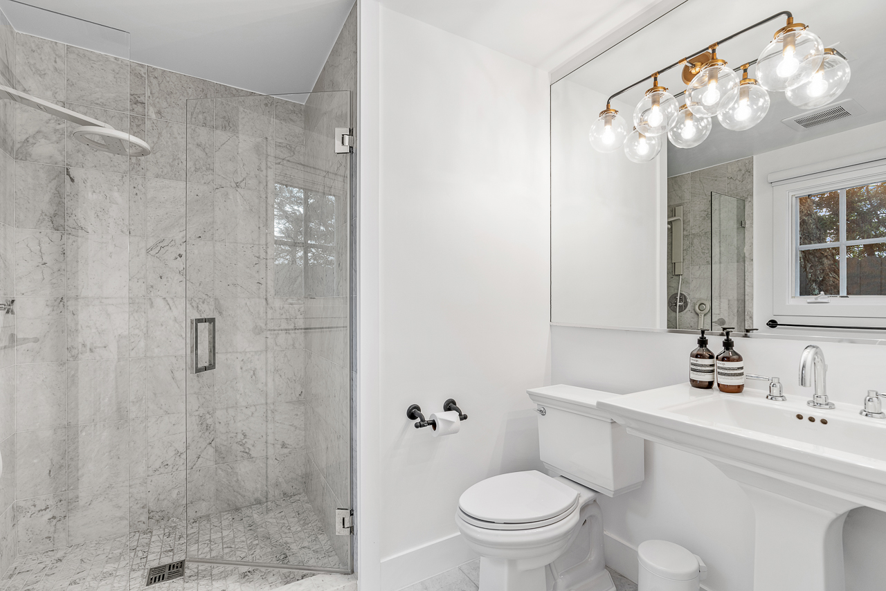 Located in the El Medio Bluffs, this recently remodeled home boasts bright and airy finishes throughout. Enter through the gated front door, where you will find the formal living and dining room with custom cabinetry, perfect for entertaining friends and family. The downstairs floor-plan also offers an en suite bedroom and powder bath. The open concept kitchen features open shelving, an oversized center island, a custom built-in banquette, and separate countertop seating. The cozy family room off of the kitchen opens up to the secluded and tranquil backyard, with a newly built pergola, pool/spa with waterfall feature and electric cover, BBQ area with fridge, and an outdoor shower. The cascading staircase leads up to three spacious en suite bedrooms, a laundry room, and a bonus playroom. The primary bedroom includes a fireplace, newly remodeled bathroom with an oversized dual vanity, and a large walk-in custom closet. The detached garage is easily accessible through the backyard. Short distance to the Palisades Village, restaurants, shopping, beaches, parks and schools. Truly a Palisades gem!