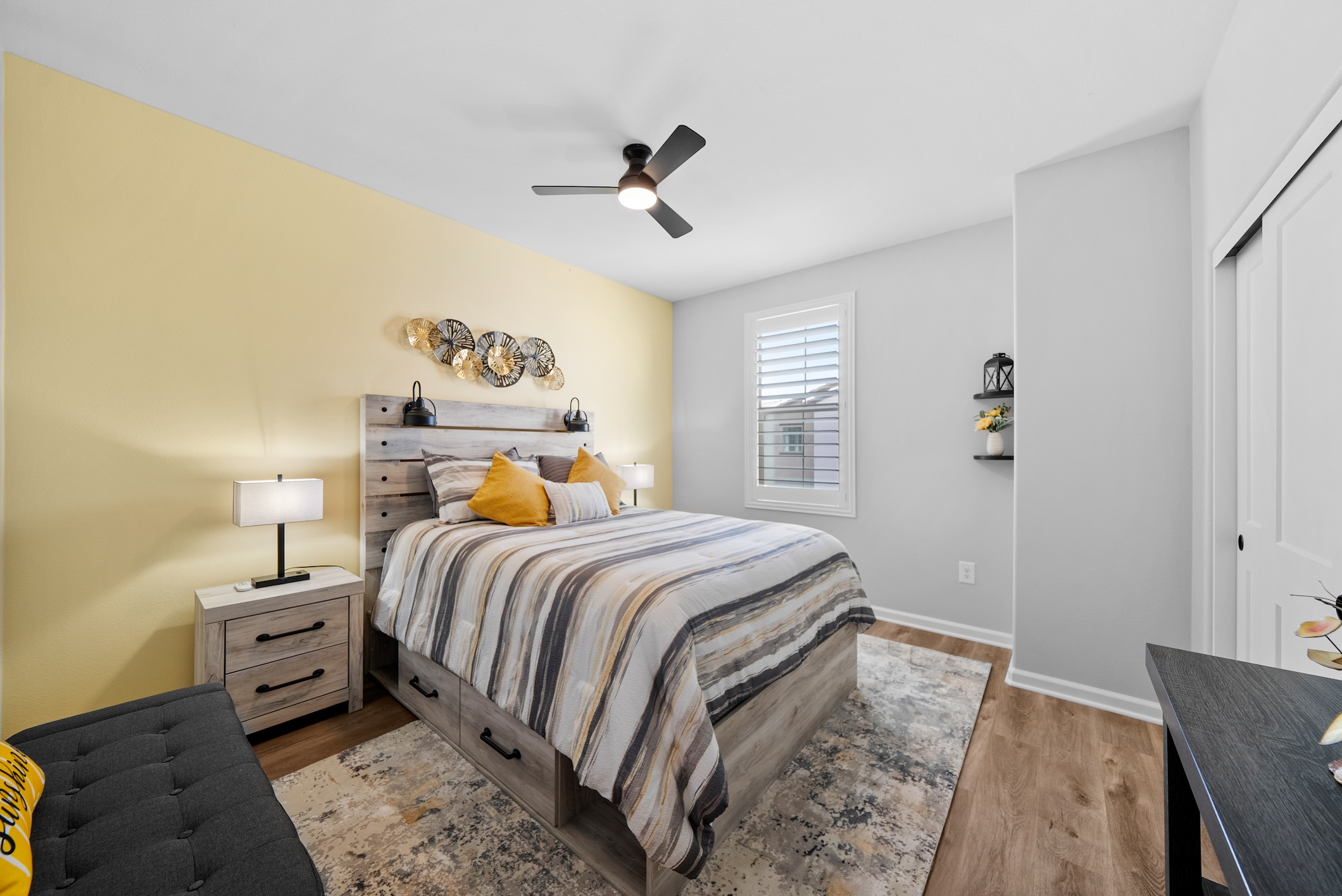 Enjoy effortless indoor-outdoor living with a low-maintenance backyard featuring turf and pavers. The attached two-car garage and additional one-car driveway provide ample parking and storage.