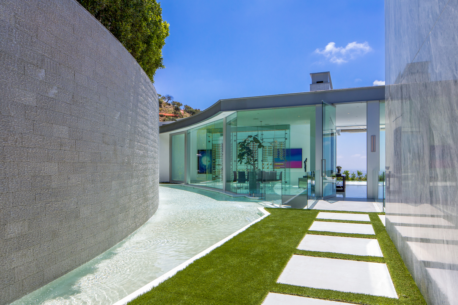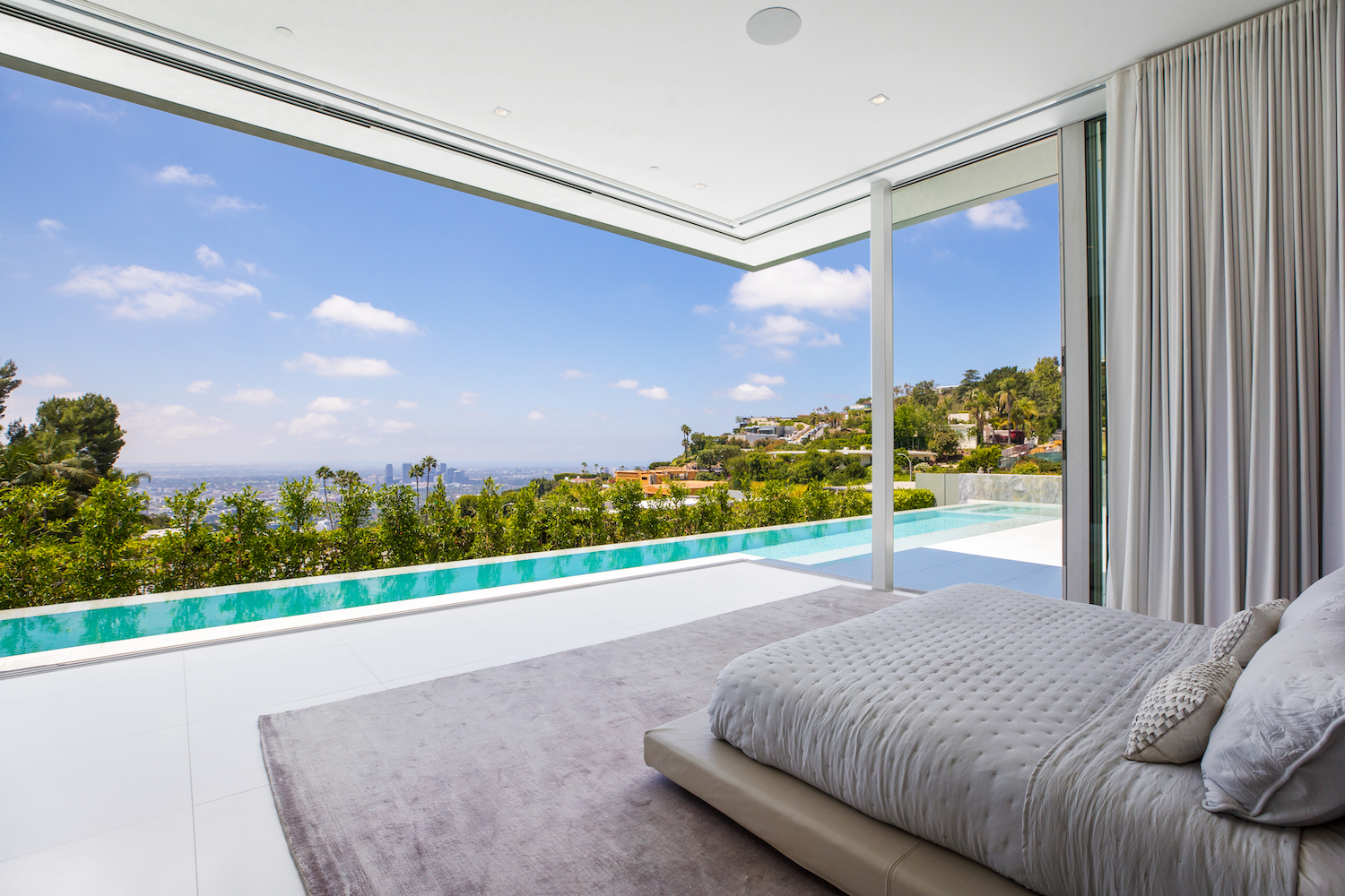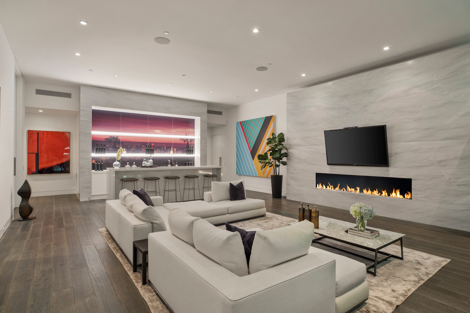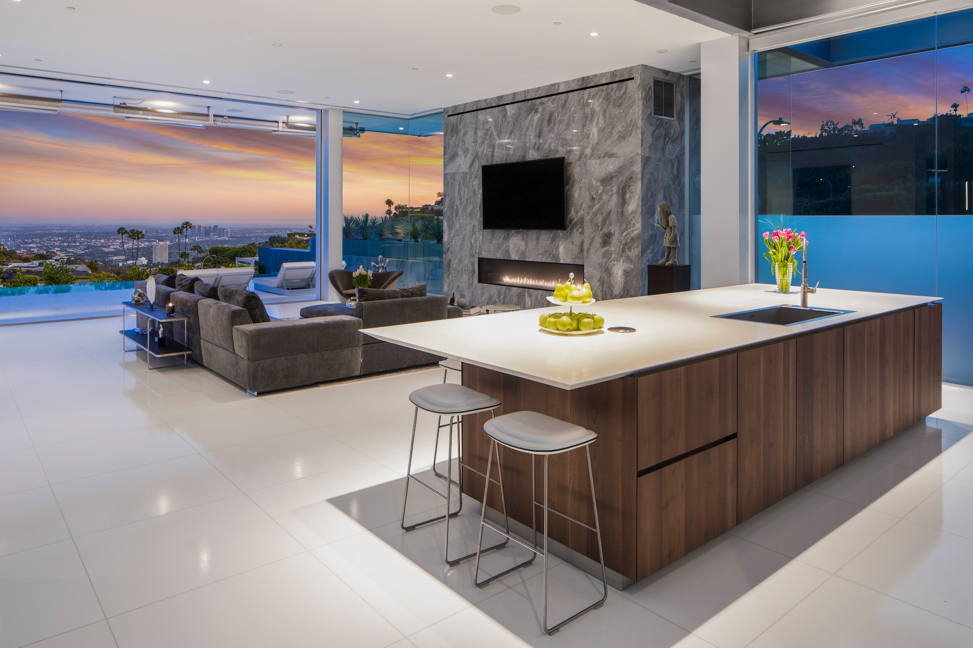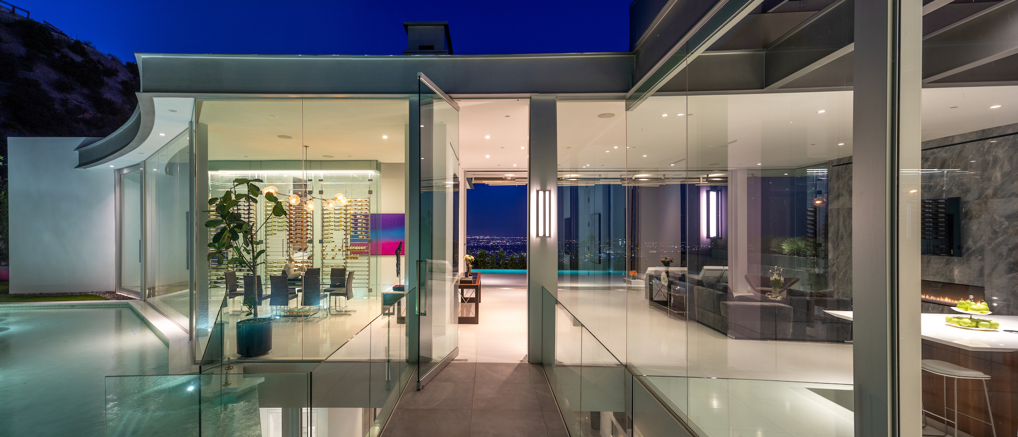 Situated in the Doheny Estates above the famous Sunset Strip, this contemporary masterpiece captures sweeping city to ocean views. A sophisticated, entertainer's retreat, the 5-bedroom home seamlessly integrates indoor and outdoor living while showcasing masterful, modern detail. Floor-to-ceiling glass walls surround the living areas, while gallery-sized walls accommodate an extensive art collection. The great room boasts a floor-to-ceiling marble fireplace and opens to the magnificent view terrace, 119' pool & spa. The exquisite kitchen features a separate butler's pantry and expansive breakfast bar, while the formal dining room overlooks the cascading water feature and temperature-controlled wine storage. Home features include a spectacular poolside master suite, office-library, lower-level living room, bar, fitness studio & plush home theater. An architectural marvel, this ultra-private retreat is situated moments from the Sunset Strip's acclaimed dining, shopping & entertainment.