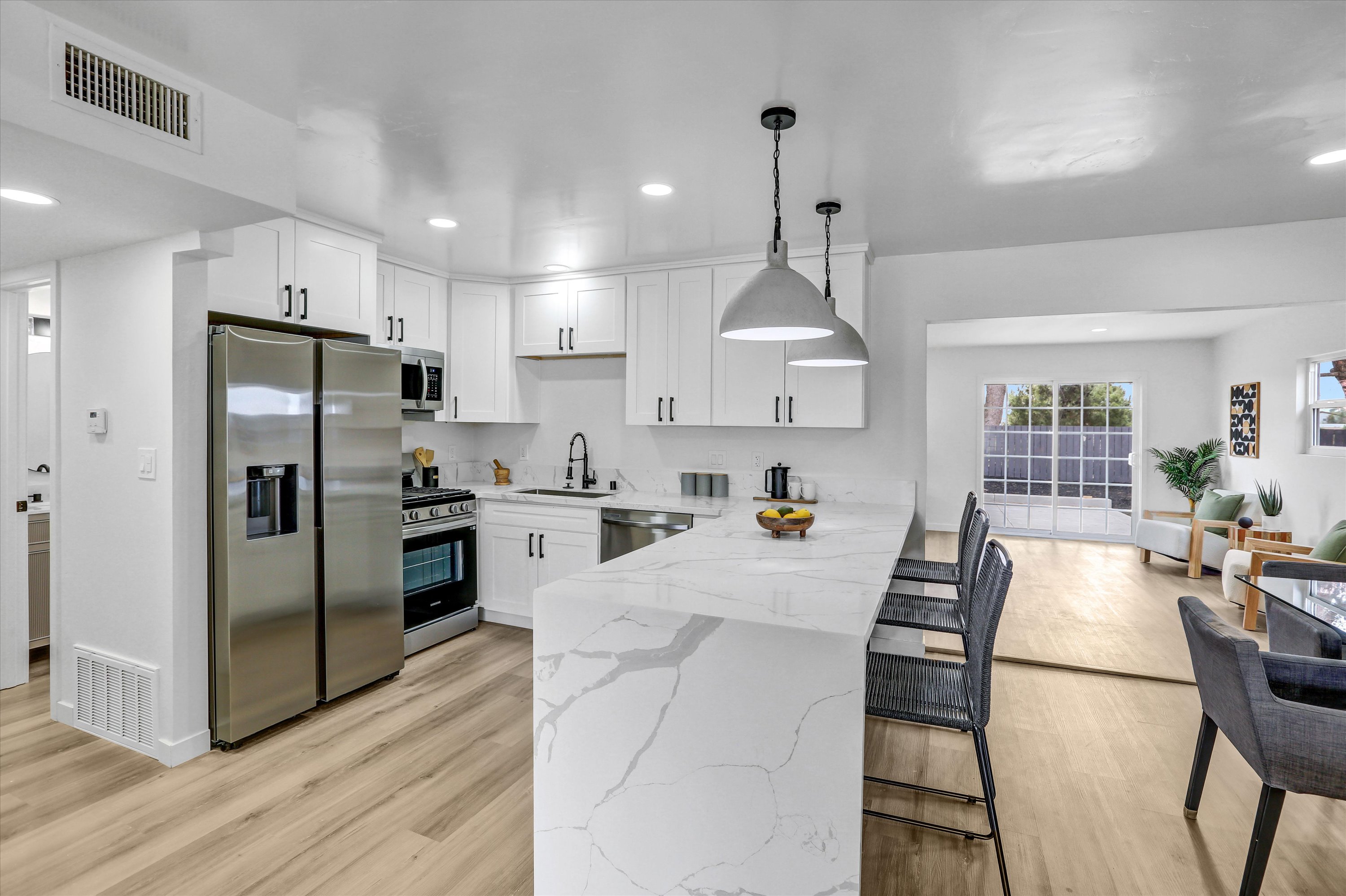 Beautifully updated 5-bedroom, 3-bathroom home located in the heart of Encanto. Offering 1,898 sq ft of well-designed living space, this property features two expansive living rooms, ideal for both relaxing and entertaining. Neutral-tone laminate flooring runs throughout, complemented by sleek, modern fixtures that elevate every room. The kitchen is outfitted with new stainless steel appliances and quartz countertops, which are also featured in the bathrooms. Each bathroom showcases stylish tile designs, adding a touch of character and charm. Step outside to a spacious backyard with scenic views, providing the perfect place to unwind. Don’t miss the opportunity to make this beautiful home yours!