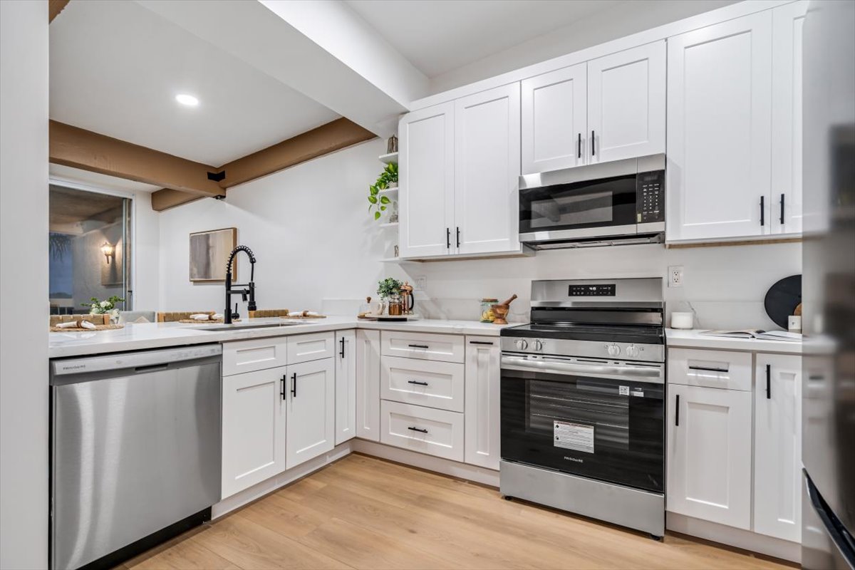 Welcome to 2335 Caringa Way #19, a beautifully remodeled 3-bedroom, 2-bath townhome offering 1,536 sq ft of modern living in Carlsbad, tucked behind La Costa’s Omni Resort. Thoughtfully upgraded throughout, this residence exudes quality craftsmanship and attention to detail. Enjoy new flooring, fresh paint, and elegant lighting that brightens the open-concept layout. The kitchen shines with sleek finishes, ideal for cooks and entertainers. Both bathrooms are new & feature stylish tile and contemporary fixtures. The home also boasts updated plumbing, newly textured walls and ceilings for a clean, modern look, and a new concrete garage floor for added function. Relax in the spacious living area or unwind on your private balcony. Experience a serene, stylish retreat—move-in ready and just minutes to beaches, shopping, and top-rated schools. Don’t miss your chance to call this impressive property home.