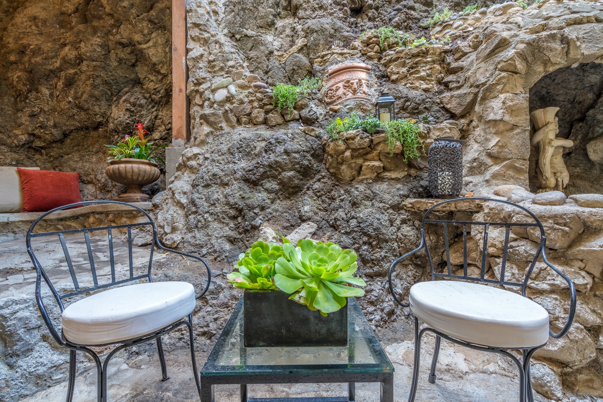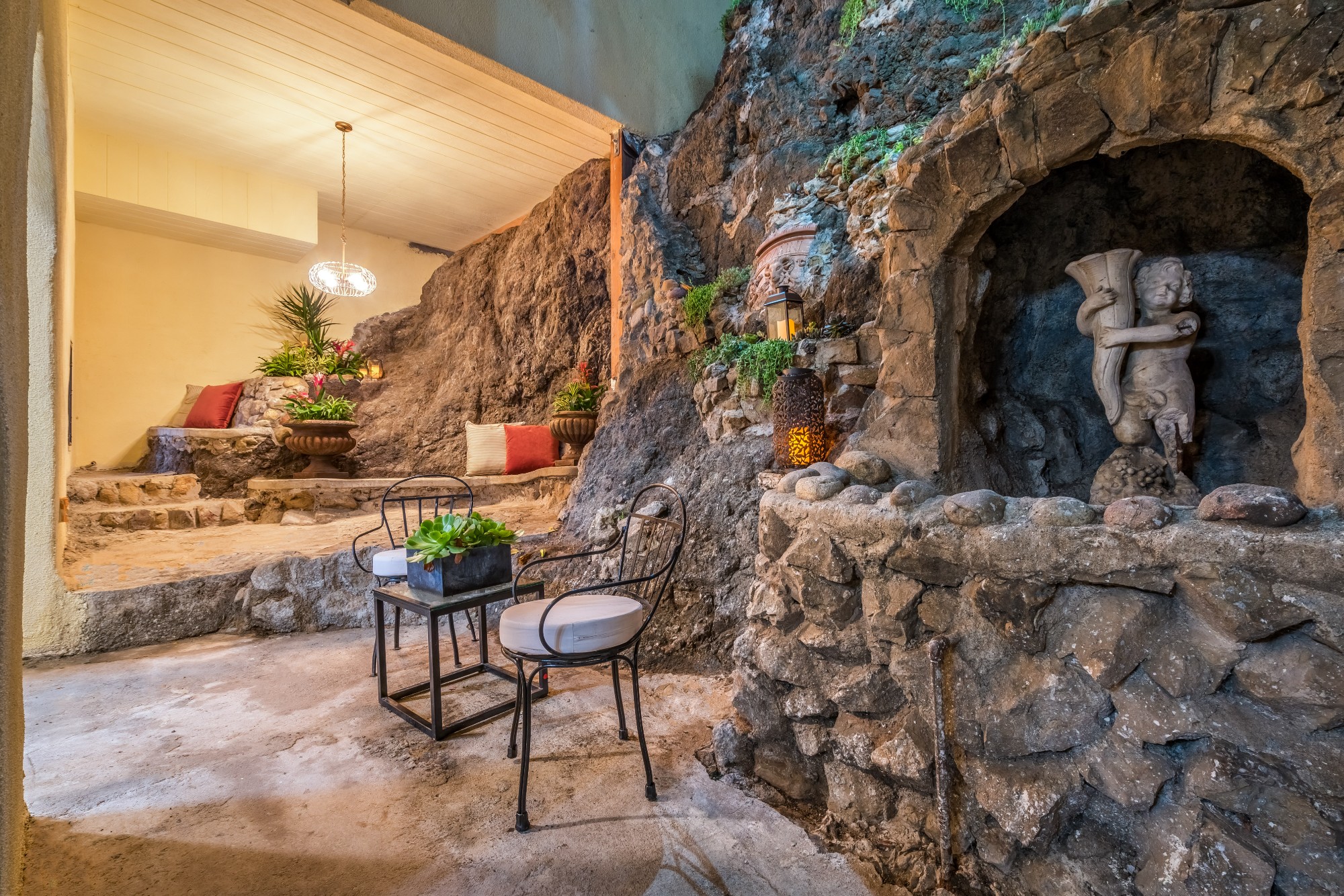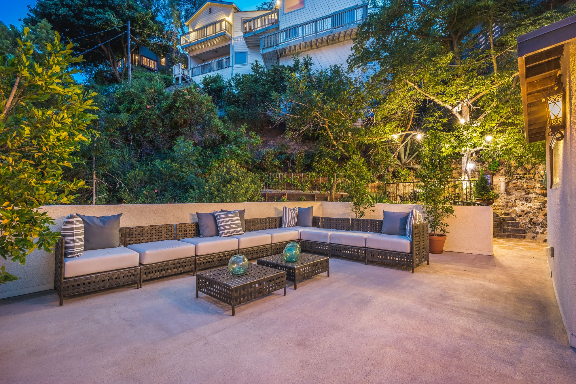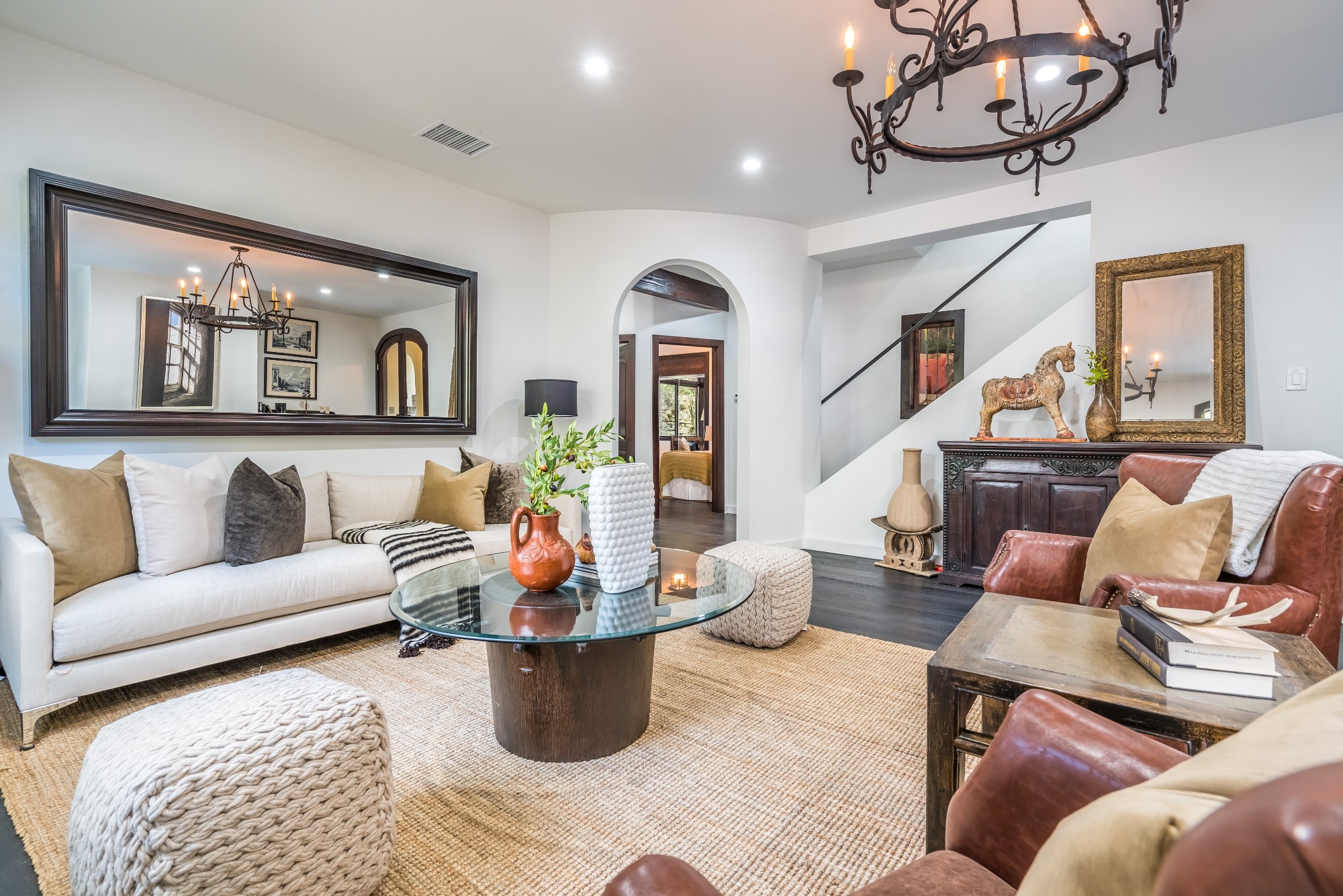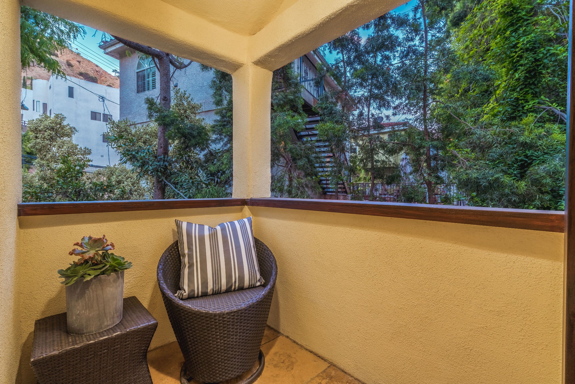 Exquisitely remodeled and restored Spanish Revival located in prime Hollywood Dell. No expense was spared and no detail missed. Enter into an expansive 20' turret entryway which leads to an oversized formal living area, complete with wood-burning fireplace, soaring ceilings, and french doors opening to breezy balconies. Archways with hand-carved wooden details lead to a gourmet chef's kitchen complete with stainless steel appliances, Marble countertops, and backsplash, and eating area with cozy fireplace. Three bedrooms with private balconies, including an owner's suite with walk-in closet and a luxurious, spa-like bathroom with carrera marble flooring, dual sinks, shower, and bathtub. Generously-sized downstairs living/media room with fireplace, perfect for entertaining. Tranquil rooftop terrace surrounded by mature greenery and immaculate landscaping. Stunning backyard with rock-wall vertical garden, fountain, and private grotto nestled into the hillside. 2-car garage with additional parking.