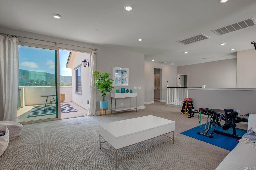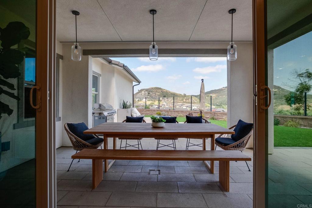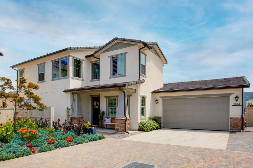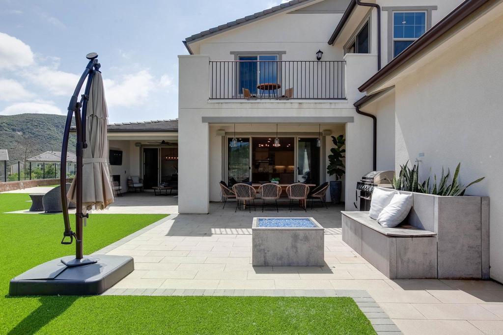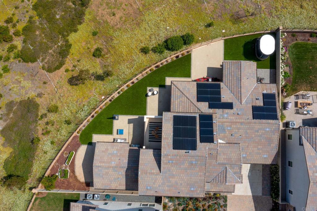 IMPRESSIVE PANORAMIC VIEWS from this luxury home in one of Harmony Grove Village's desired Pods! The Pod is comprised of a handful of homes laid out in a circular court - no through-traffic. Perched above the community with hill and mountain views from most rooms, this light & bright 4 bedroom+office+loft, 3.5 bath home was built in 2020 on THE BEST PREMIUM lot. You're welcomed into the home with high ceilings and an open layout where the great room, kitchen with beautiful quartz island, and dining area connect to the outdoors by TWO California patios with sound systems and a fireplace. Wrapped around the entire landscaped backyard is glass fencing that features the picturesque Elfin Forest with its unobstructed hills, greenery, and valley views. The impressive panoramic views continue onto the second floor with mountain views from the LARGE LOFT and balcony where you can bask in the sun. * * MANY UPGRADES * * INSIDE: Custom window coverings including plantation shutters and electronically controlled shades in primary suite, two custom-made sliding wood barn doors, Designer chandeliers and light fixtures, premium carpets on stairs and second floor, internet jacks throughout the home, SIMPLISAFE security system * * OUTSIDE: Designer landscaping with fruit trees, raised garden beds, and irrigation; glass rock fire pit with utility hookups for a future outdoor kitchen; Whole-home water filtration and softener; and OWNED TESLA SOLAR PANELS, CAR CHARGER & POWER WALL BATTERY. You won't realize if there's an outage in the neighborhood with this much power in store. * * Harmony Grove Village is a relaxed but luxurious community, providing pool, playgrounds, clubhouse, and so many events and amenities within a few minutes walking distance from the property. Come see this GORGEOUS, well-maintained home!