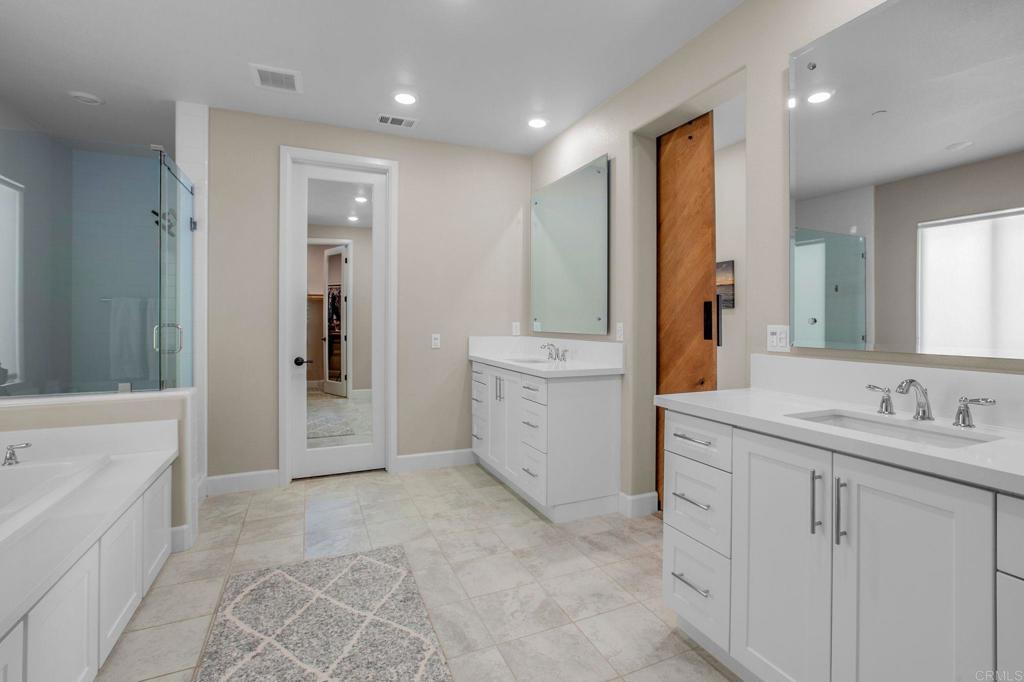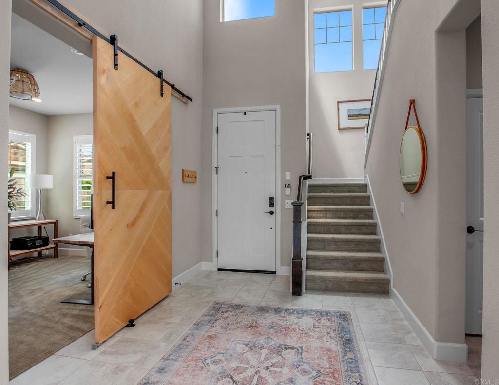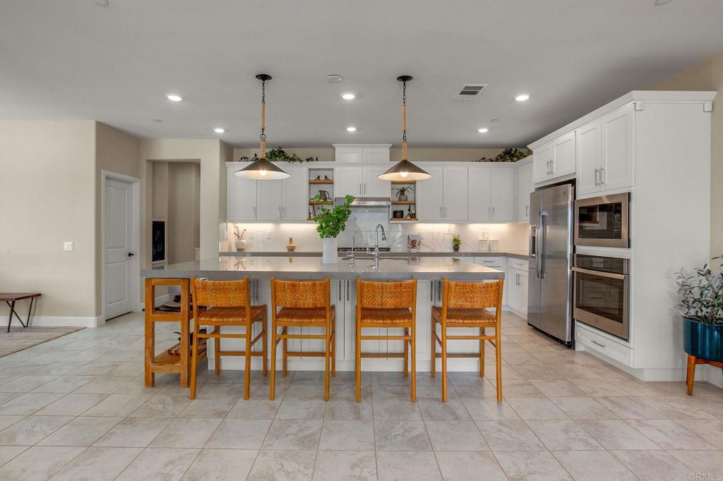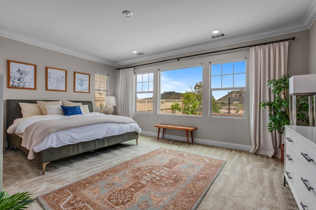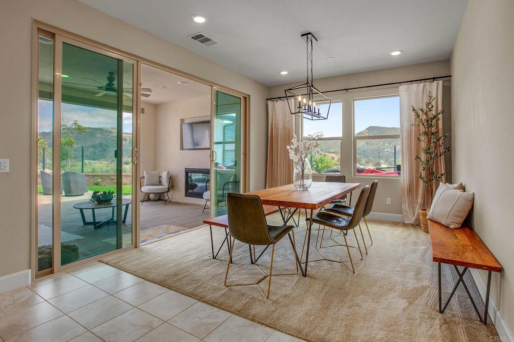 IMPRESSIVE PANORAMIC VIEWS from this luxury home in one of Harmony Grove Village's desired Pods! The Pod is comprised of a handful of homes laid out in a circular court - no through-traffic. Perched above the community with hill and mountain views from most rooms, this light & bright 4 bedroom+office+loft, 3.5 bath home was built in 2020 on THE BEST PREMIUM lot. You're welcomed into the home with high ceilings and an open layout where the great room, kitchen with beautiful quartz island, and dining area connect to the outdoors by TWO California patios with sound systems and a fireplace. Wrapped around the entire landscaped backyard is glass fencing that features the picturesque Elfin Forest with its unobstructed hills, greenery, and valley views. The impressive panoramic views continue onto the second floor with mountain views from the LARGE LOFT and balcony where you can bask in the sun. * * MANY UPGRADES * * INSIDE: Custom window coverings including plantation shutters and electronically controlled shades in primary suite, two custom-made sliding wood barn doors, Designer chandeliers and light fixtures, premium carpets on stairs and second floor, internet jacks throughout the home, SIMPLISAFE security system * * OUTSIDE: Designer landscaping with fruit trees, raised garden beds, and irrigation; glass rock fire pit with utility hookups for a future outdoor kitchen; Whole-home water filtration and softener; and OWNED TESLA SOLAR PANELS, CAR CHARGER & POWER WALL BATTERY. You won't realize if there's an outage in the neighborhood with this much power in store. * * Harmony Grove Village is a relaxed but luxurious community, providing pool, playgrounds, clubhouse, and so many events and amenities within a few minutes walking distance from the property. Come see this GORGEOUS, well-maintained home!