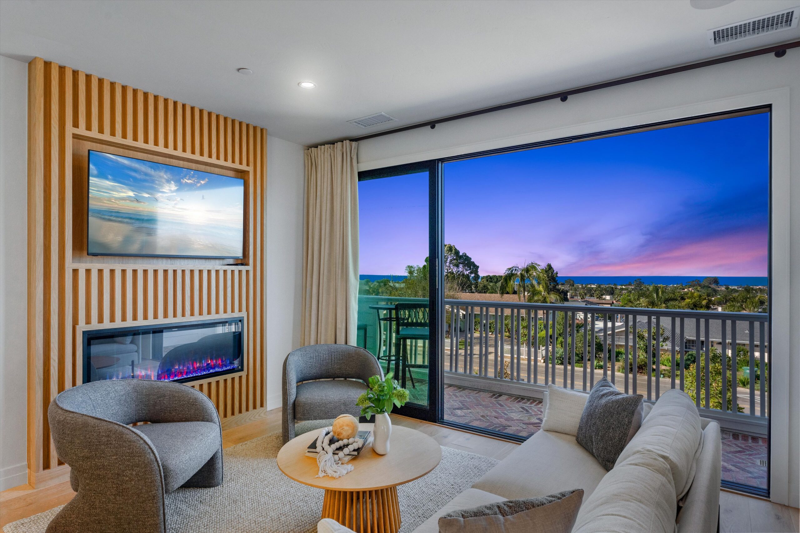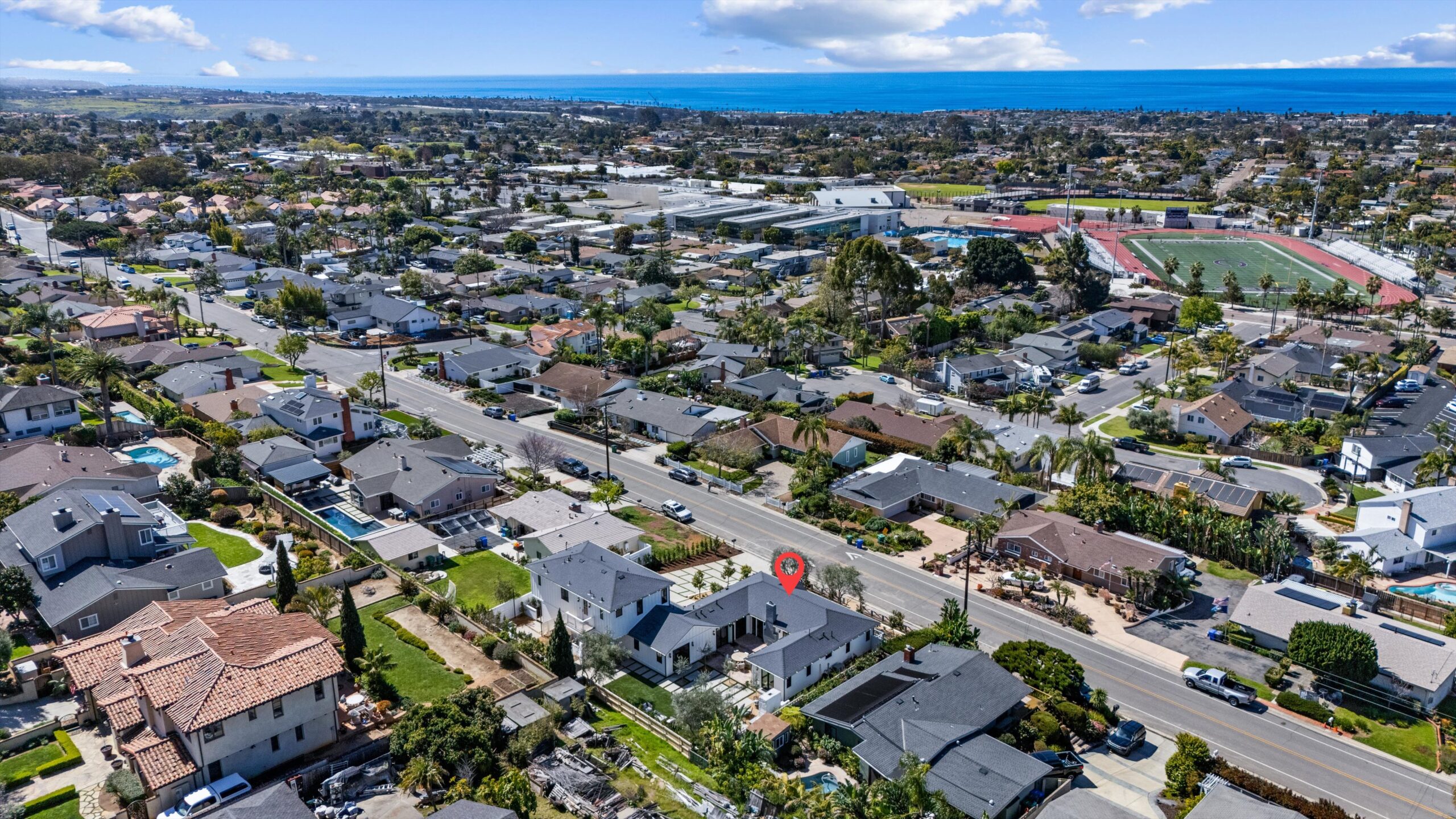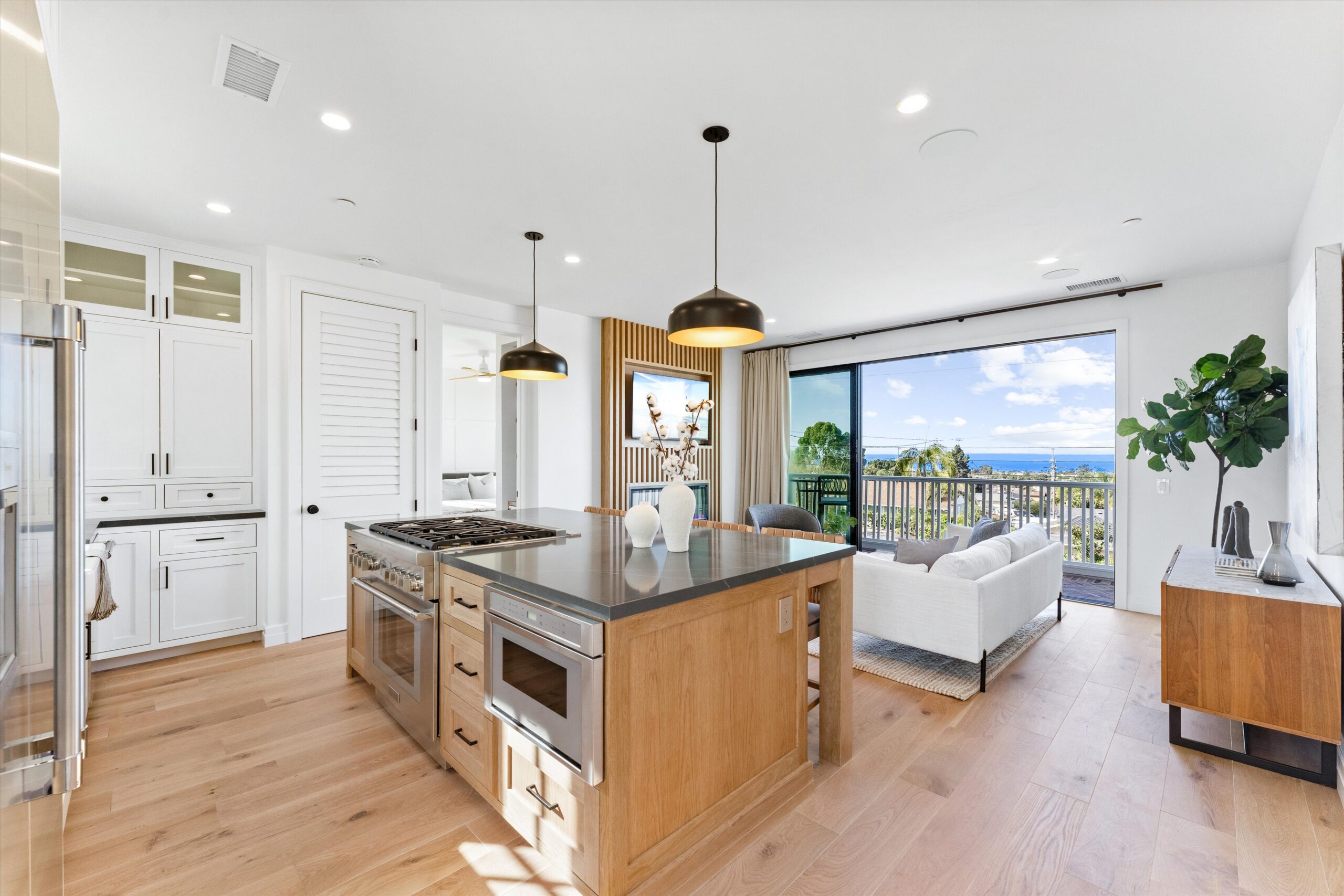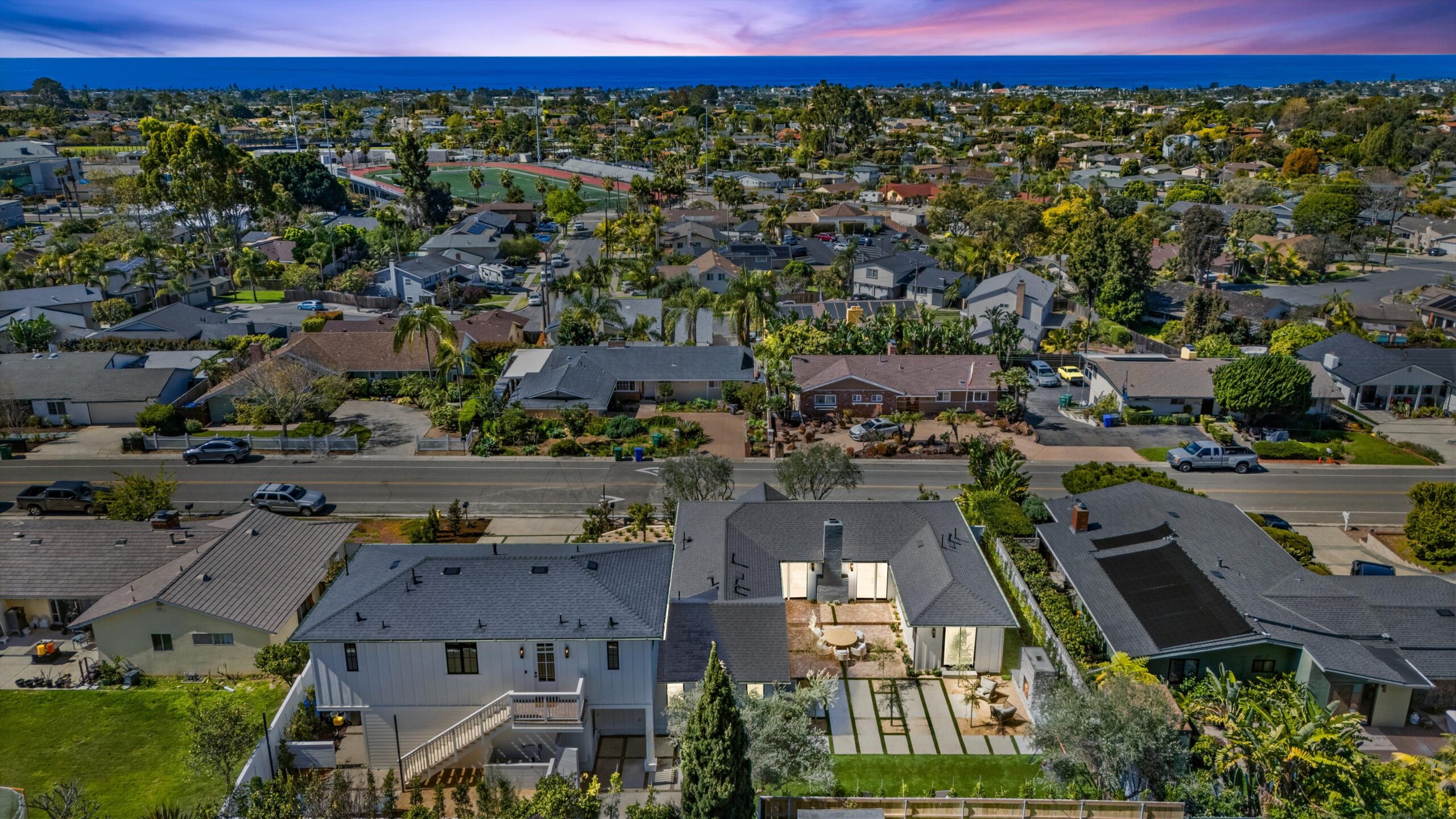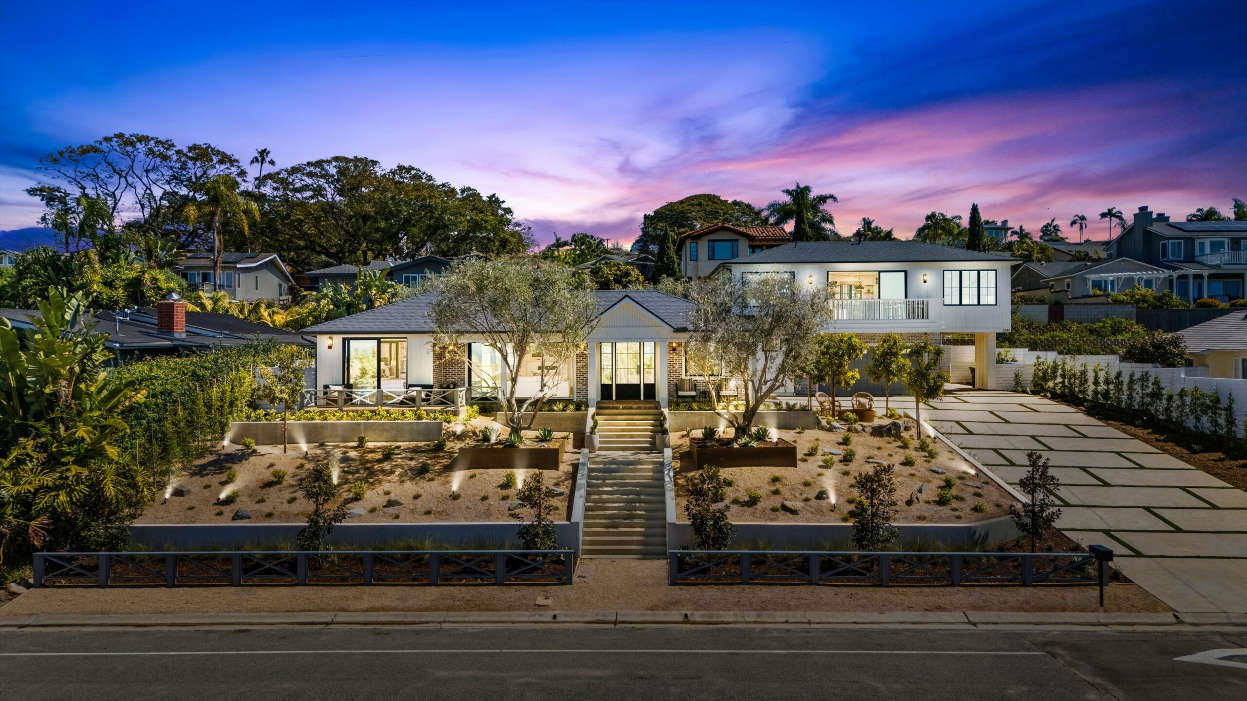 Welcome to 3342 & 3344 Donna Drive, a stunning embodiment of coastal contemporary living nestled in the heart of old Carlsbad. This new construction masterpiece, crafted by visionary Roland Shany, boasts not one, but two impeccably designed homes on one lot with sweeping panoramic ocean views on an impressive 11,800 Sq Ft lot! The main single-level residence (3342), spanning 3 bedrooms and 2 bathrooms, exudes charm and elegance with its custom white oak vaulted ceiling beams throughout, engineered hardwood floors, and its original wood-burning fireplace. This down-to-stud new construction includes all new roof, plumbing, electrical, and fixtures. Revel in the sweeping sit-down panoramic ocean views that grace both homes, creating a picturesque backdrop for everyday living. The second home, a 2-bedroom, 2-bathroom gem (3344), offers versatility as an investment property or guest home, complete with all-new high-end appliances, built-in closet cabinetry, and a modern aesthetic that seamlessly blends with its coastal surroundings. No detail has been spared in these meticulously crafted homes, from the high-quality Pella windows and All-Weather sliding stacking doors to the built-in surround sound, high-end custom cabinetry, and built-in closets throughout. Gorgeous open floorplan with tons of natural light and vaulted ceilings. Offering a two car garage with an additional carport for ample parking spaces. Indulge in culinary delights with the outdoor BBQ island, unwind by the fire pit, or simply bask in the tranquility of the designer landscaping curated with mature olive trees. This is a smart home from top to bottom with electric car charging outlets. Capture every stunning sunset from the comfort of your home. Conveniently located in the heart of Old Carlsbad with the largest elevated panoramic ocean view lots on Donna Drive, just a 7-minute drive to Carlsbad Village. Embrace the coastal lifestyle and make 3342 & 3344 Donna Drive your new sanctuary by the sea.