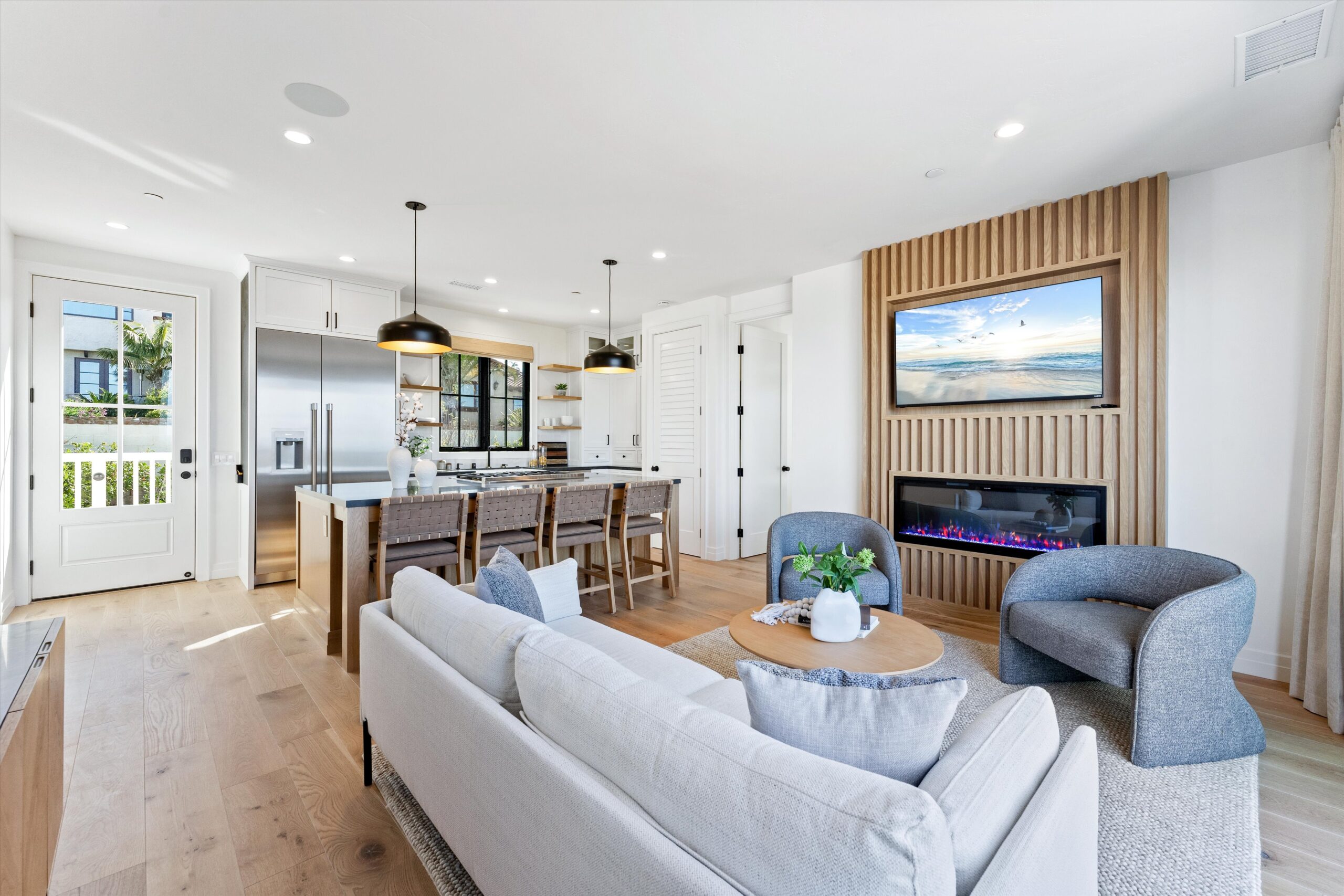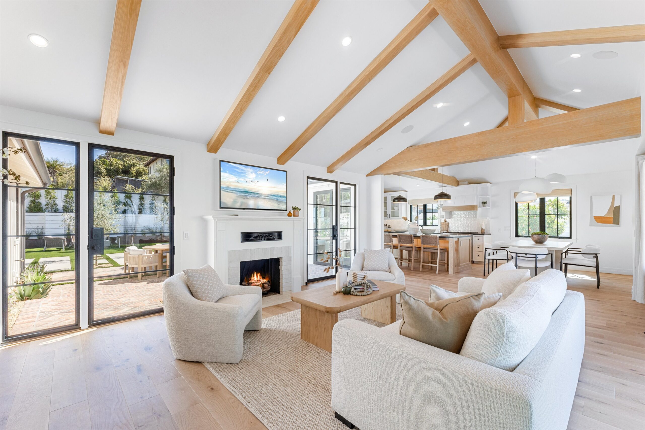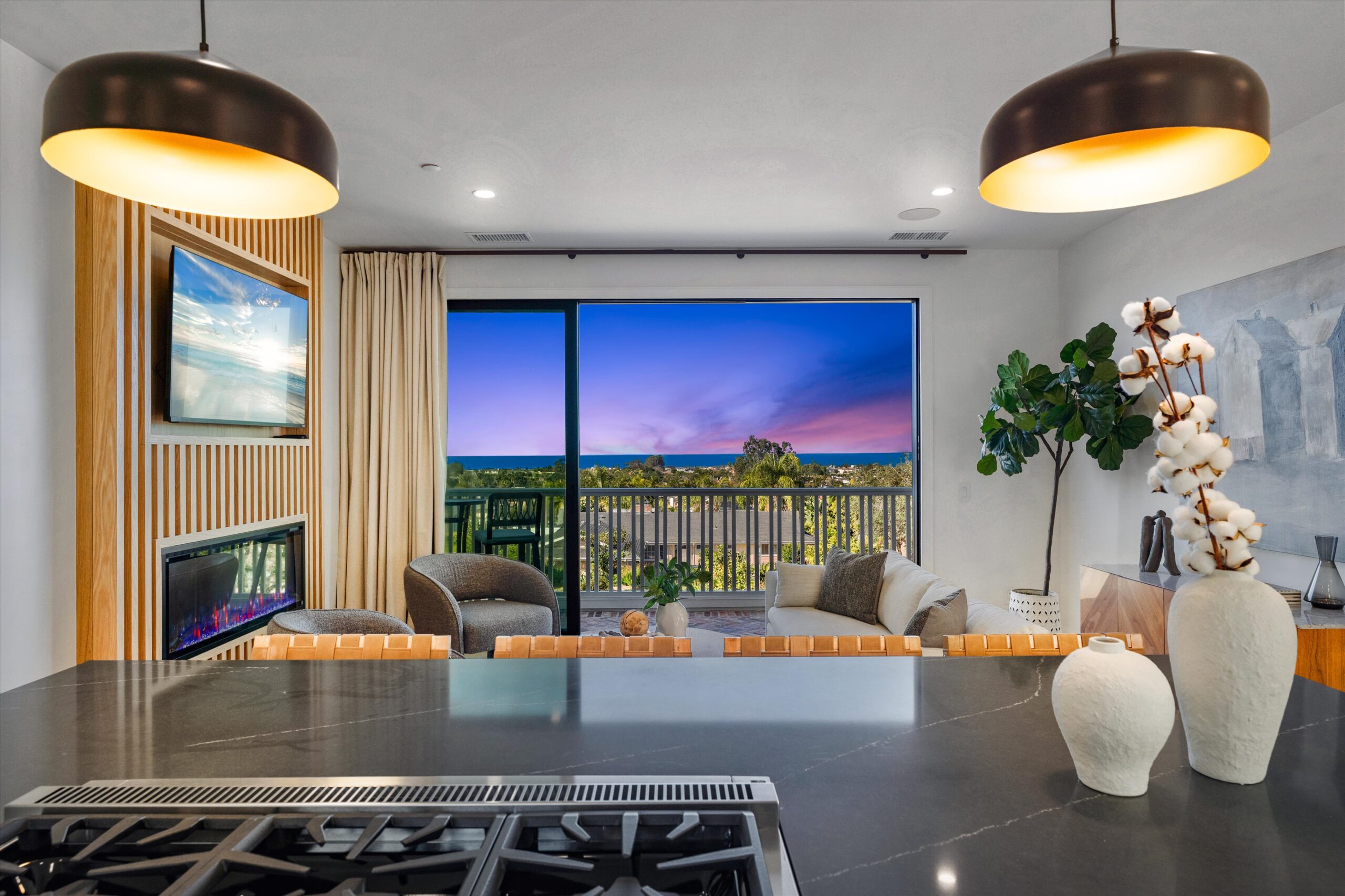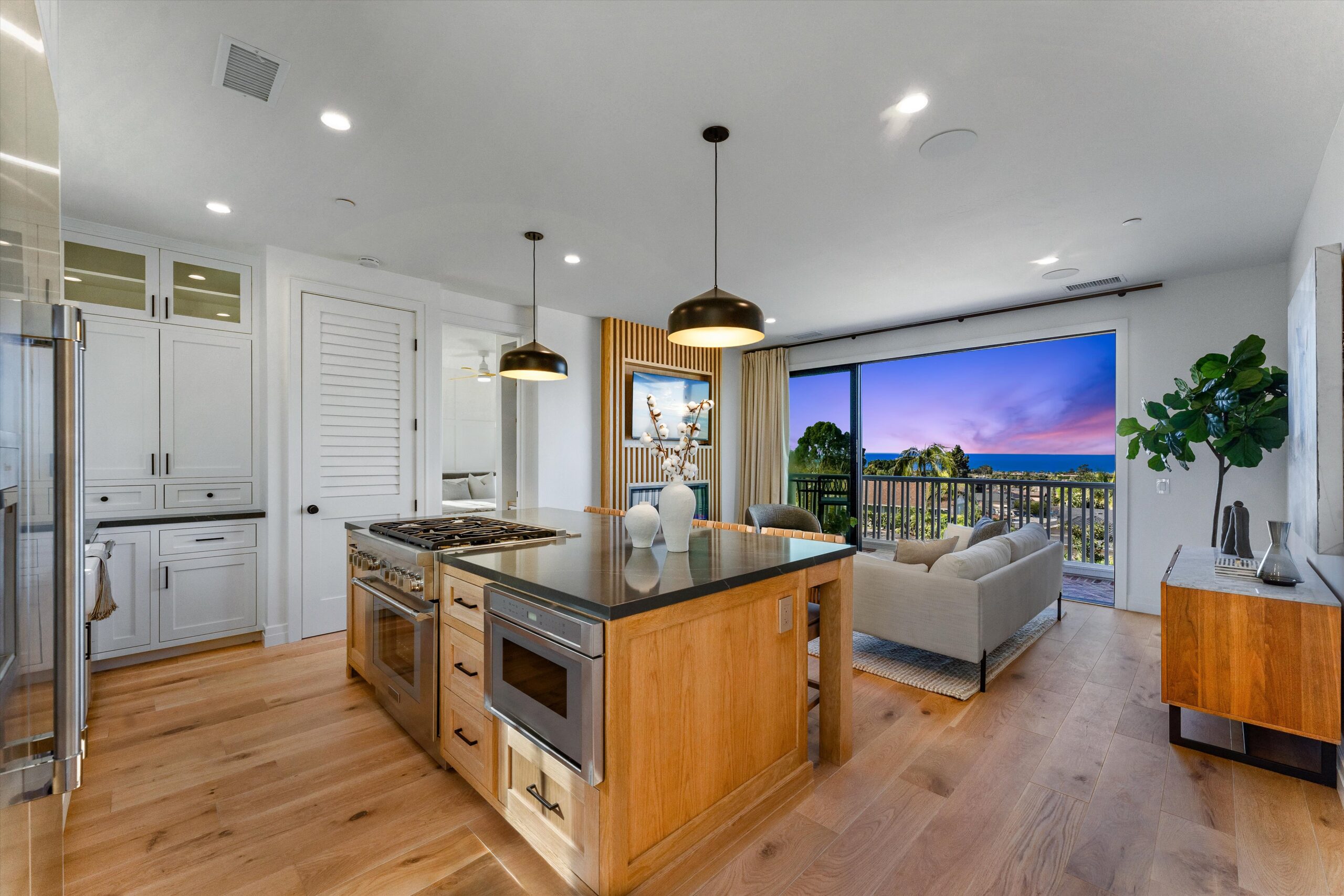 Welcome to 3342 & 3344 Donna Drive, a stunning embodiment of coastal contemporary living nestled in the heart of old Carlsbad. This new construction masterpiece, crafted by visionary Roland Shany, boasts not one, but two impeccably designed homes on one lot with sweeping panoramic ocean views on an impressive 11,800 Sq Ft lot! The main single-level residence (3342), spanning 3 bedrooms and 2 bathrooms, exudes charm and elegance with its custom white oak vaulted ceiling beams throughout, engineered hardwood floors, and its original wood-burning fireplace. This down-to-stud new construction includes all new roof, plumbing, electrical, and fixtures. Revel in the sweeping sit-down panoramic ocean views that grace both homes, creating a picturesque backdrop for everyday living. The second home, a 2-bedroom, 2-bathroom gem (3344), offers versatility as an investment property or guest home, complete with all-new high-end appliances, built-in closet cabinetry, and a modern aesthetic that seamlessly blends with its coastal surroundings. No detail has been spared in these meticulously crafted homes, from the high-quality Pella windows and All-Weather sliding stacking doors to the built-in surround sound, high-end custom cabinetry, and built-in closets throughout. Gorgeous open floorplan with tons of natural light and vaulted ceilings. Offering a two car garage with an additional carport for ample parking spaces. Indulge in culinary delights with the outdoor BBQ island, unwind by the fire pit, or simply bask in the tranquility of the designer landscaping curated with mature olive trees. This is a smart home from top to bottom with electric car charging outlets. Capture every stunning sunset from the comfort of your home. Conveniently located in the heart of Old Carlsbad with the largest elevated panoramic ocean view lots on Donna Drive, just a 7-minute drive to Carlsbad Village. Embrace the coastal lifestyle and make 3342 & 3344 Donna Drive your new sanctuary by the sea.
