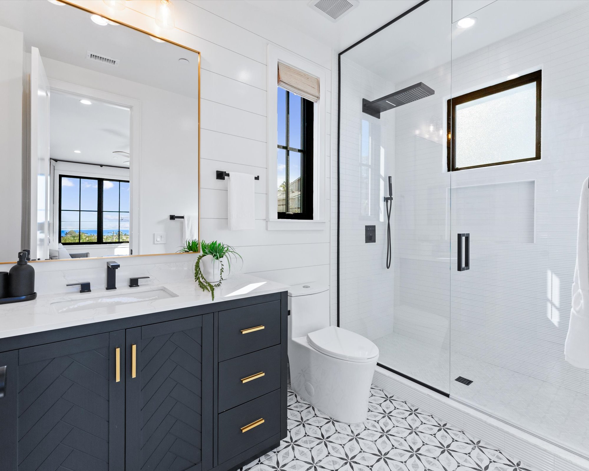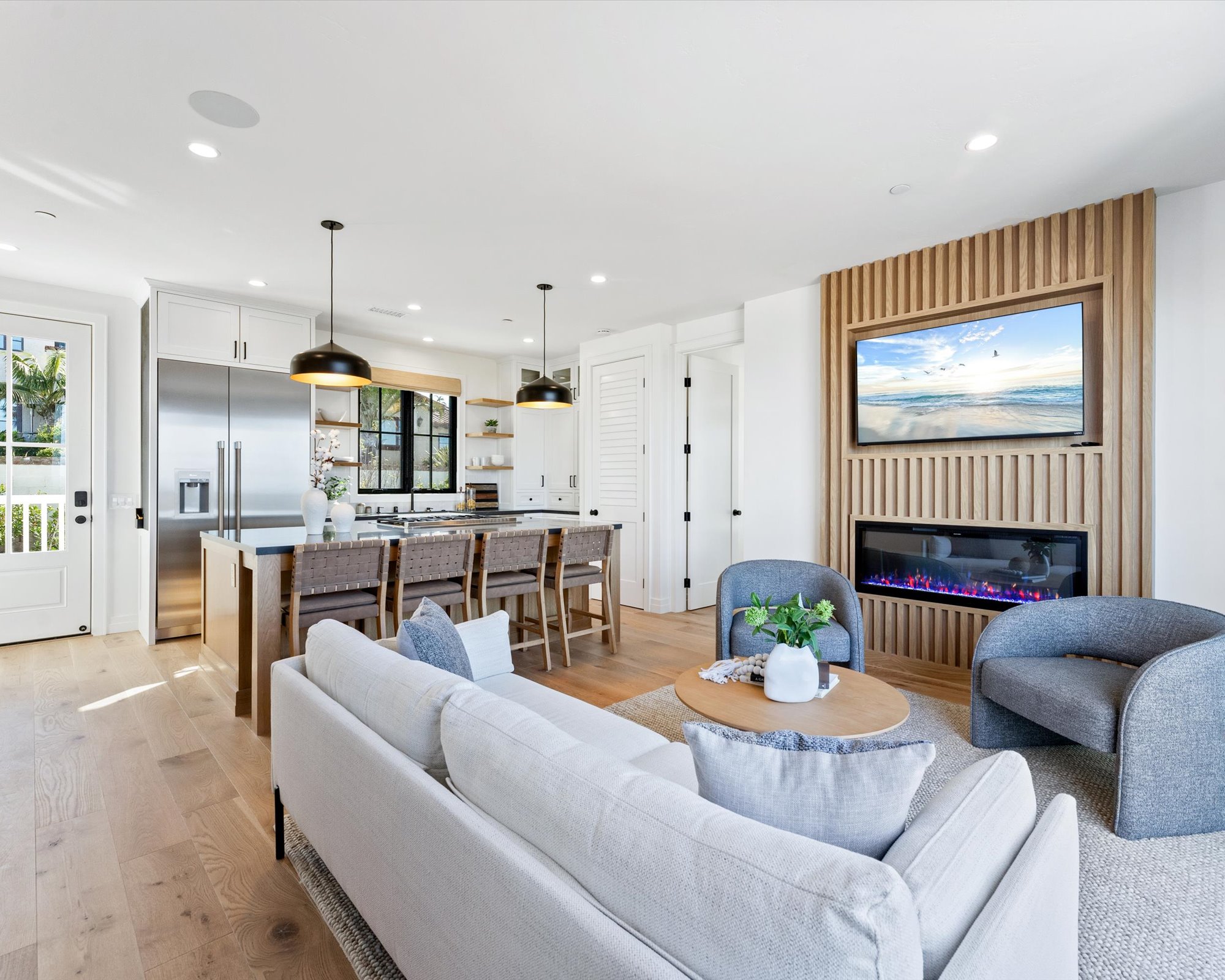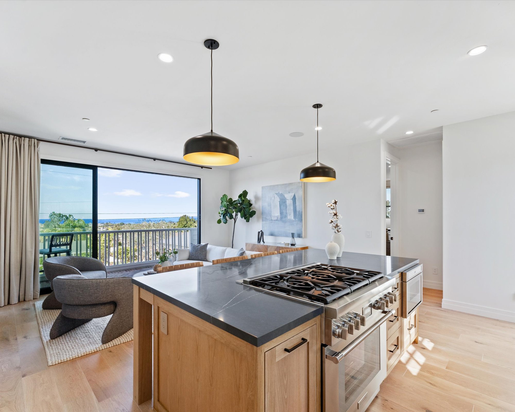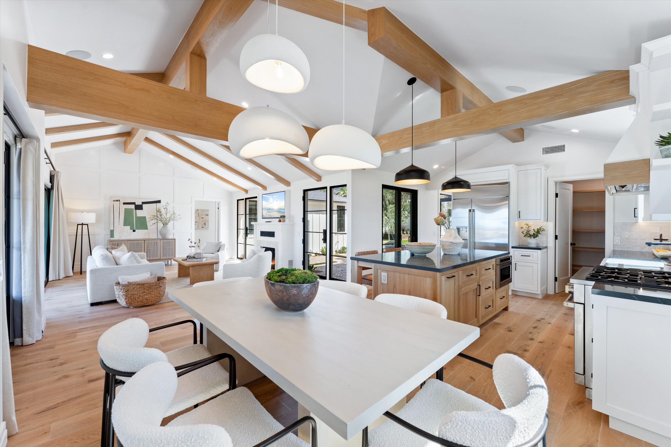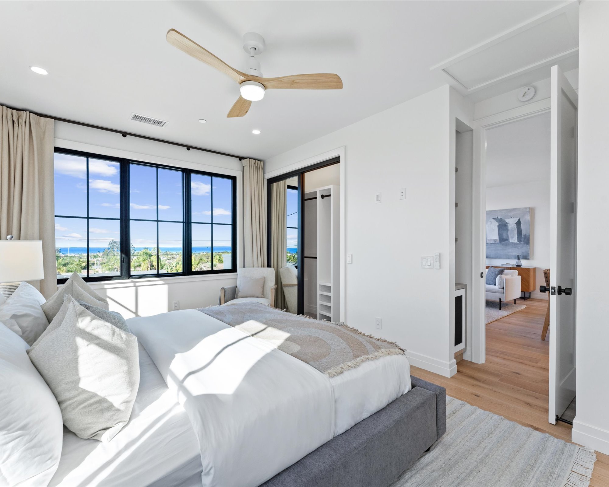 Welcome to 3342 & 3344 Donna Drive, a stunning embodiment of coastal contemporary living nestled in the heart of old Carlsbad. This new construction masterpiece, crafted by visionary Roland Shany, boasts not one, but two impeccably designed homes on one lot with sweeping panoramic ocean views on an impressive 11,800 Sq Ft lot! The main single-level residence (3342), spanning 3 bedrooms and 2 bathrooms, exudes charm and elegance with its custom white oak vaulted ceiling beams throughout, engineered hardwood floors, and its original wood-burning fireplace. This down-to-stud new construction includes all new roof, plumbing, electrical, and fixtures. Revel in the sweeping sit-down panoramic ocean views that grace both homes, creating a picturesque backdrop for everyday living. The second home, a 2-bedroom, 2-bathroom gem (3344), offers versatility as an investment property or guest home, complete with all-new high-end appliances, built-in closet cabinetry, and a modern aesthetic that seamlessly blends with its coastal surroundings. No detail has been spared in these meticulously crafted homes, from the high-quality Pella windows and All-Weather sliding stacking doors to the built-in surround sound, high-end custom cabinetry, and built-in closets throughout. Gorgeous open floorplan with tons of natural light and vaulted ceilings. Offering a two car garage with an additional carport for ample parking spaces. Indulge in culinary delights with the outdoor BBQ island, unwind by the fire pit, or simply bask in the tranquility of the designer landscaping curated with mature olive trees. This is a smart home from top to bottom with electric car charging outlets. Capture every stunning sunset from the comfort of your home. Conveniently located in the heart of Old Carlsbad with the largest elevated panoramic ocean view lots on Donna Drive, just a 7-minute drive to Carlsbad Village. Embrace the coastal lifestyle and make 3342 & 3344 Donna Drive your new sanctuary by the sea.