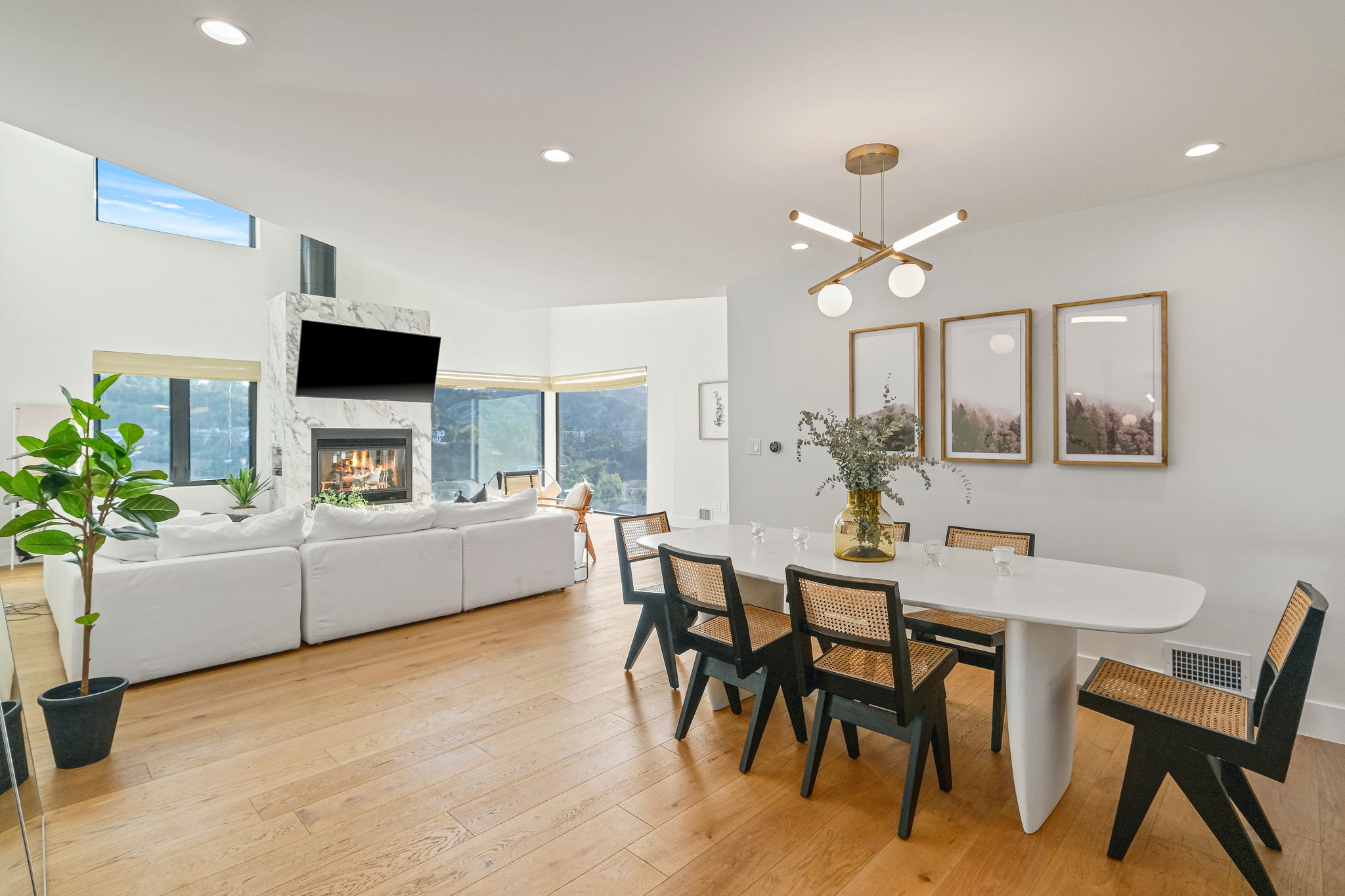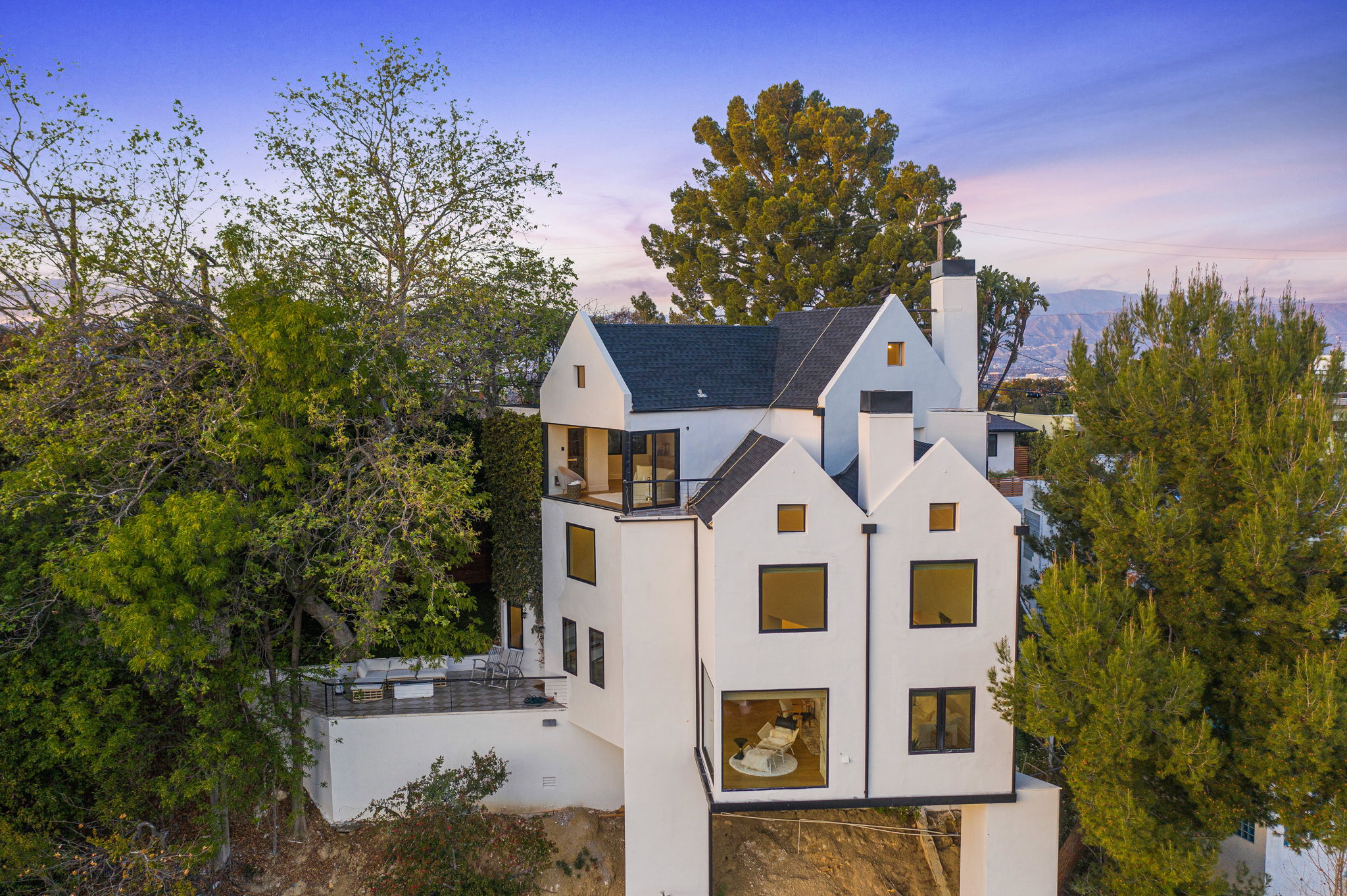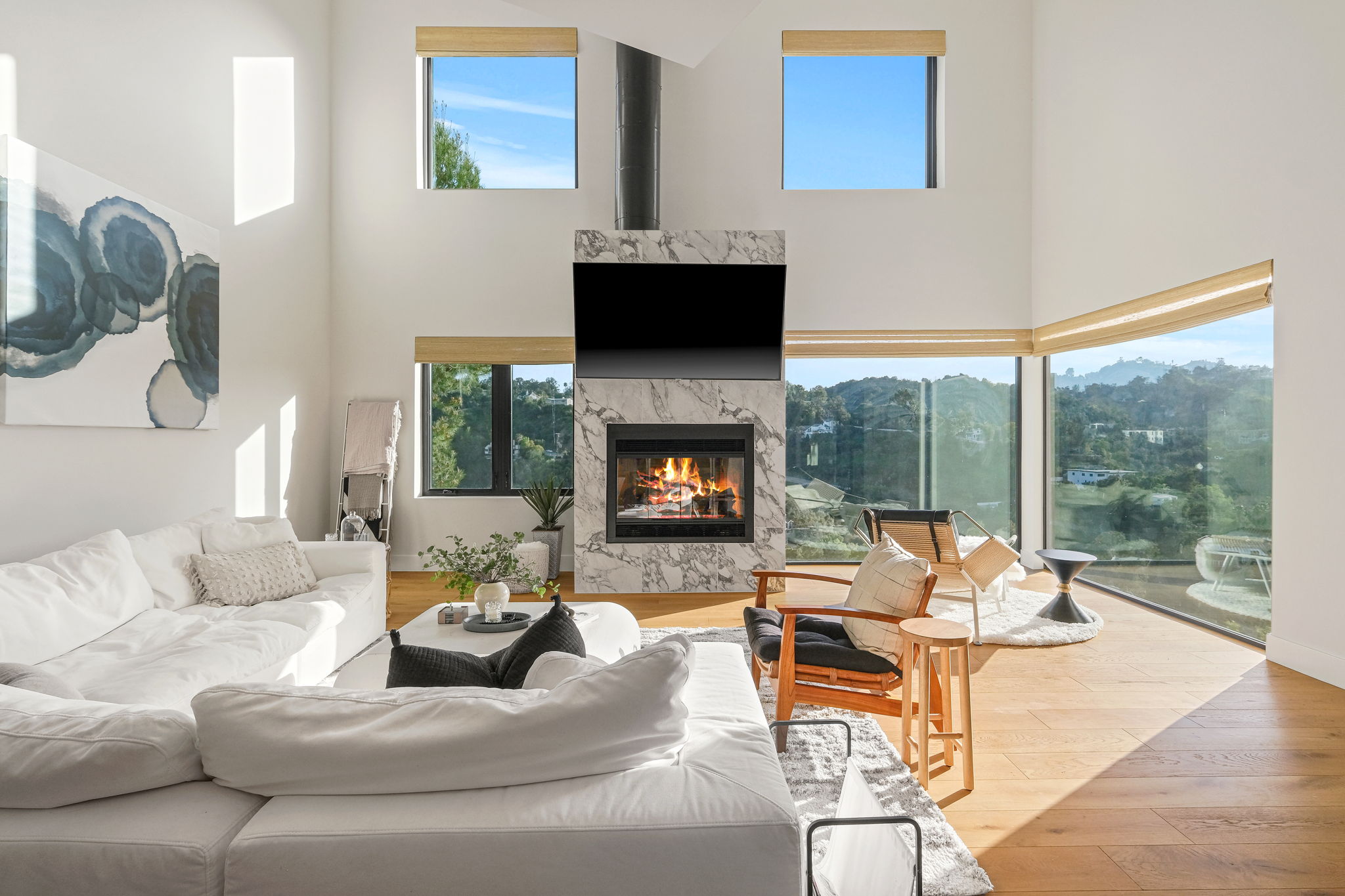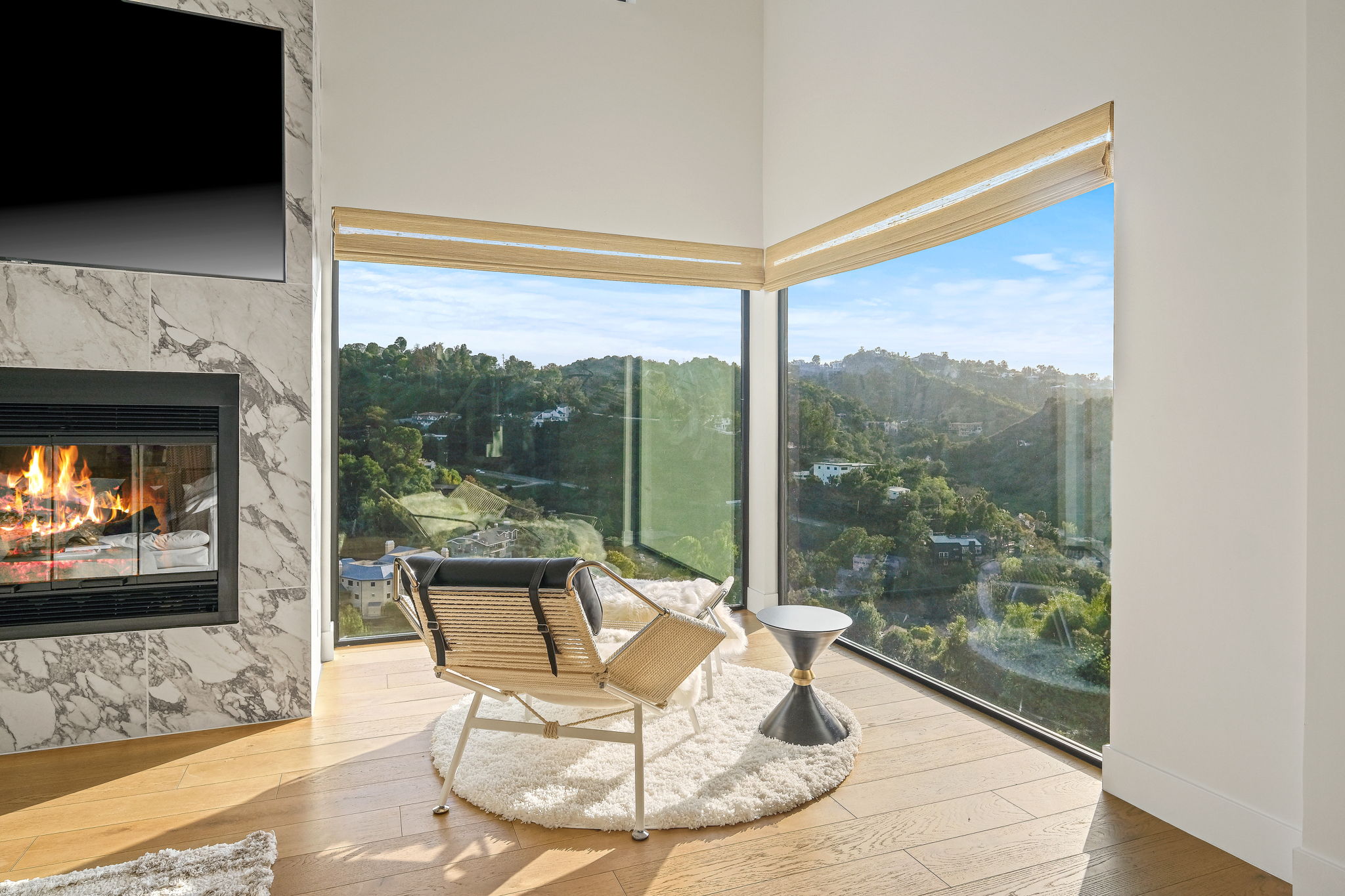 This charming and fully remodeled contemporary farmhouse boasts an open floor plan with enchanting views of the Hills. The 25-foot living room ceiling and expansive windows allow for an abundance of natural light throughout. The chef's kitchen is replete with top-of-the-line appliances and custom built-ins. The owner's suite features its own fireplace, spacious walk-in closet, sauna, balcony, and gorgeous spa-like bathroom with heated floors, soaking tub, and separate steam shower. A tranquil outdoor patio complete with a cozy fire pit serves as a perfect setting for relaxing and/or entertaining. Attached oversized 2-car garage.