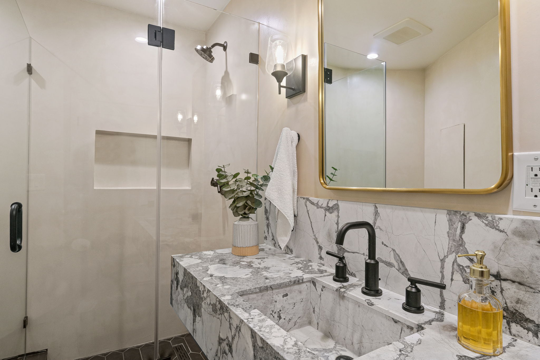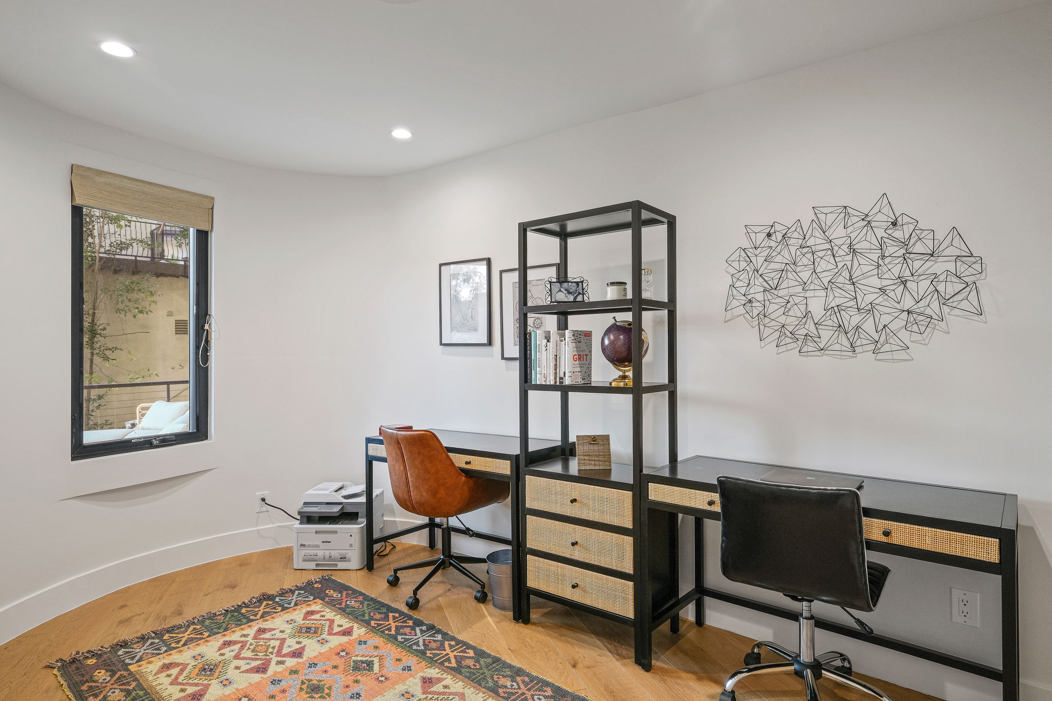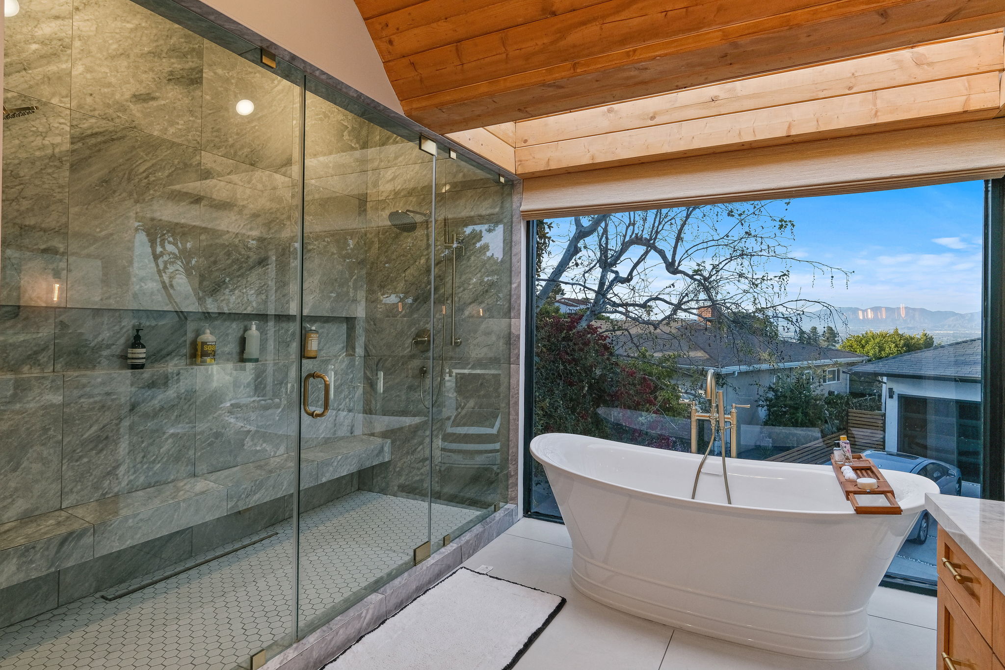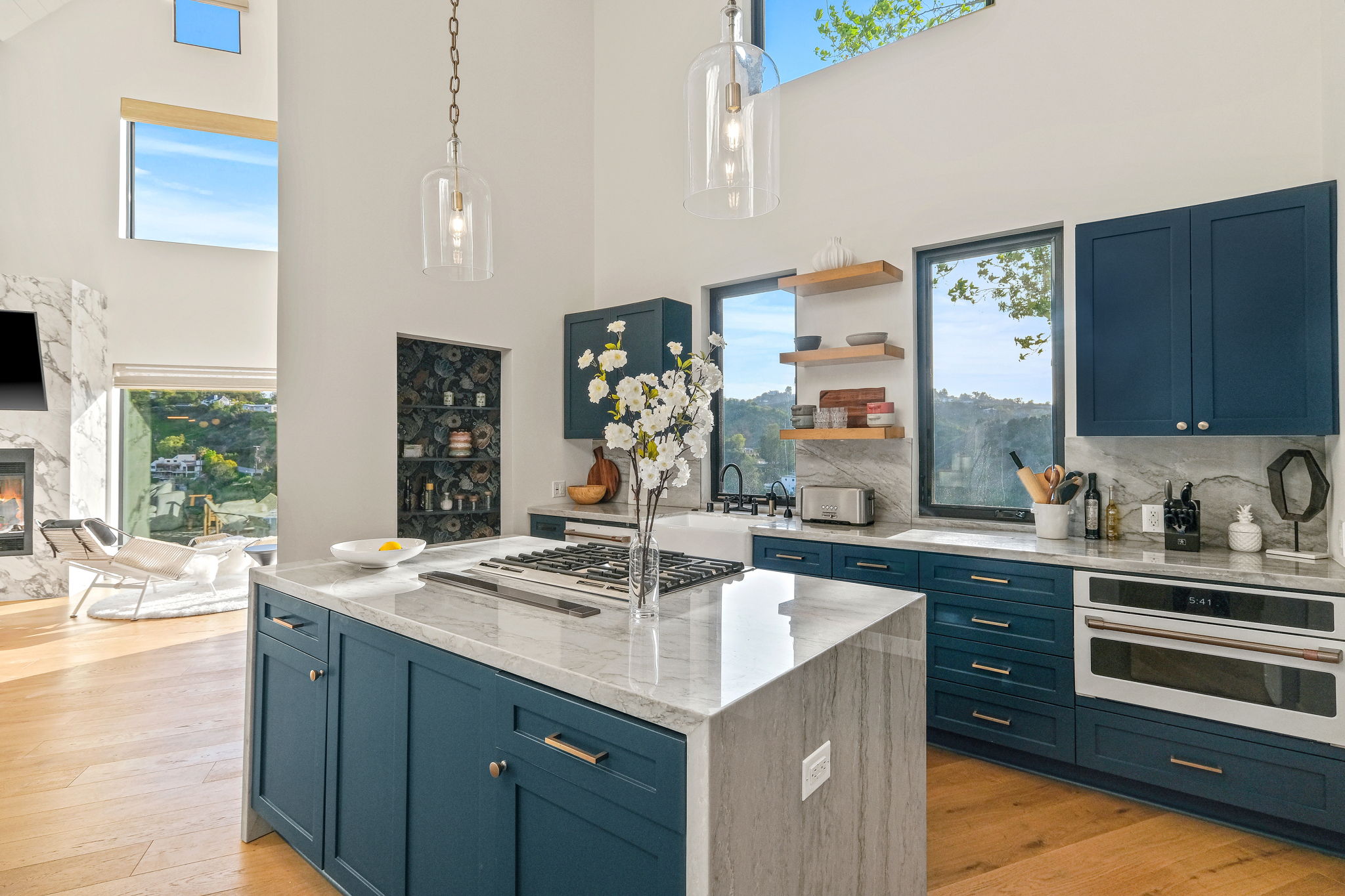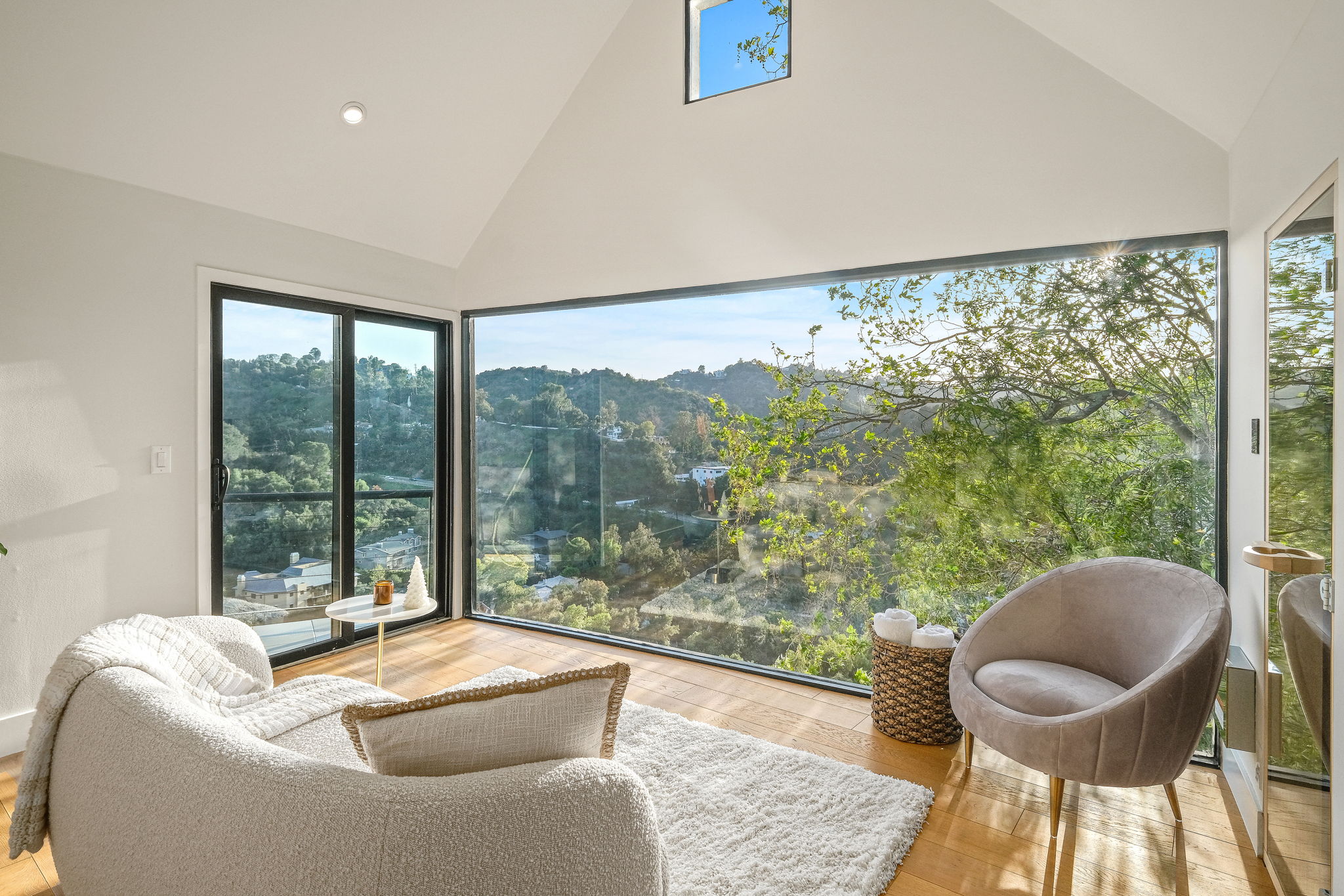 This charming and fully remodeled contemporary farmhouse boasts an open floor plan with enchanting views of the Hills. The 25-foot living room ceiling and expansive windows allow for an abundance of natural light throughout. The chef's kitchen is replete with top-of-the-line appliances and custom built-ins. The owner's suite features its own fireplace, spacious walk-in closet, sauna, balcony, and gorgeous spa-like bathroom with heated floors, soaking tub, and separate steam shower. A tranquil outdoor patio complete with a cozy fire pit serves as a perfect setting for relaxing and/or entertaining. Attached oversized 2-car garage.