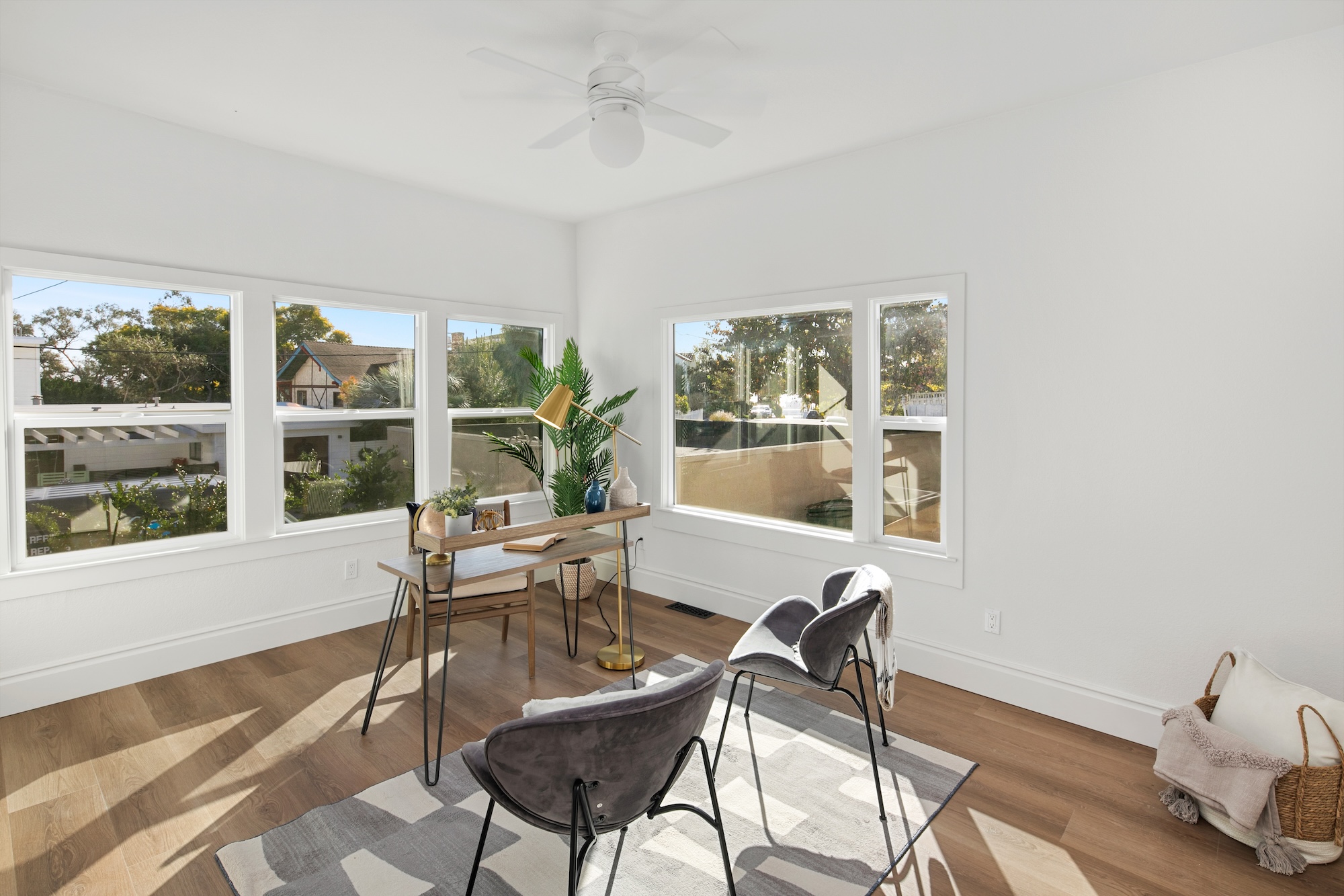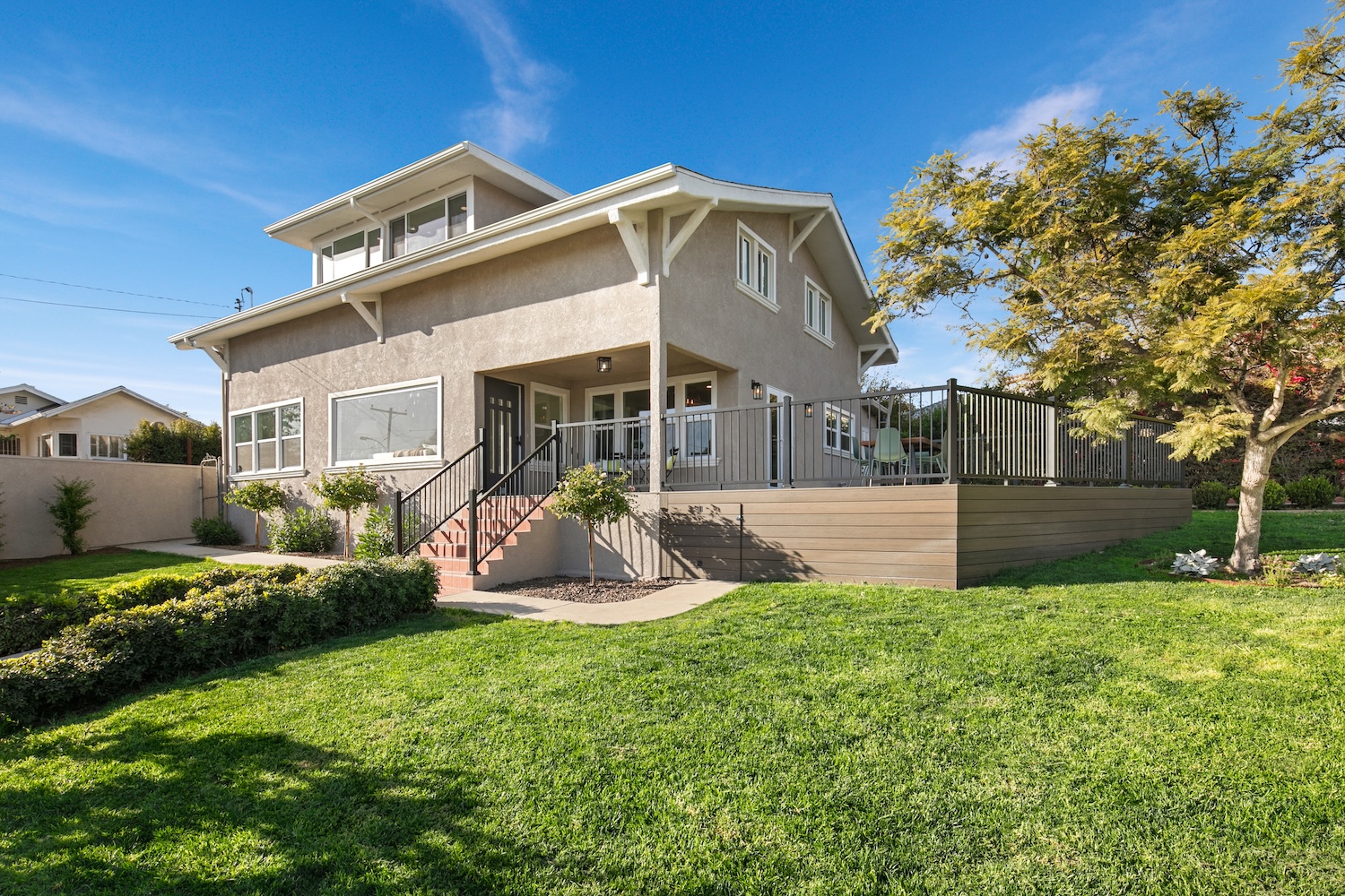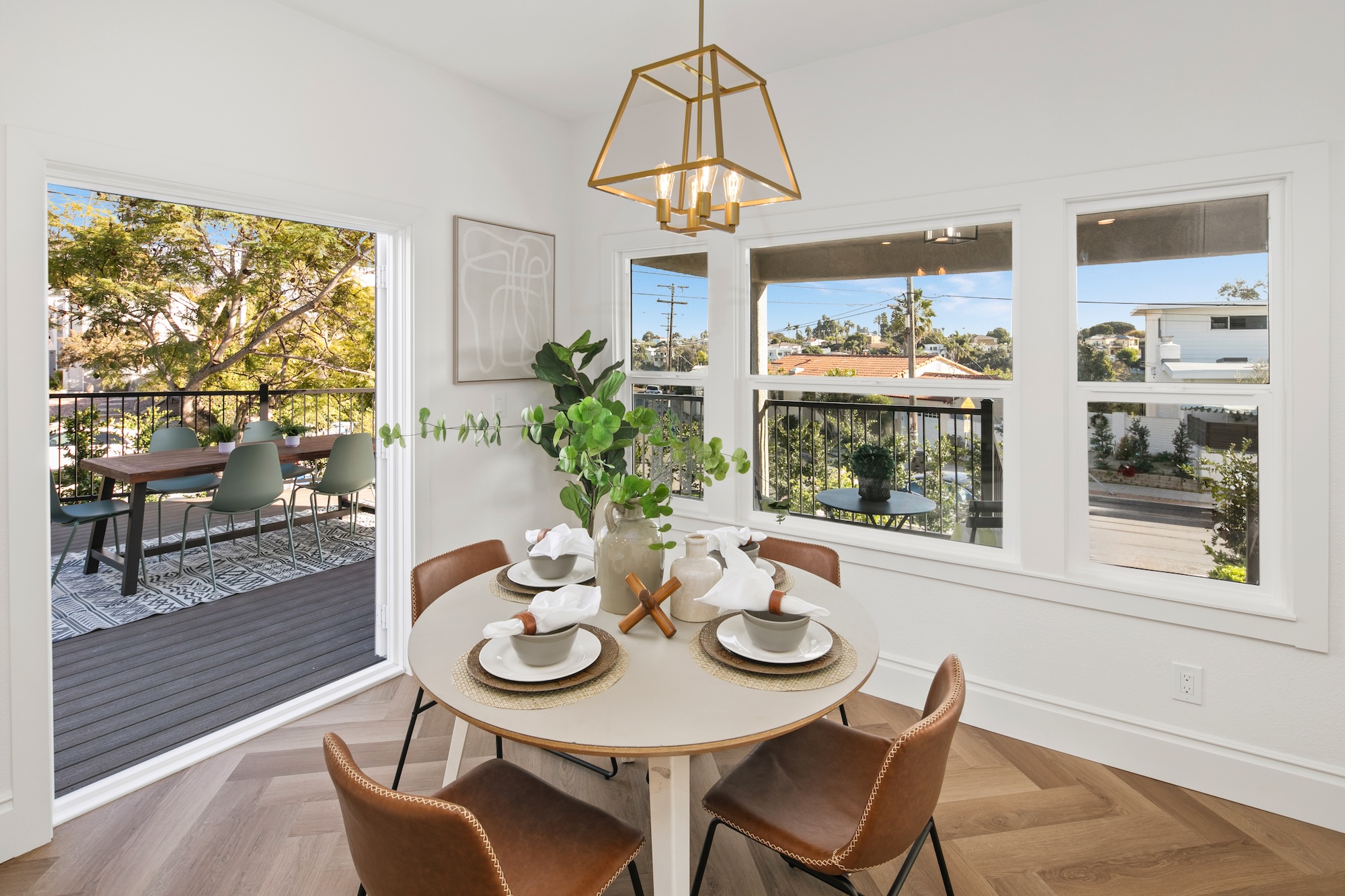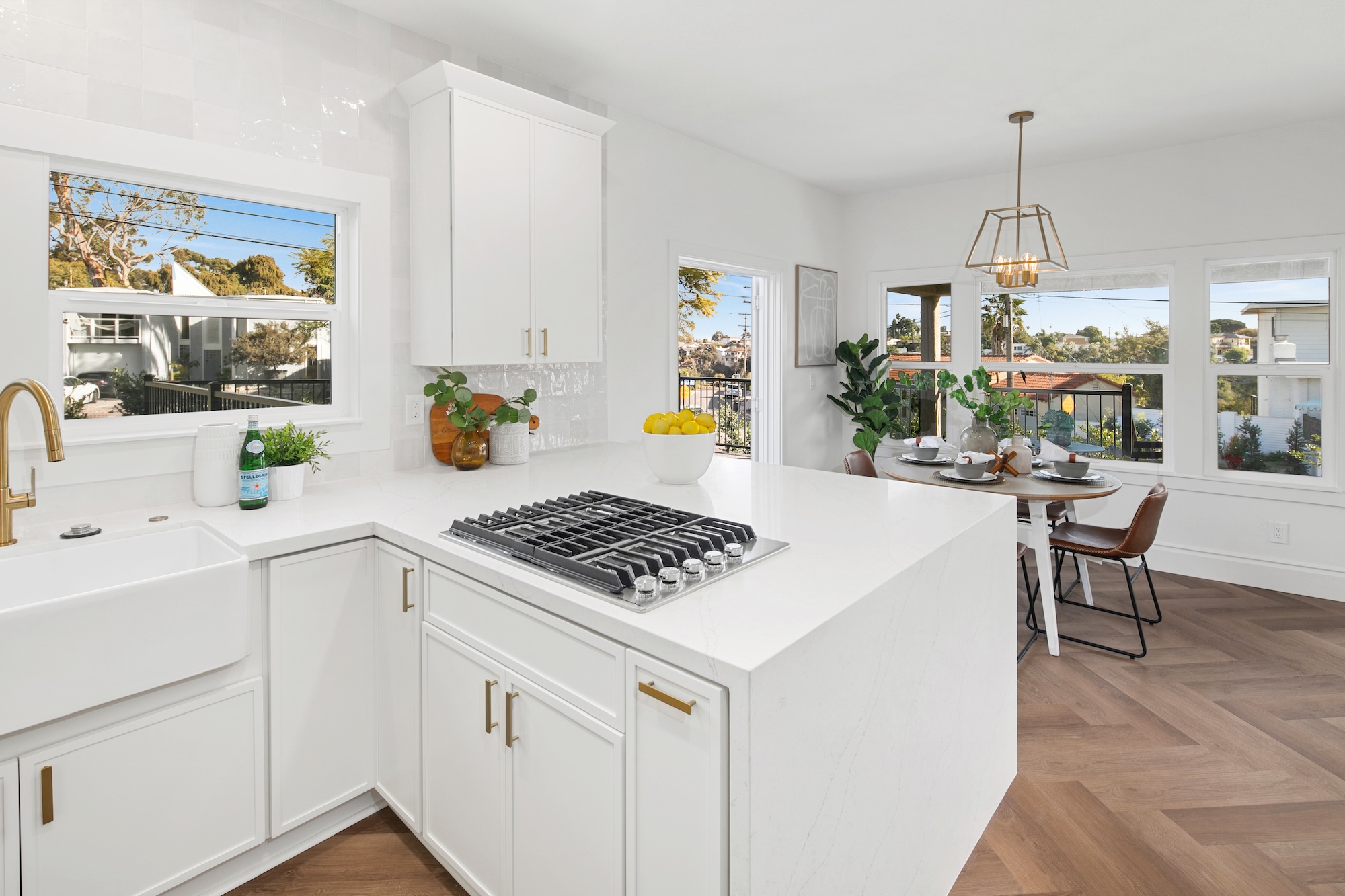 This beautifully remodeled 1920s home effortlessly blends modern updates with timeless colonial charm, preserving the character of both the property and its historic neighborhood. The stunning kitchen, finished in elegant off-white tones, offers ample counter space and herringbone-style floors that flow seamlessly through the main living areas, creating a cohesive and inviting atmosphere. With four spacious bedrooms—including two luxurious upstairs Primary suites—and three full bathrooms featuring elegant marble finishes, the home offers comfort and sophistication. Each Primary suite includes a large walk-in closet with a unique secret storage room, ideal for extra storage or creative uses. One suite even boasts views of the bay and downtown! High ceilings throughout amplify the home’s airy, expansive feel, while a charming fireplace anchors the living room with warmth and character. Climate control is thoughtfully designed, with central AC serving the first floor and split units upstairs for personalized comfort. Outside, the generous yard features a front space framed by hedges for privacy, as well as a versatile side and backyard perfect for children, pets, or entertaining. Glass double doors connect the kitchen and dining area to a spacious deck, ideal for embracing San Diego’s indoor-outdoor lifestyle. The deck offers room for both a sitting and dining area, with convenient storage space underneath. Set slightly above the street, the home enjoys enhanced privacy and striking curb appeal. A detached two-car garage adds practicality to this already exceptional property