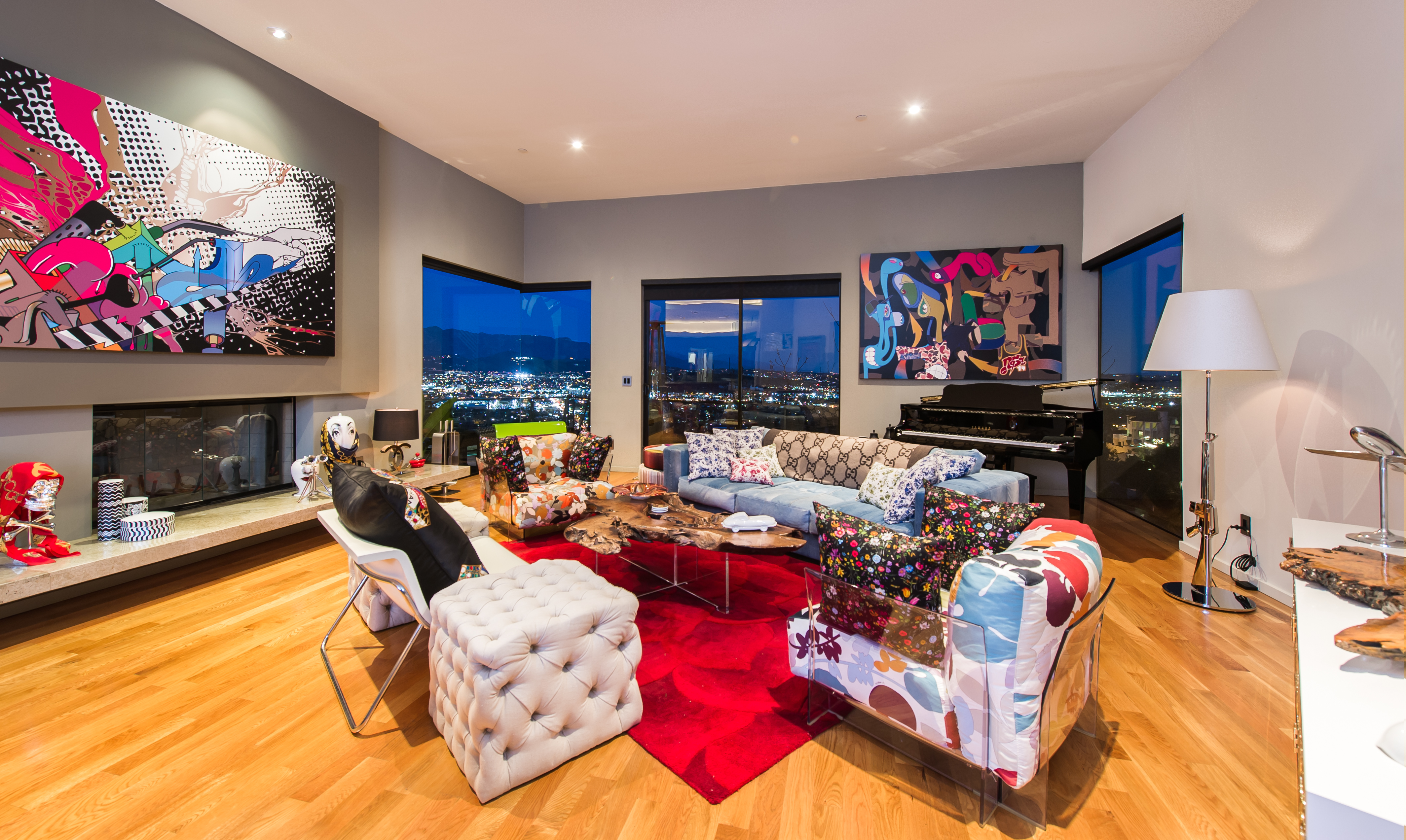 Set on its own promontory overlooking the city lights, this stunning contemporary boasts soaring ceilings, an open floor plan, and refined craftsmanship throughout. Smart home technology, a Viking kitchen, three fireplaces, an entertainer's yard with a large pool, and a spacious master with a large walk-in closet and bathroom, all taking in the city views.