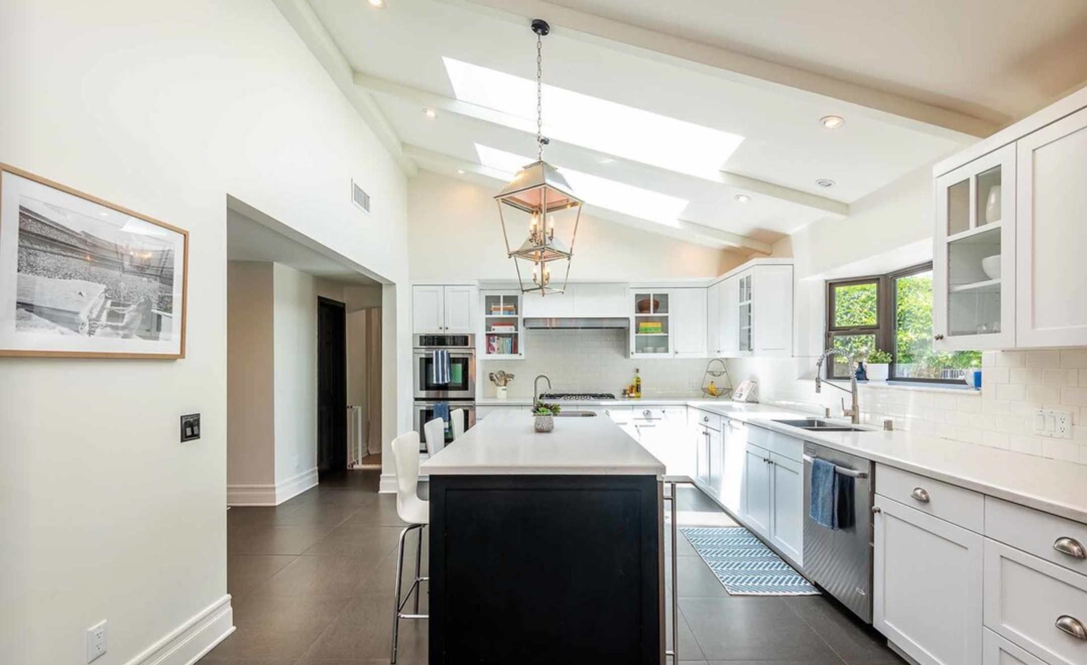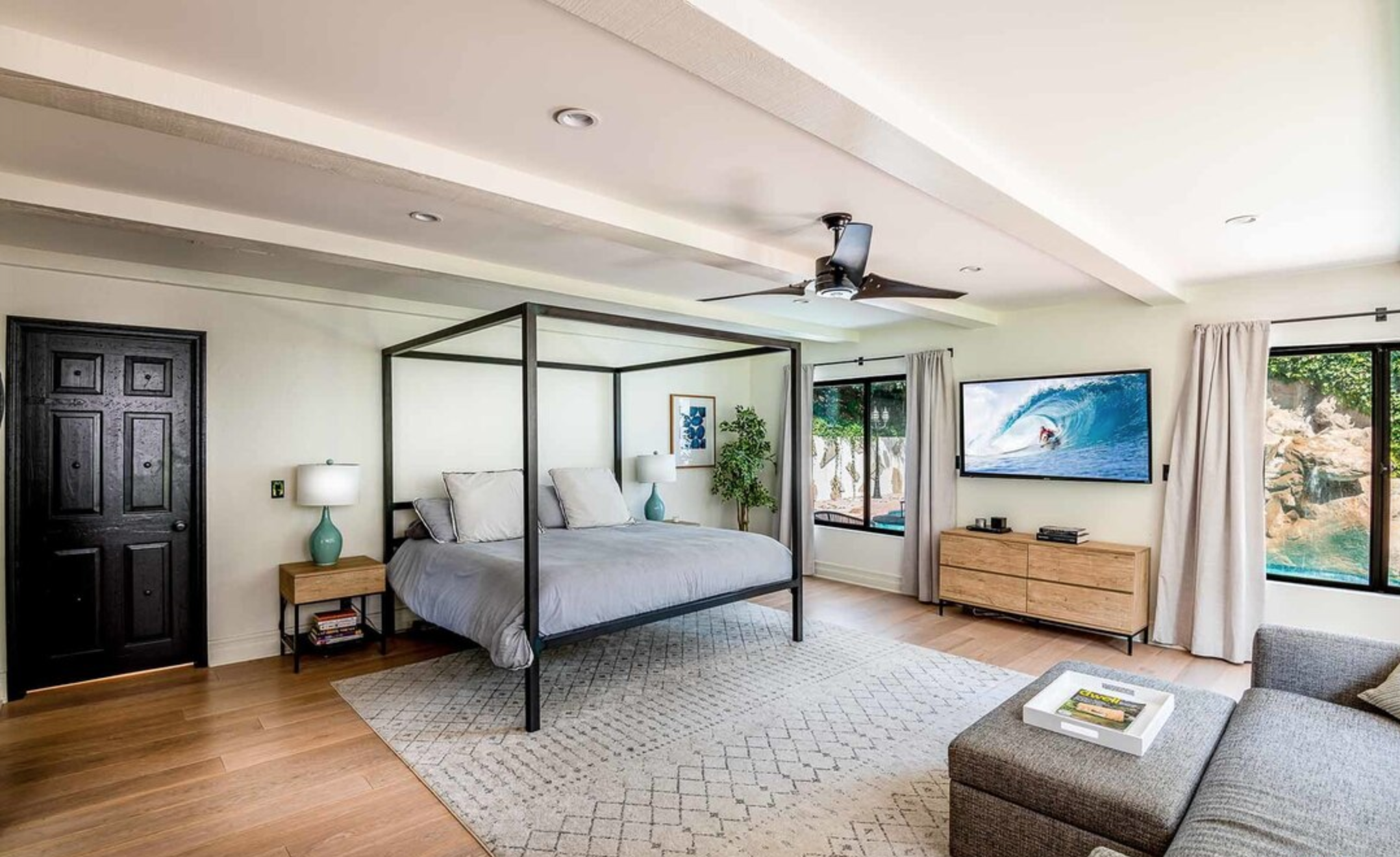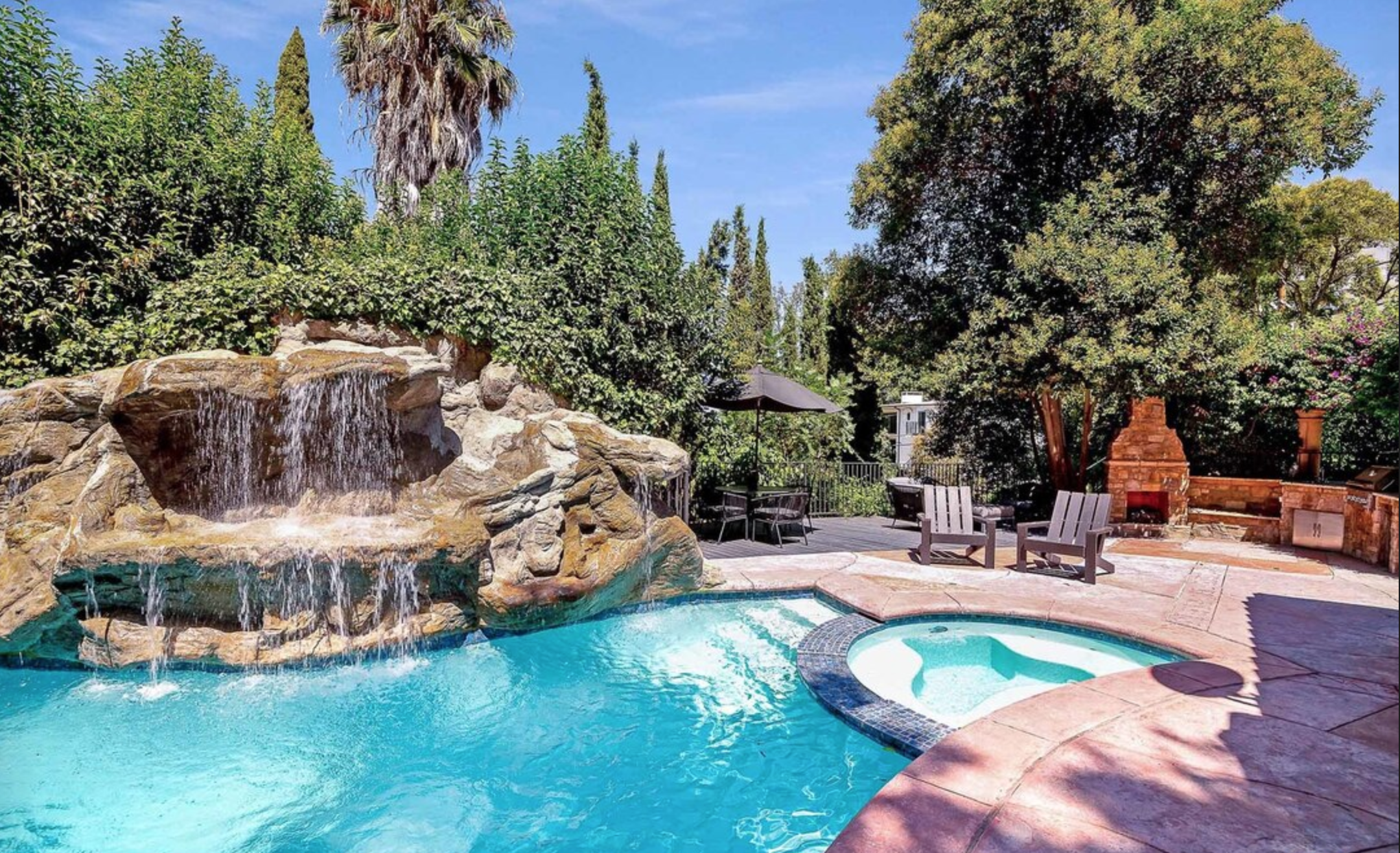 Executive-level living awaits you at this single-story Santa Barbara Spanish situated on an enormous flat lot in the hills and just seconds south of Ventura Blvd. The gates open as you enter the estate revealing the expansive yard. The property has recently undergone a significant renovation done with the utmost quality and on-trend style including a new kitchen, hardwood flooring, tile, interior/exterior paint, expanded driveway, and landscaping. Natural light illuminates the home from end-to-end and pours through skylights into two oversized living spaces. The gourmet Chef's kitchen has an island and breakfast nook. Step out of your master bedroom and into the heated pool complete with waterfall and slide. At the far opposite end of the home, an attached guest suite with separate entrance has vaulted ceilings and French doors leading out to dual balconies. This truly unique estate is one of a kind.
