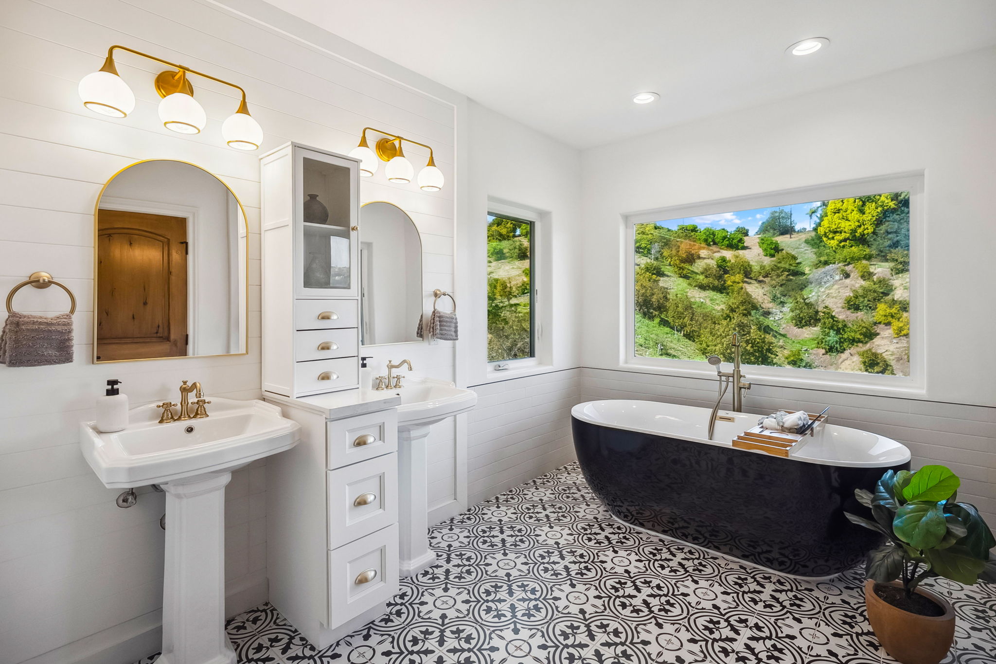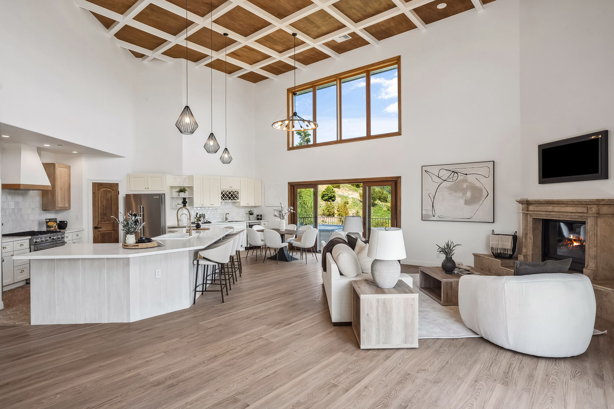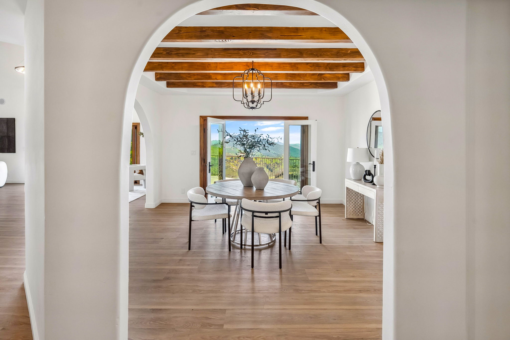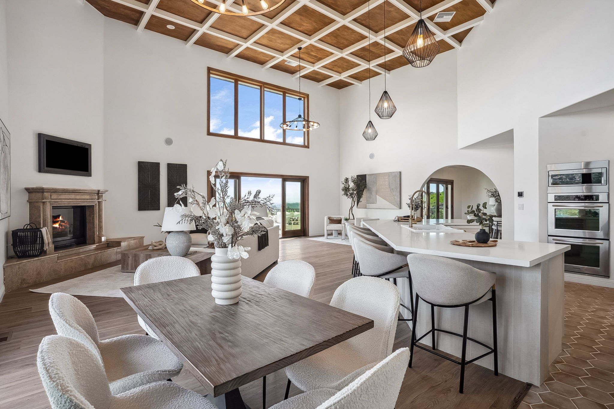 A Modern Hilltop Estate Surrounded by Over 500 Acres of Scenic Flower Farms Tucked away on a quiet private road in Fallbrook, this modern hilltop estate offers rare privacy, open space, and panoramic views that stretch for miles. Surrounded by over 500 acres of vibrant flower farms, the six-acre property blends luxury with rural charm in a way that’s nearly impossible to find. Recently and extensively renovated, the home features soaring ceilings, custom wood details, brand-new flooring, lighting, cabinetry, and high-end appliances. Natural light fills the open layout, with a stunning kitchen that flows into the living and dining areas. Walls of windows and sliding doors open to a massive wraparound Trex deck—perfect for sunset dinners and weekend entertaining. The main-level guest suite includes its own en-suite bath and porch, while upstairs offers two more bedrooms—including a spa-like primary retreat with a private view deck, soaking tub, and walk-in shower. A flexible loft space is ideal for a theater, studio, or playroom. Downstairs, a fully equipped ADU with a separate entrance includes two bedrooms, a full kitchen, and a living space—perfect for guests, extended family, or rental income. Additional highlights include smart home features, brand-new multi-zone HVAC, a durable metal shake roof, RV parking potential, and fire-safe landscaping with recent clearance approval from the county. Just minutes from the 15 freeway and a short drive to Fallbrook and Temecula’s top wineries, shopping, and dining—this one-of-a-kind property is more than a home… it’s a lifestyle.