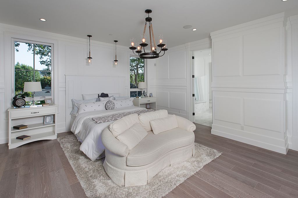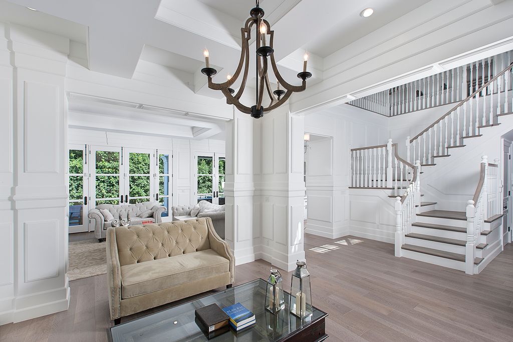 Chic architectural, craftsmanship and design features create a stylistic yet warm environment. It flawlessly transitions between cape cod & contemporary styles, catering to quintessential indoor/outdoor southern California living. Luminous Open Floor Plan with 11 feet high ceilings , Massive Architectural 9 feet French doors and impressive windows, presents seamless In Door/Outdoor Flow. Gorgeous Expansive Chef's Kitchen with Wolf/SubZero/Bosch Appliances, Impressive carrera marble Island, Custom Cabinetry and Walk-in Pantry . Romantic master suit has fireplace and balcony, added bonus sitting area, and two master bathrooms with large double closets.