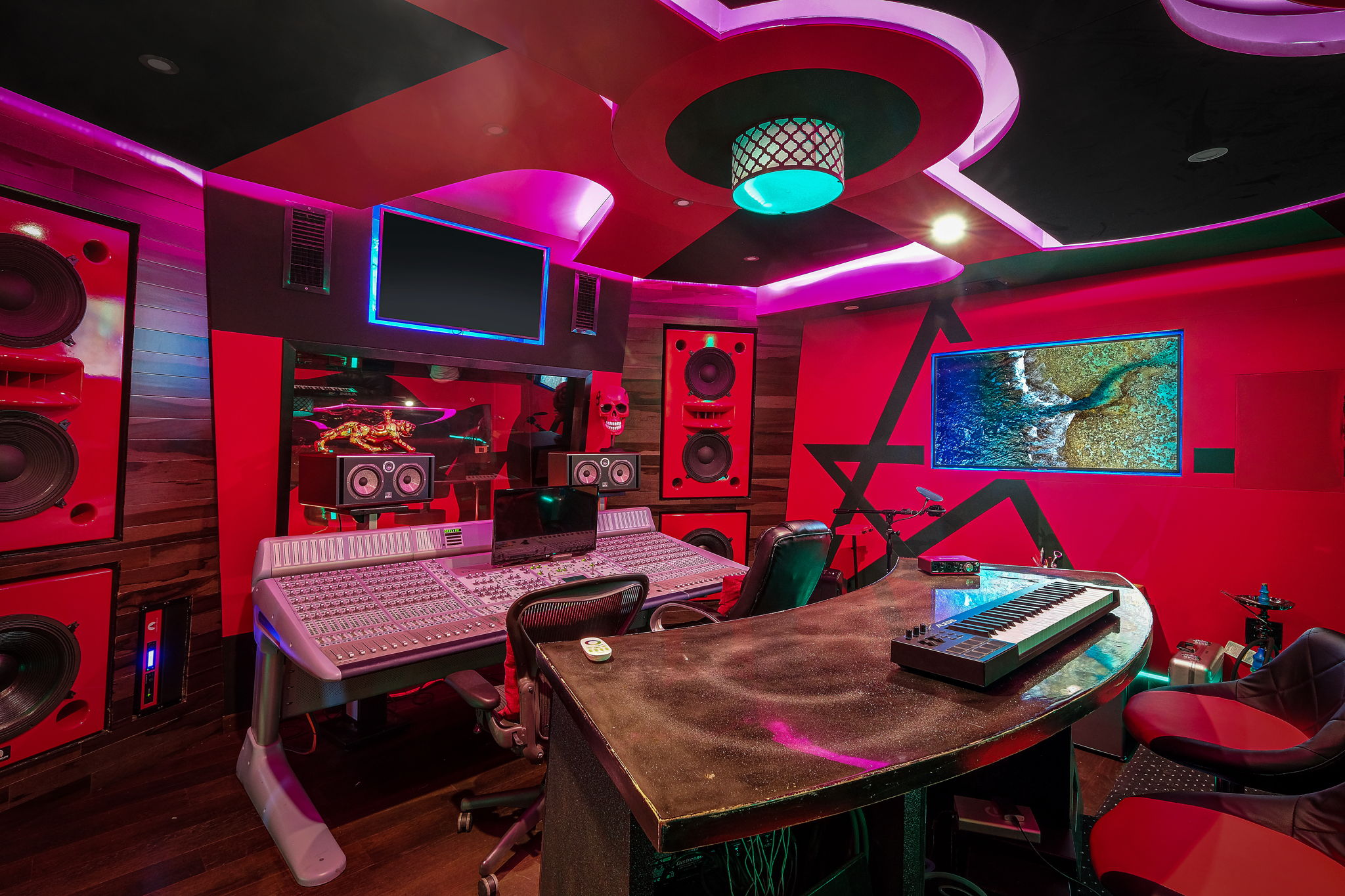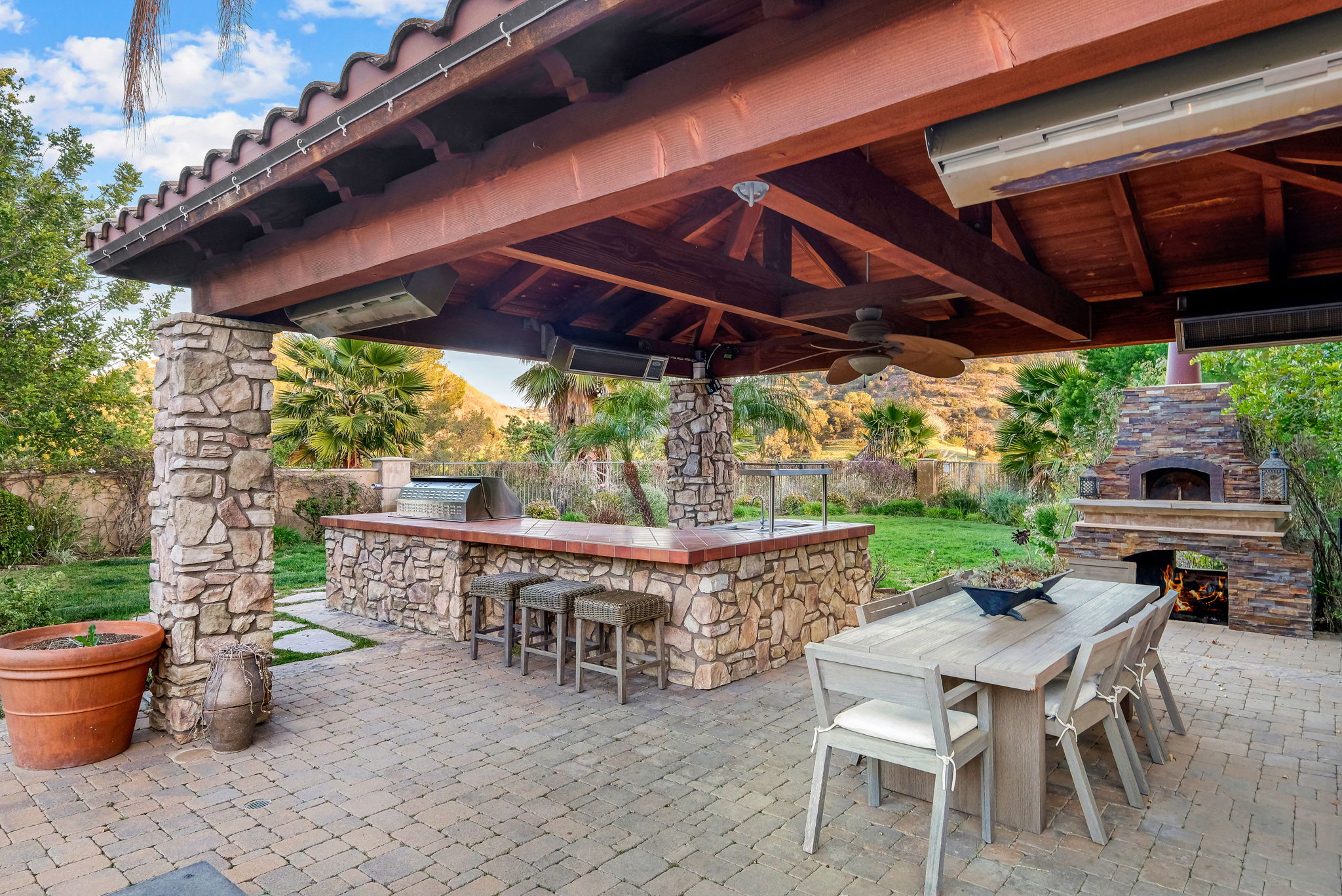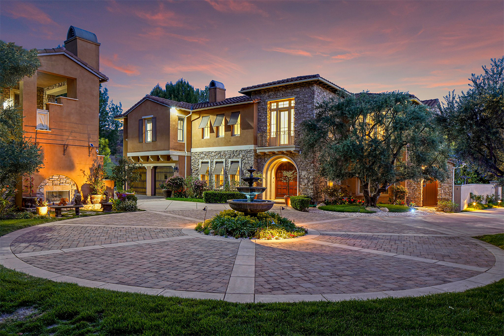 Located in the private and highly exclusive Mureau Estates gated community of Calabasas, this sprawling 3-acre celebrity-owned compound sits past a private gated driveway and large motor court. The main house offers massive scale with floor-to-ceiling windows, and a beautiful outdoor courtyard perfect for entertaining. 5 bedrooms, 5 baths, 5 fireplaces, stone tile floors, wine cellar, theatre, built-in bar, and impressive formal dining room. The kitchen is equipped w/Sub Zero fridge/freezer, Wolf Range/Oven, dual dishwashers, chef's island, breakfast nook area, and large pantry. The large owner's suite features a sitting area, spa-like bath, steam shower, and spacious closet. Exit into a resort-style backyard with pool/spa, cabana, Viking outdoor kitchen, and brick pizza oven. The detached guest house offers a spacious living room, full bath, walk-in closet, and terrace w/fireplace. A full recording studio has been fitted with the best equipment the industry has to offer. Home systems include built-in surround sound, Sonos, Control 4, security cameras, 4-zone heating/cooling, and solar panels.