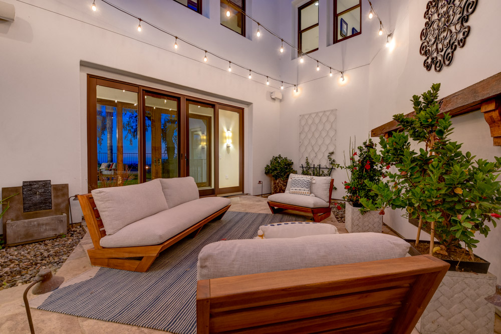 Experience a remarkable combination of luxury and coastal living in this charming yet expansive, custom estate! Ocean views encompass nearly every room. Enjoy this dream location, privacy and an abundance of amenities. Equipped with five spacious en suite bedrooms. The secluded primary suite benefits from a cozy fireplace, large spa bathroom and ocean view balcony. The executive office is conveniently located alongside the primary wing. Enjoy countless sunsets and ocean breezes from the amazing rooftop deck, alfresco dining space and other entertaining areas. Completed with an attractive movie theater, large fitness center, library nook and 2-story detached guest house with an adorable kitchen. Tastefully renovated with a sophisticated selection of high-end finishes; newly installed solar and HVAC systems provide excellent energy efficiency. With over 7,000 square feet of custom quality and impeccable design, this modern Mediterranean villa is everything!
