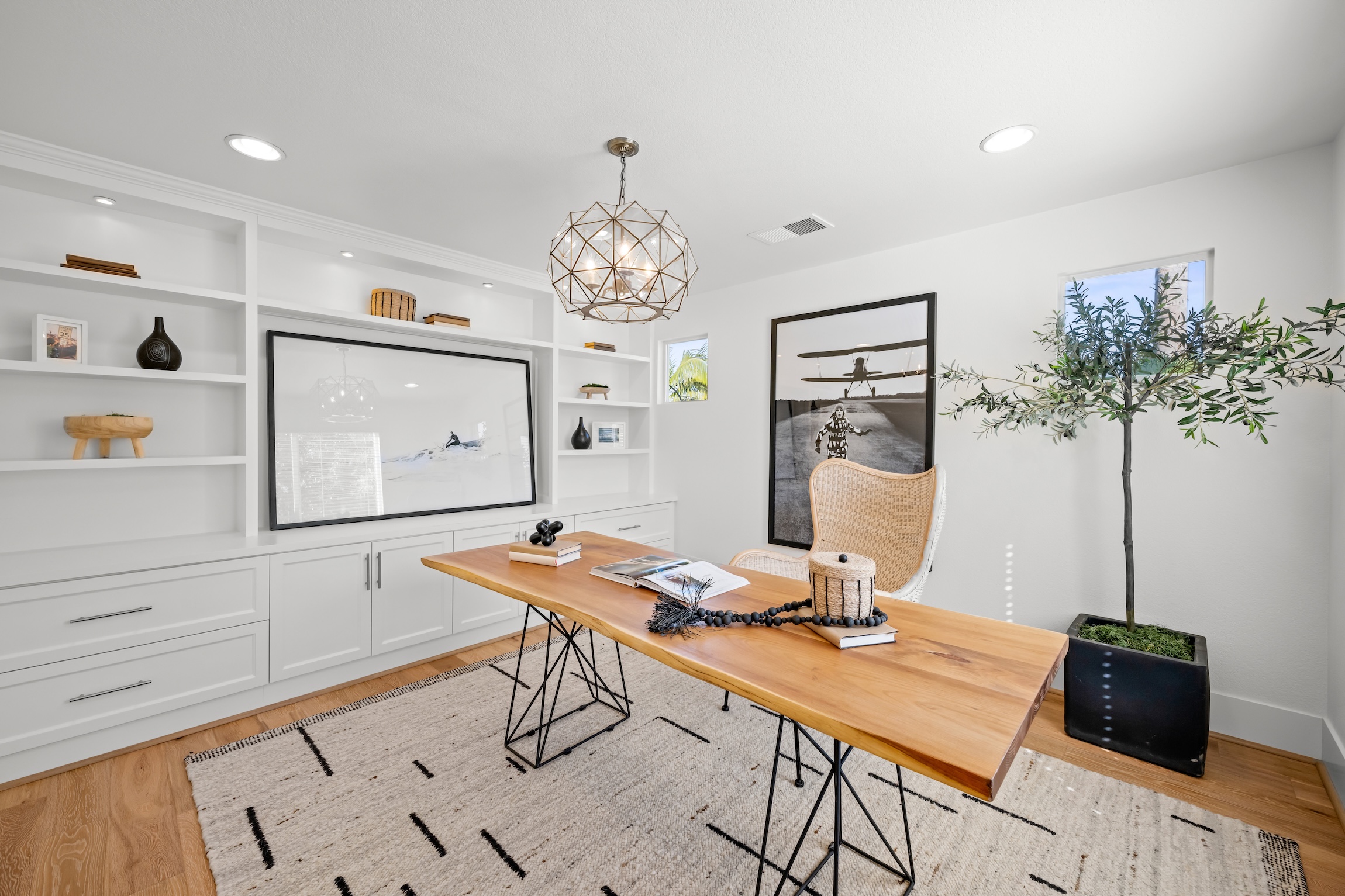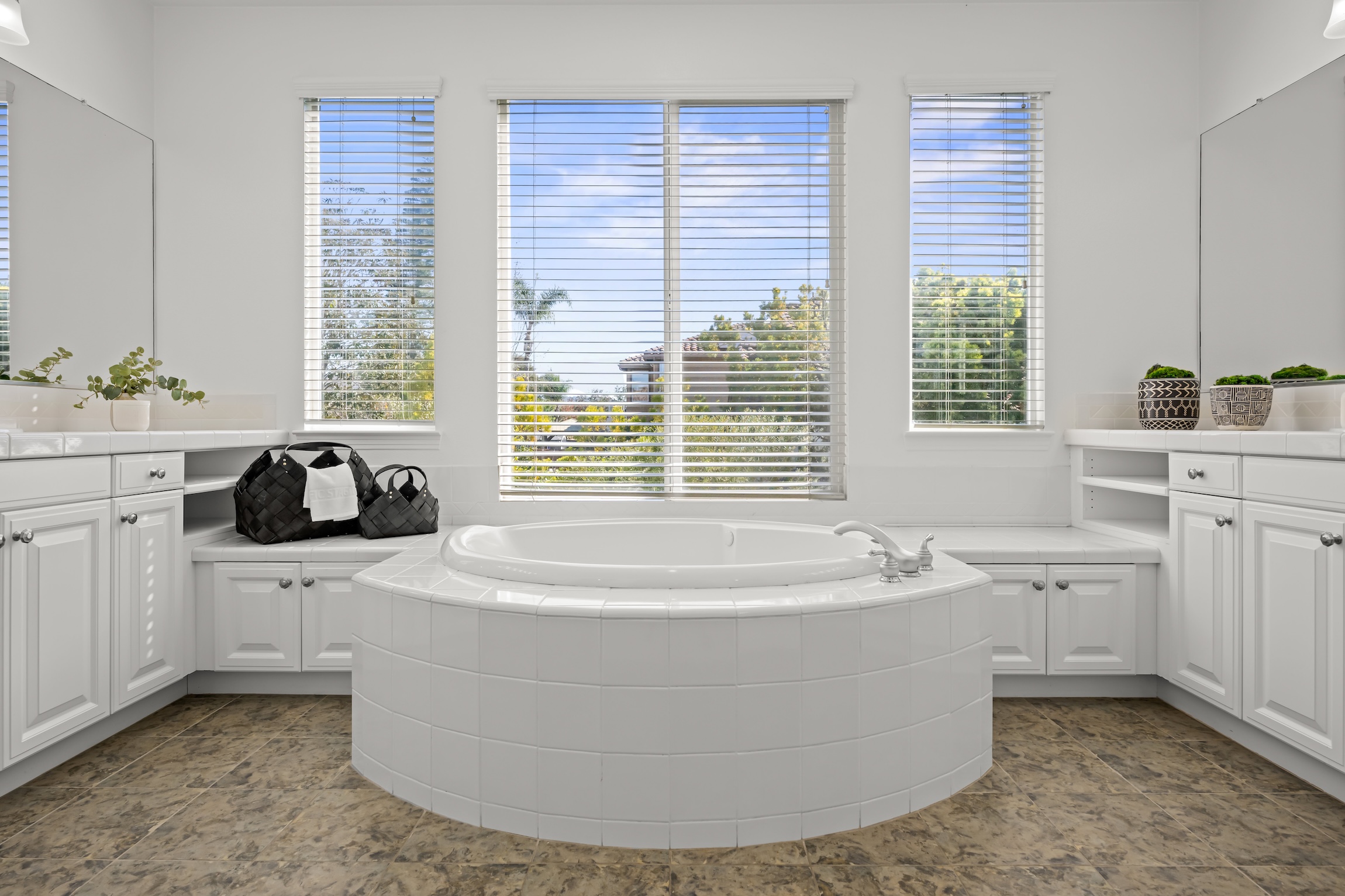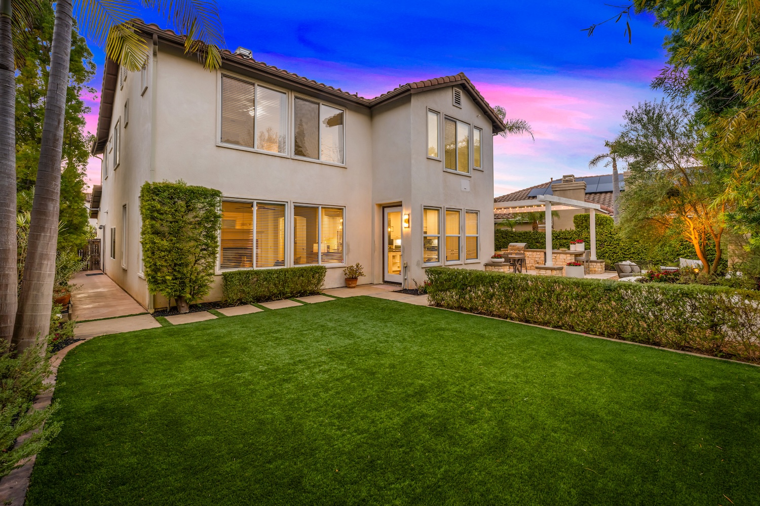Discover this impeccably maintained La Costa Valley home, tucked away on a peaceful cul-de-sac. This move-in ready gem offers luxurious living and smart functionality, with thoughtfully designed spaces both indoors and out. The private backyard is a true oasis, featuring a large turf play area, a stunning stone patio with a built-in BBQ, outdoor TV, and a cozy gas fire pit—perfect for relaxing or entertaining. Inside, high ceilings and natural light create a welcoming ambiance. Elegant wood and glass built-ins add charm and practicality, while gleaming wood floors run throughout the downstairs. The spacious family room, with its newly remodeled fireplace and custom built-ins, connects seamlessly to the kitchen. A guest room and a versatile bonus room for use as a gym, playroom, 6th bedroom or second office complete the lower level. Upstairs, the highlight is the spacious primary suite—a true retreat. This luxurious space is complete with a beautiful sitting area and executive office adorned with custom built-ins. Three additional bedrooms and a practical desk nook offer flexibility for work, school, or hobbies. The neighborhood is second to none, offering access to the exclusive Valley Club, which boasts a Junior Olympic-sized pool & spa, tennis courts, and fitness center. Outdoor enthusiasts will love the nearby walking and biking trails, while families will appreciate the award-winning San Dieguito Union and Encinitas Union school districts. With low HOA fees and a location that combines comfort, convenience, and community, this La Costa Valley home truly stands out!