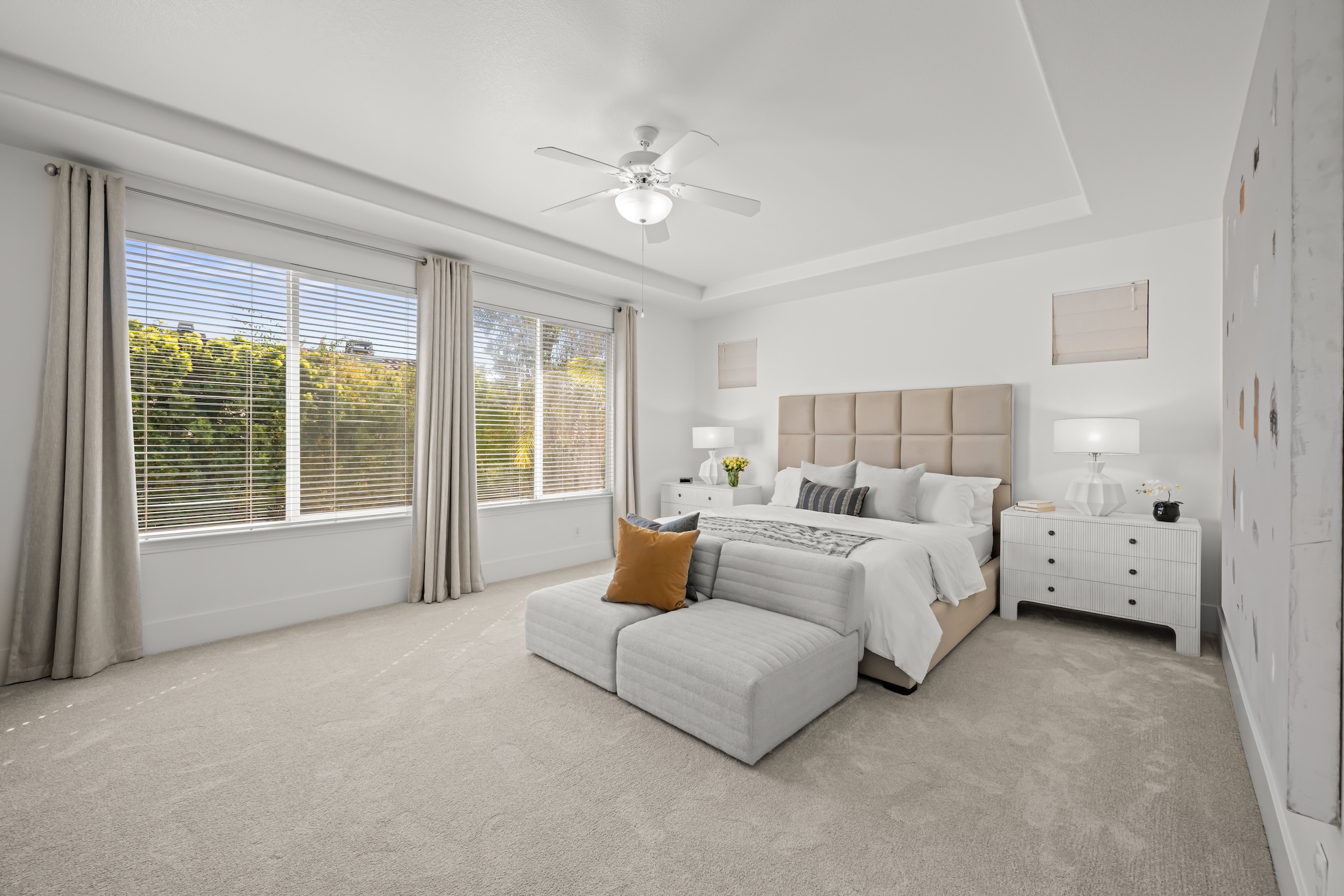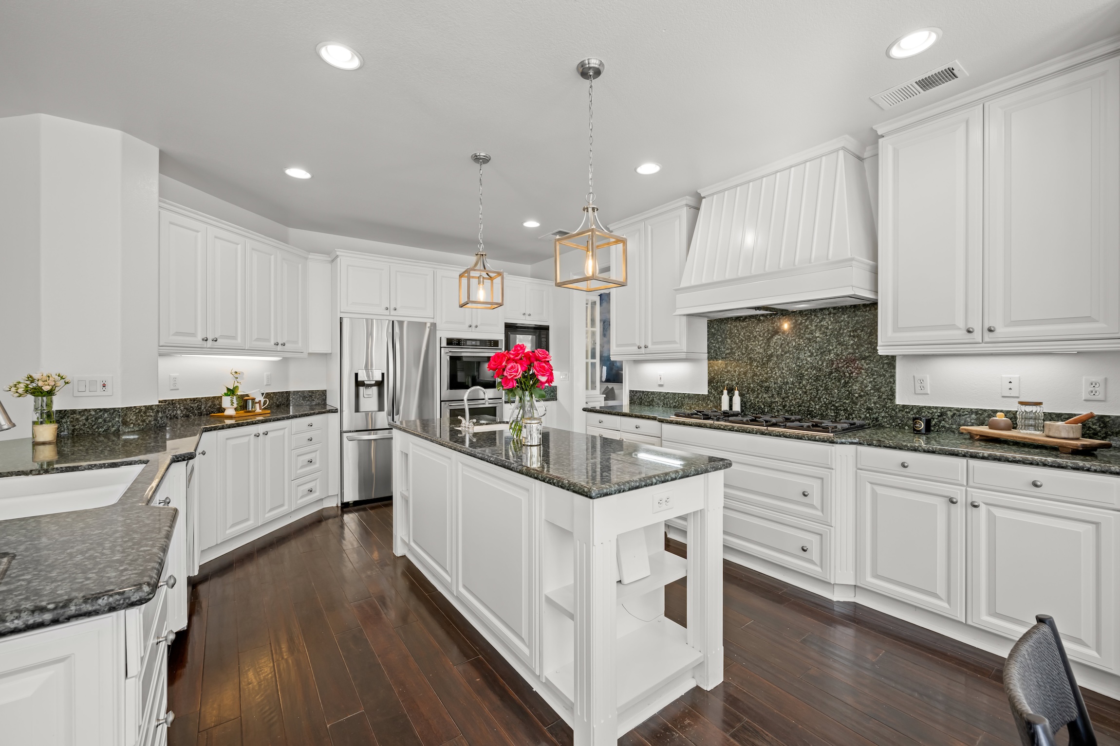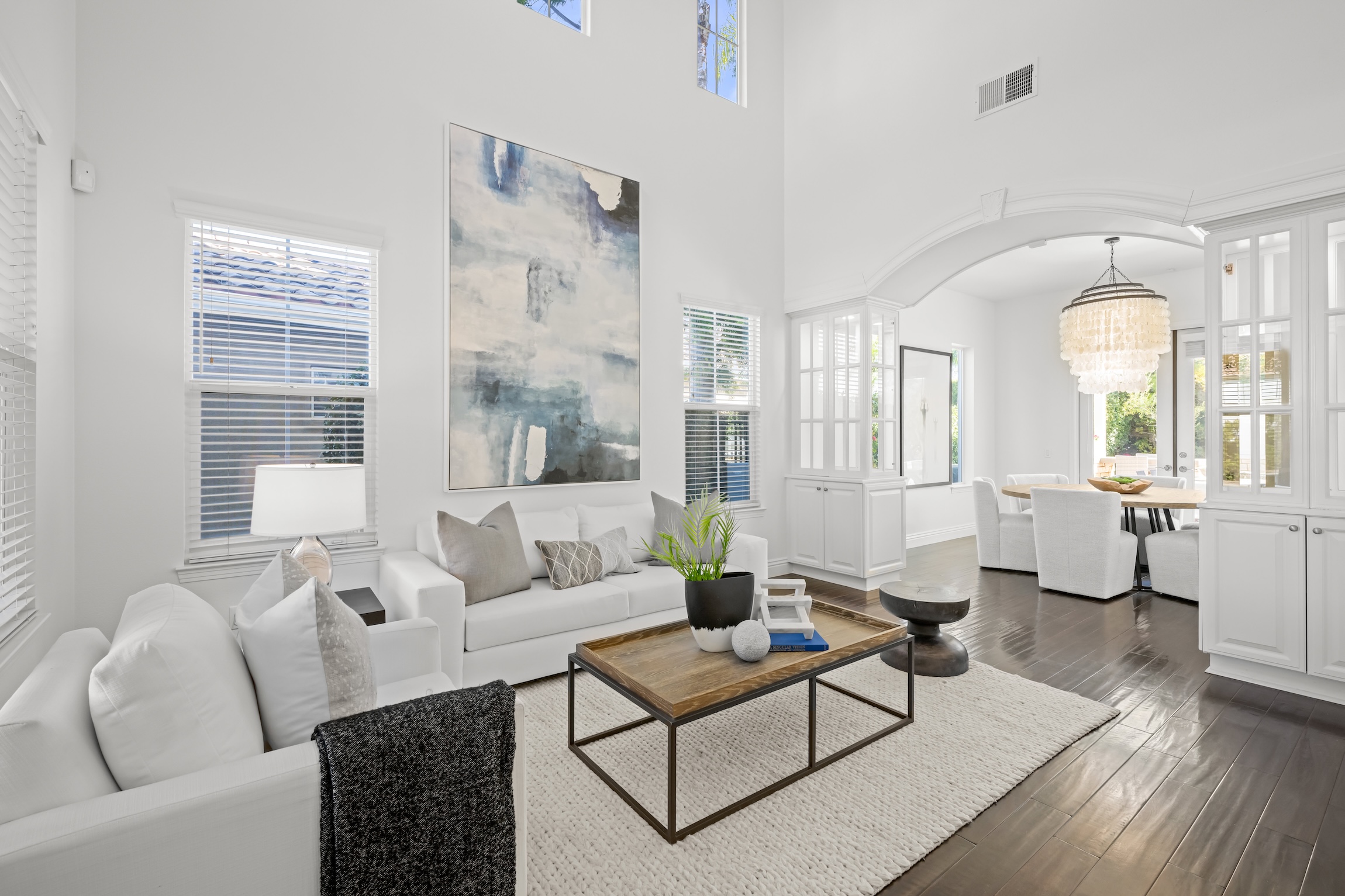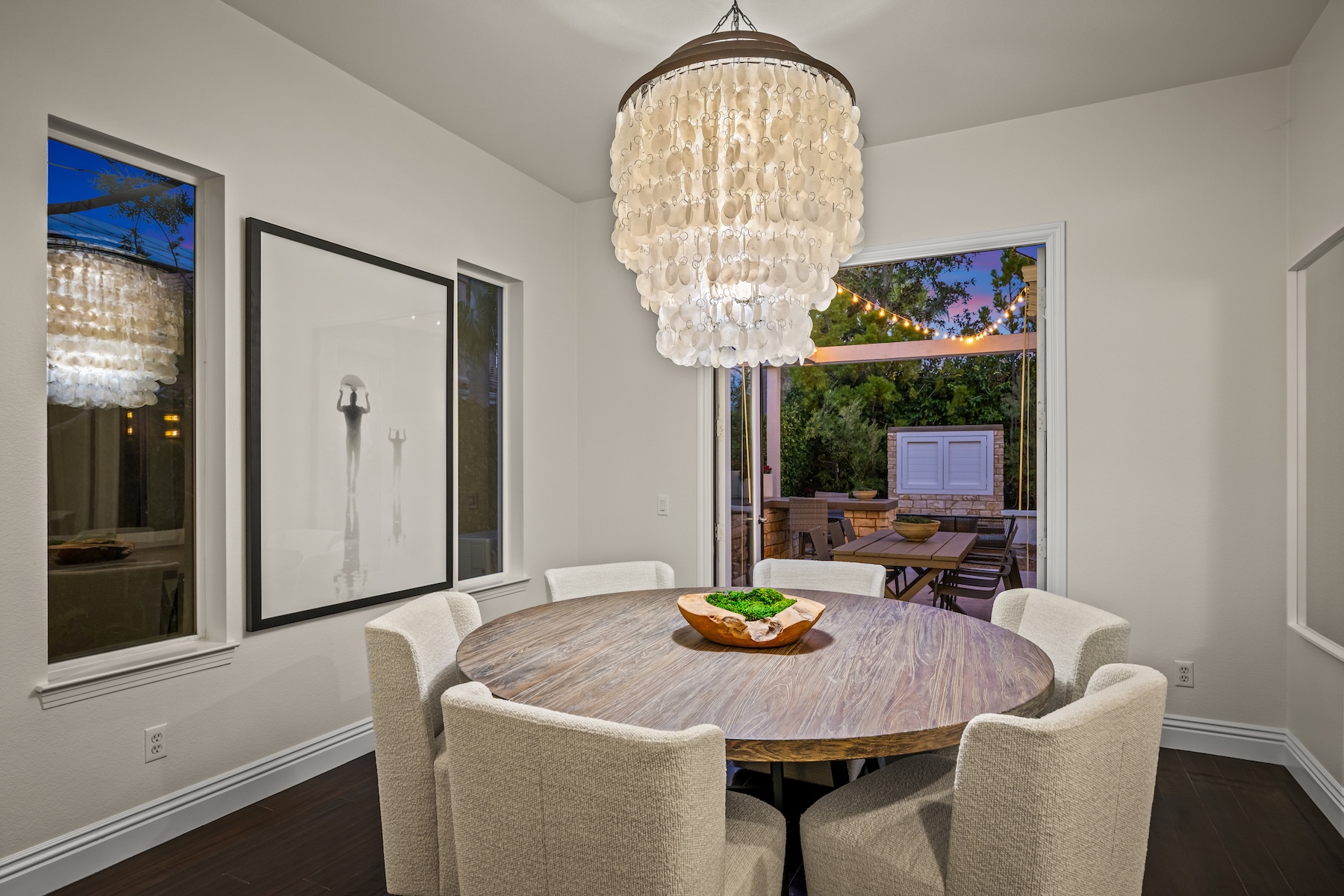 Discover this impeccably maintained La Costa Valley home, tucked away on a peaceful cul-de-sac. This move-in ready gem offers luxurious living and smart functionality, with thoughtfully designed spaces both indoors and out. The private backyard is a true oasis, featuring a large turf play area, a stunning stone patio with a built-in BBQ, outdoor TV, and a cozy gas fire pit—perfect for relaxing or entertaining. Inside, high ceilings and natural light create a welcoming ambiance. Elegant wood and glass built-ins add charm and practicality, while gleaming wood floors run throughout the downstairs. The spacious family room, with its newly remodeled fireplace and custom built-ins, connects seamlessly to the kitchen. A guest room and a versatile bonus room for use as a gym, playroom, 6th bedroom or second office complete the lower level. Upstairs, the highlight is the spacious primary suite—a true retreat. This luxurious space is complete with a beautiful sitting area and executive office adorned with custom built-ins. Three additional bedrooms and a practical desk nook offer flexibility for work, school, or hobbies. The neighborhood is second to none, offering access to the exclusive Valley Club, which boasts a Junior Olympic-sized pool & spa, tennis courts, and fitness center. Outdoor enthusiasts will love the nearby walking and biking trails, while families will appreciate the award-winning San Dieguito Union and Encinitas Union school districts. With low HOA fees and a location that combines comfort, convenience, and community, this La Costa Valley home truly stands out!