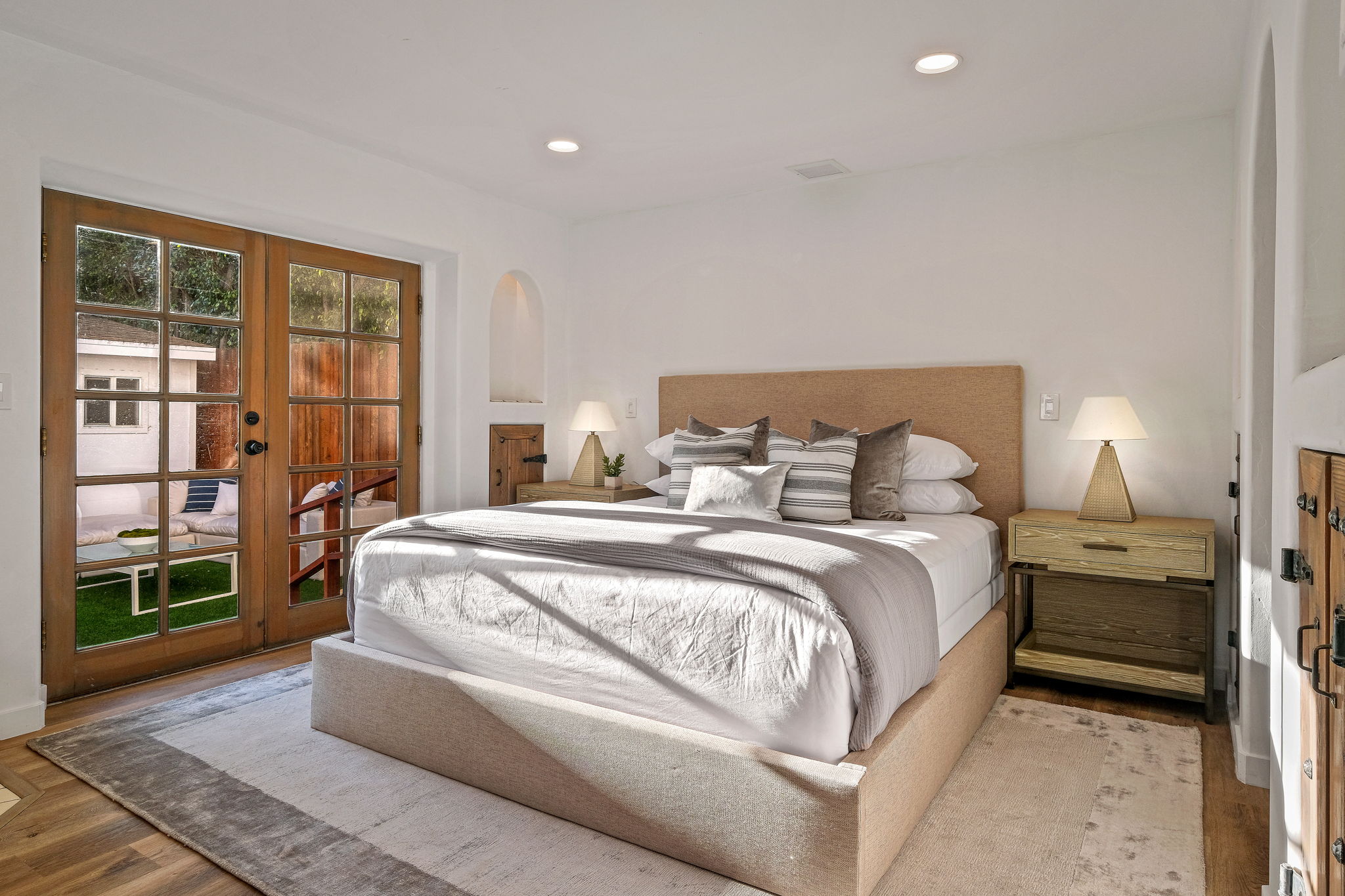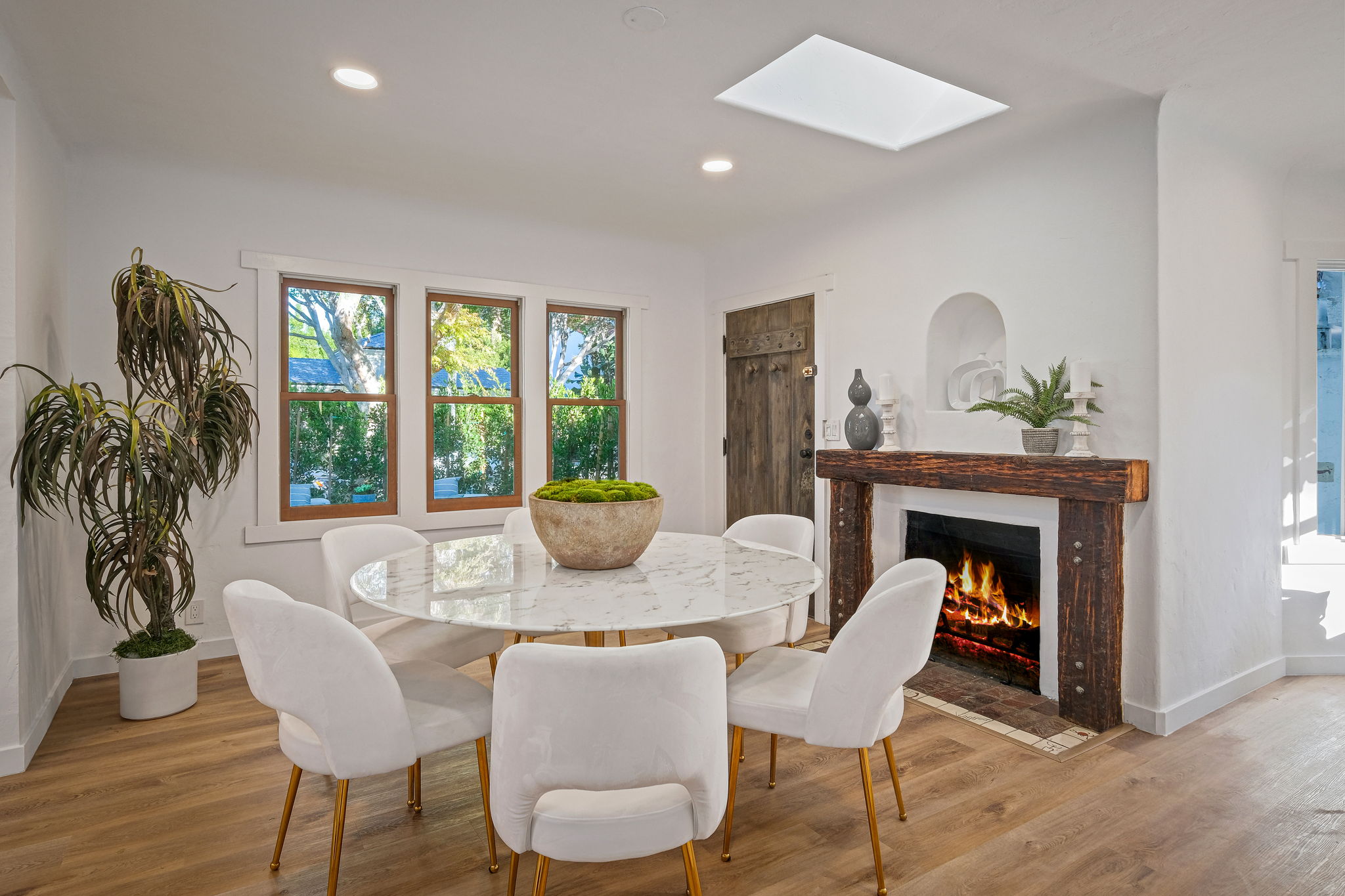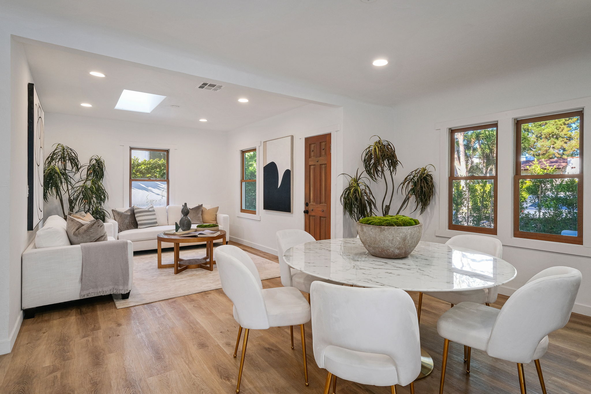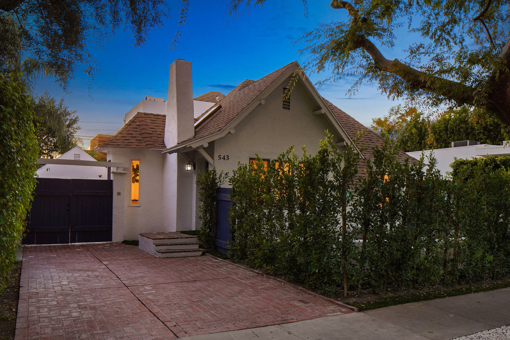 A charming and fully remodeled traditional compound with a separate guest house and separate home office/gym in the most exclusive and sought-after area of West Hollywood, just south of Melrose Ave. Enter past the grassy, privately-hedged front yard to the open living/dining rooms replete with a beautiful fireplace and wide plank hardwood floors. The updated kitchen features all new stainless steel appliances and a plethora of natural light. Four generously sized bedrooms, all with their own ensuite bathrooms and tons of closet space, complete the main house. An additional 305 sq. ft. guest house is located on the property replete with a mini-kitchenette and bathroom, perfect for a large family or additional rental income. A second separate structure measures at 192 sq. ft. and is perfect for a home office/gym. A large grassy backyard with an uncovered rear patio completes this unique retreat, just steps from the city’s most popular shops, restaurants, and nightlife including Craigs, Catch, Cecconi’s, and Urth Caffe.