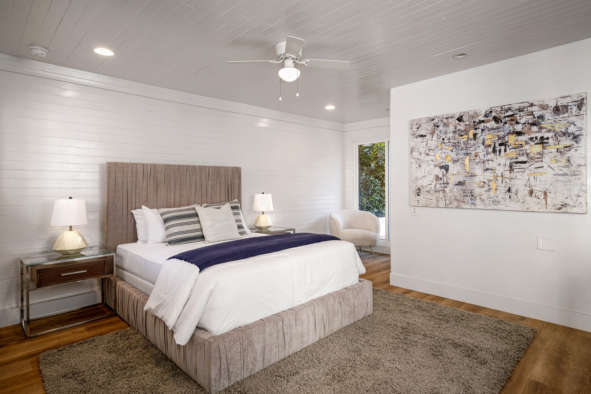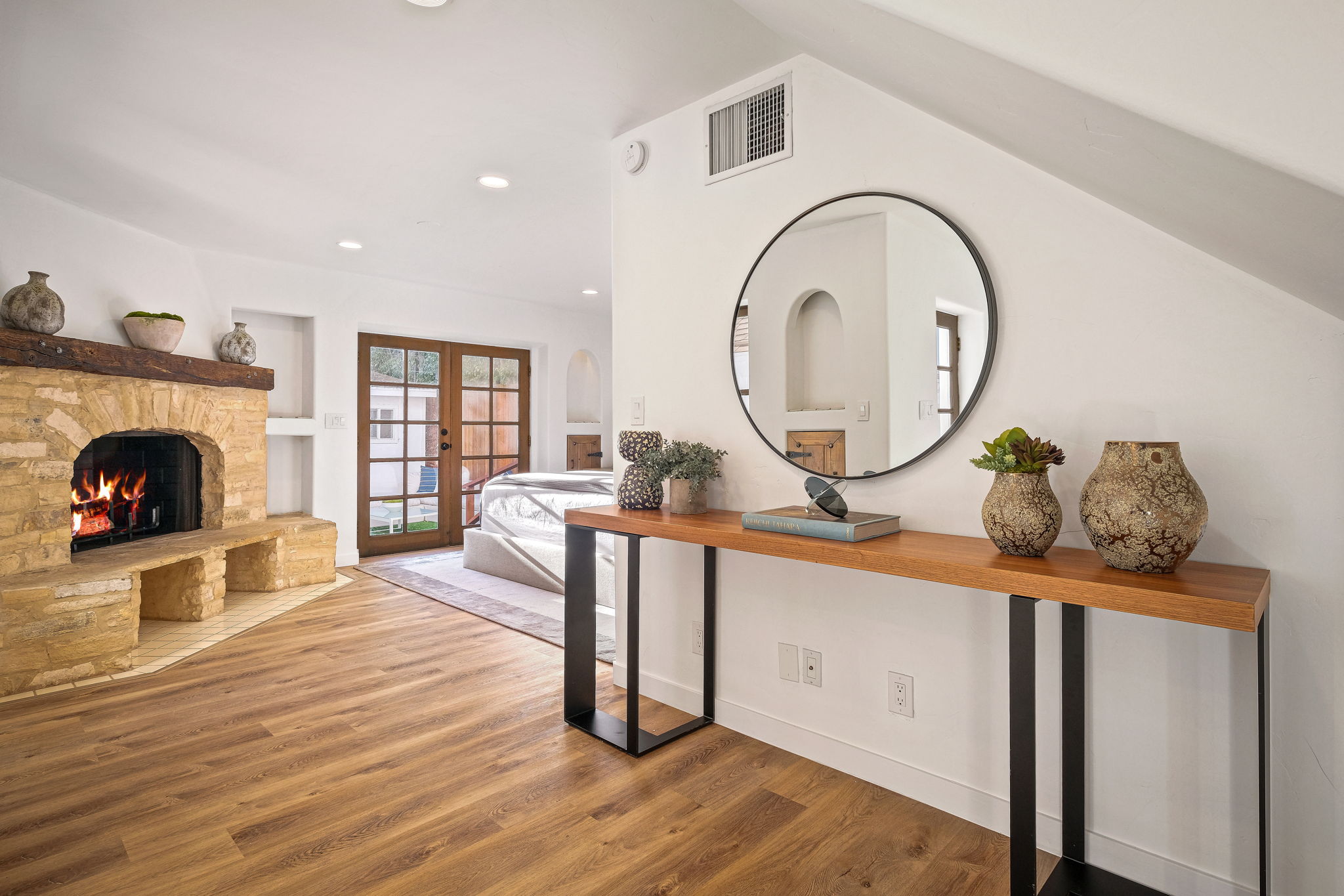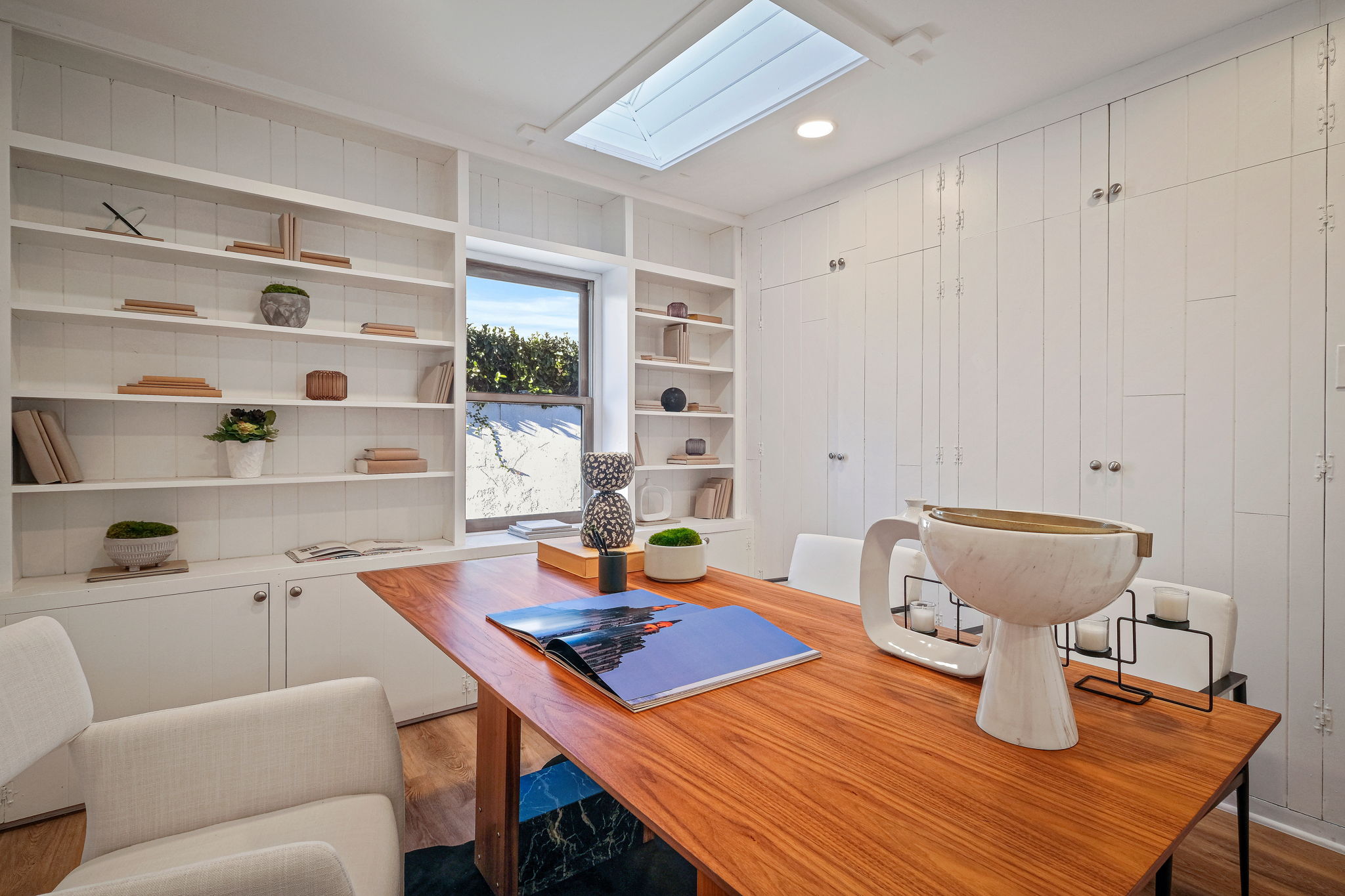 A charming and fully remodeled traditional compound with a separate guest house and separate home office/gym in the most exclusive and sought-after area of West Hollywood, just south of Melrose Ave. Enter past the grassy, privately-hedged front yard to the open living/dining rooms replete with a beautiful fireplace and wide plank hardwood floors. The updated kitchen features all new stainless steel appliances and a plethora of natural light. Four generously sized bedrooms, all with their own ensuite bathrooms and tons of closet space, complete the main house. An additional 305 sq. ft. guest house is located on the property replete with a mini-kitchenette and bathroom, perfect for a large family or additional rental income. A second separate structure measures at 192 sq. ft. and is perfect for a home office/gym. A large grassy backyard with an uncovered rear patio completes this unique retreat, just steps from the city’s most popular shops, restaurants, and nightlife including Craigs, Catch, Cecconi’s, and Urth Caffe.