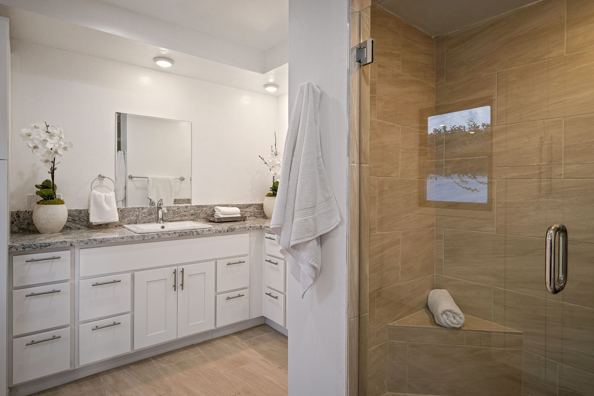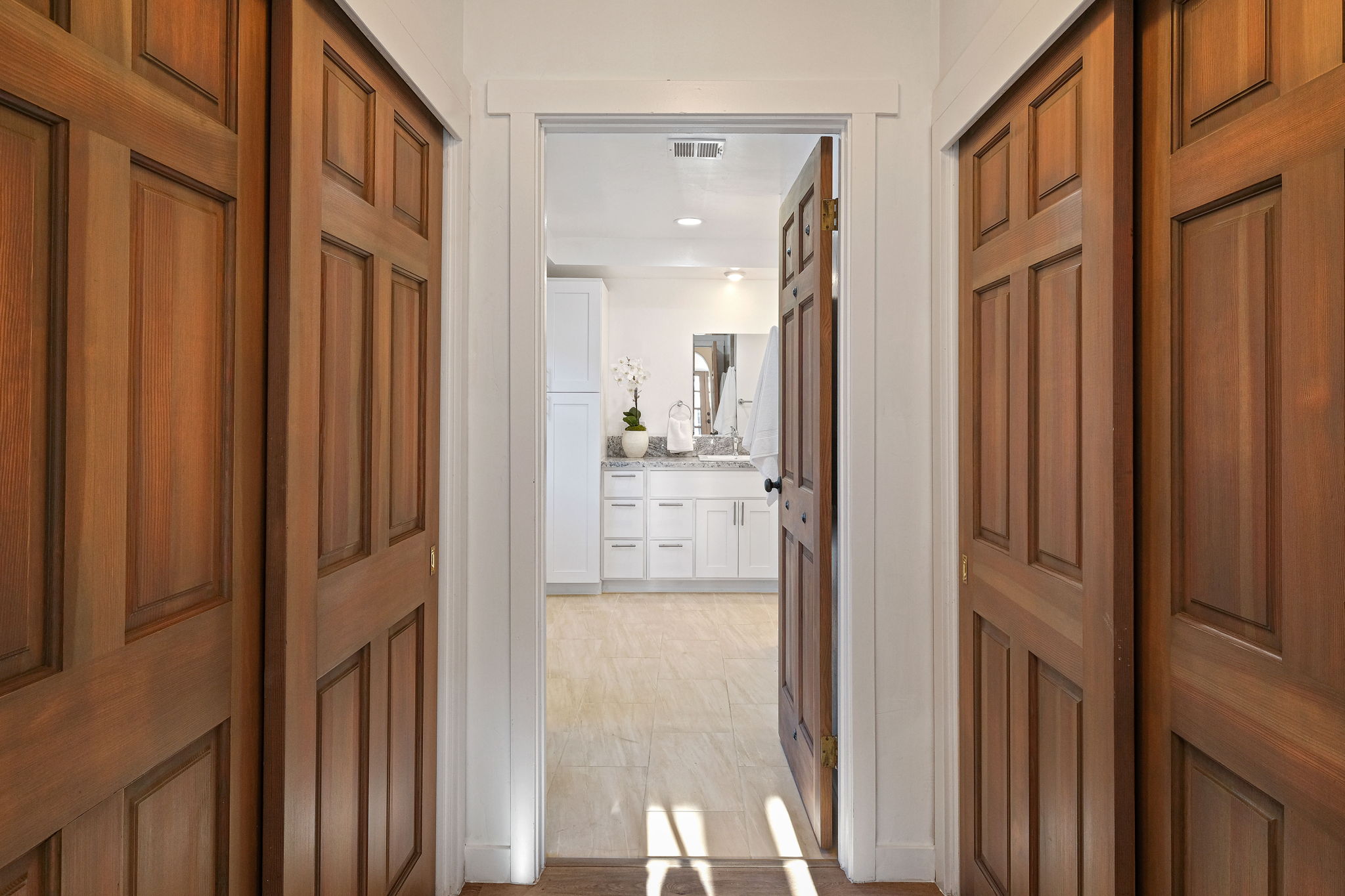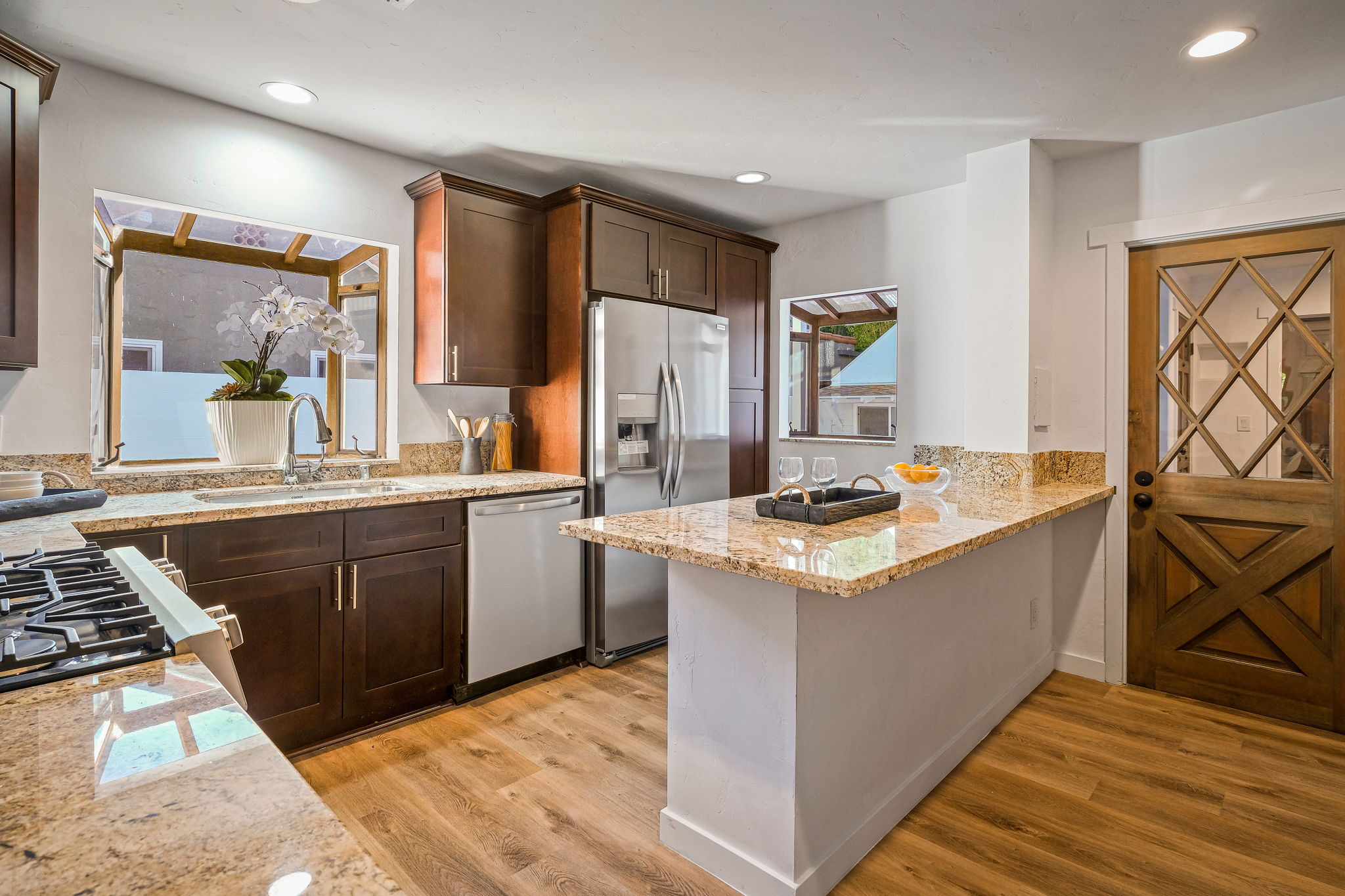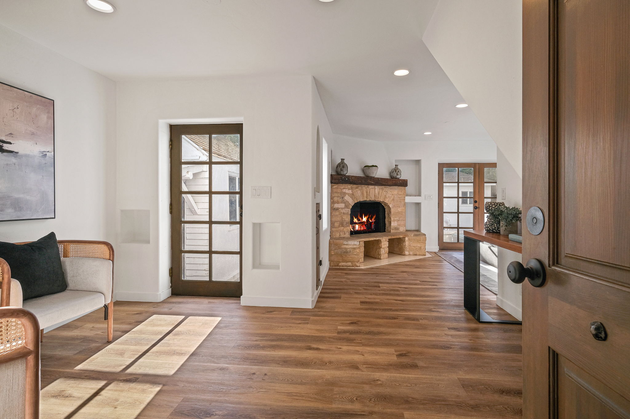 A charming and fully remodeled traditional compound with a separate guest house and separate home office/gym in the most exclusive and sought-after area of West Hollywood, just south of Melrose Ave. Enter past the grassy, privately-hedged front yard to the open living/dining rooms replete with a beautiful fireplace and wide plank hardwood floors. The updated kitchen features all new stainless steel appliances and a plethora of natural light. Four generously sized bedrooms, all with their own ensuite bathrooms and tons of closet space, complete the main house. An additional 305 sq. ft. guest house is located on the property replete with a mini-kitchenette and bathroom, perfect for a large family or additional rental income. A second separate structure measures at 192 sq. ft. and is perfect for a home office/gym. A large grassy backyard with an uncovered rear patio completes this unique retreat, just steps from the city’s most popular shops, restaurants, and nightlife including Craigs, Catch, Cecconi’s, and Urth Caffe.