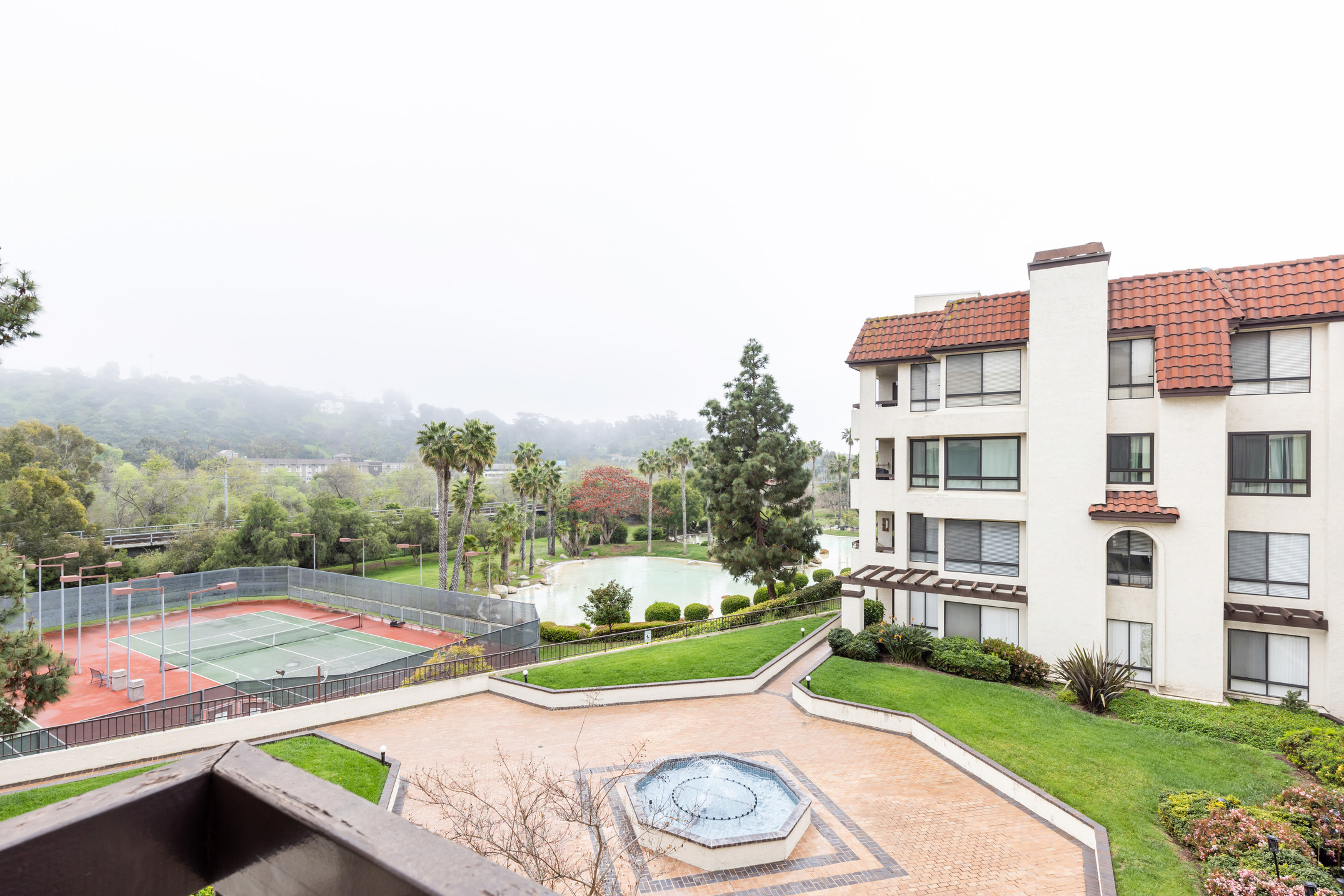 Welcome to Resort-Style Living at The Courtyards at Mission Valley! This third-floor 2, 2-bedroom / 2, 2-bathroom condo offers a spacious and inviting open-concept floor plan. Enjoy the warmth and charm of a cozy gas fireplace and take in stunning views of the meticulously maintained community grounds. Step out onto your private patio, where you can relax while overlooking the serene courtyard, all complemented by refreshing ocean breezes. Inside, you'll find generously-sized bedrooms and bathrooms, all freshly painted throughout. For added convenience, the unit is equipped with laundry hookups, and two designated parking spots are reserved in the secure subterranean garage. Enjoy peace of mind with 24-hour guard-gated security. The Courtyards offers exceptional amenities, including multiple pools, a spa, a sauna, a fully equipped gym, tennis courts, and a spacious dog park. The beautifully landscaped grounds feature tranquil ponds and calming water fountains, creating the perfect oasis to unwind. Located within walking distance to the Mission Valley YMCA, easy access to public transportation and freeways, and nearby USD, shopping, dining, and entertainment. This condo really has it all!