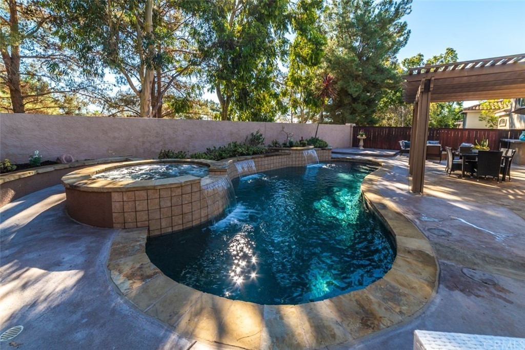 This entertainer’s two-story dream home on the perfect cul-de-sac location of Melinda Heights features an open concept first floor living/dining room area with beautiful natural light and high ceilings. The home was recently painted, brand new window coverings were installed, and travertine flooring, waterproof plank hardwood flooring, and epoxy flooring in the garage was added. The eat-in-kitchen has been completely upgraded with quartz countertops and the kitchen island was leveled and extended for ample seating. The kitchen cabinets were refinished with new paint and hardware - complete with farmer’s sink and a sparkling backsplash. On the second story, the home has 5 total bedrooms (4 bedrooms all with closets + 1 loft space), and two large bathrooms both with double sinks - one of which is the master bathroom suite, complete with a walk in closet and a large soaking tub! The best feature of the home is stepping outside to where your outdoor oasis and retreat awaits you, your family, and your guests. Imagine yourself entertaining on your oversized outdoor patio next to your pebble tec salt water pool and spa listening to the relaxing sound of the water spills. The patio also features a large wood pergola, an outdoor fire pit, and a built in BBQ island! Included in the HOA fees, you will have access to all the RSM community amenities such as the beach club, pools, tennis courts, etc. Most importantly, all Rancho Santa Margarita Schools in the Saddleback Valley School District are well known to be the best there is. This particular area is zoned for the award winning blue ribbon Melinda Heights Elementary school. Prime location and close proximity to toll roads, shopping, restaurants, parks, hiking and biking trails, schools, Lake Mission Viejo and so much more. You won’t want to wait – this home has it all!