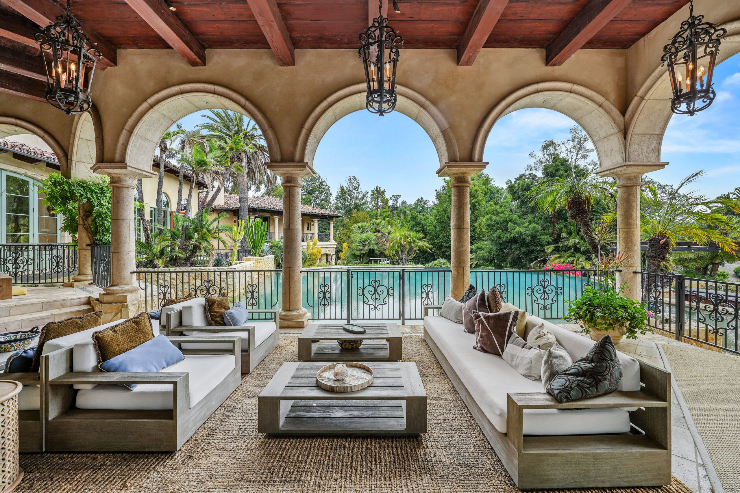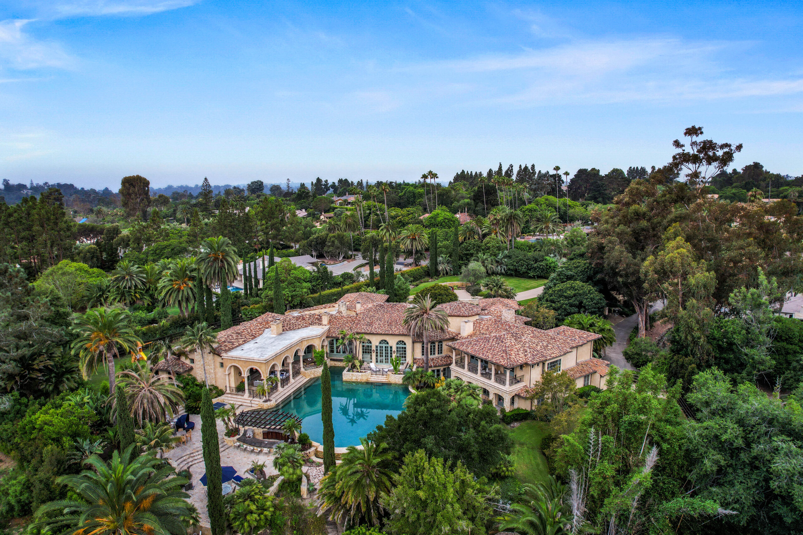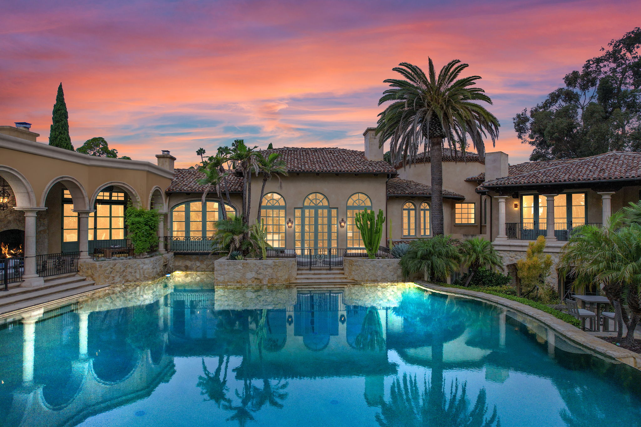 Indulge in the unparalleled luxury of this lush 2.1-acre oasis in the prime location of the prestigious Rancho Santa Fe Covenant. This glamorous estate marries impeccable architecture, masterful craftsmanship, and timeless sophistication to create an enchanting sanctuary beyond compare. Upon entering the lavishly landscaped courtyard, an expanse of colorful rose gardens, cascading greenery and the sweet scent of citrus blossoms welcome you. The grandeur of the residence, with its spacious design, seamlessly intertwines a timeless, traditional floor plan with modern influences. Rooms effortlessly flow, converging indoor and outdoor living, inviting you to the sheltered loggias and the captivating zero-edge pool adorned with stone detailing, waterfalls, and a swim-up bar. Elegance abounds in the formal spaces of living and dining rooms, each featuring majestic stone fireplaces. This meticulously detailed haven offers 5 generous bedrooms, 7 full and 4 half baths. The detached library just a few steps from the main house boasts 360-degree wood shelves, wood floors and is easily convertible to a 2-bed in-law suite. Thoughtful details include reclaimed wood beams, vintage flooring, antique heated tiles, travertine and granite slabs, and artisan stone work. Custom furniture-grade cabinetry, hand-wrought iron fixtures, and stone fireplaces further enhance the opulent tapestry. The chef's kitchen features Thermador Pro appliances, dual warmers and ovens, Sub Zero fridge, fridge drawers, and a cozy breakfast room. A family room with a full bar connects seamlessly to an alfresco lounge via vanishing wood and glass doors, complemented by a fireplace and Lutron lighting. The master suite offers separate luxurious baths, custom dressing rooms with built-in mini fridges, and a private covered veranda. Additional features include a second family room with wet bar, an office, second laundry room, wine storage, gym, and a state-of-the-art movie theater. Outdoors, enjoy verandas, a wood-fired pizza oven, full kitchen, fire pit, and Sonos speakers throughout for a resort-style experience.