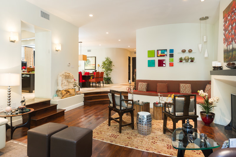 An immaculate Spanish-contemporary set behind lush hedges and a private driveway, with every convenience just minutes away. Meticulously crafted, this home boasts soaring ceilings, a grand staircase, bar area, large formal-dining area, and a step-down-living room that leads outside to a limestone patio, veranda and fire pit. Dark wood beams accentuate the second story ceiling, a fabulous focal point surrounded by 4 upstairs bedrooms, 3 bathrooms, and multiple balconies. A superb home on a tranquil street just minutes away from The Grove, Beverly Center, Beverly Hills, West Hollywood, Melrose shopping and restaurants.