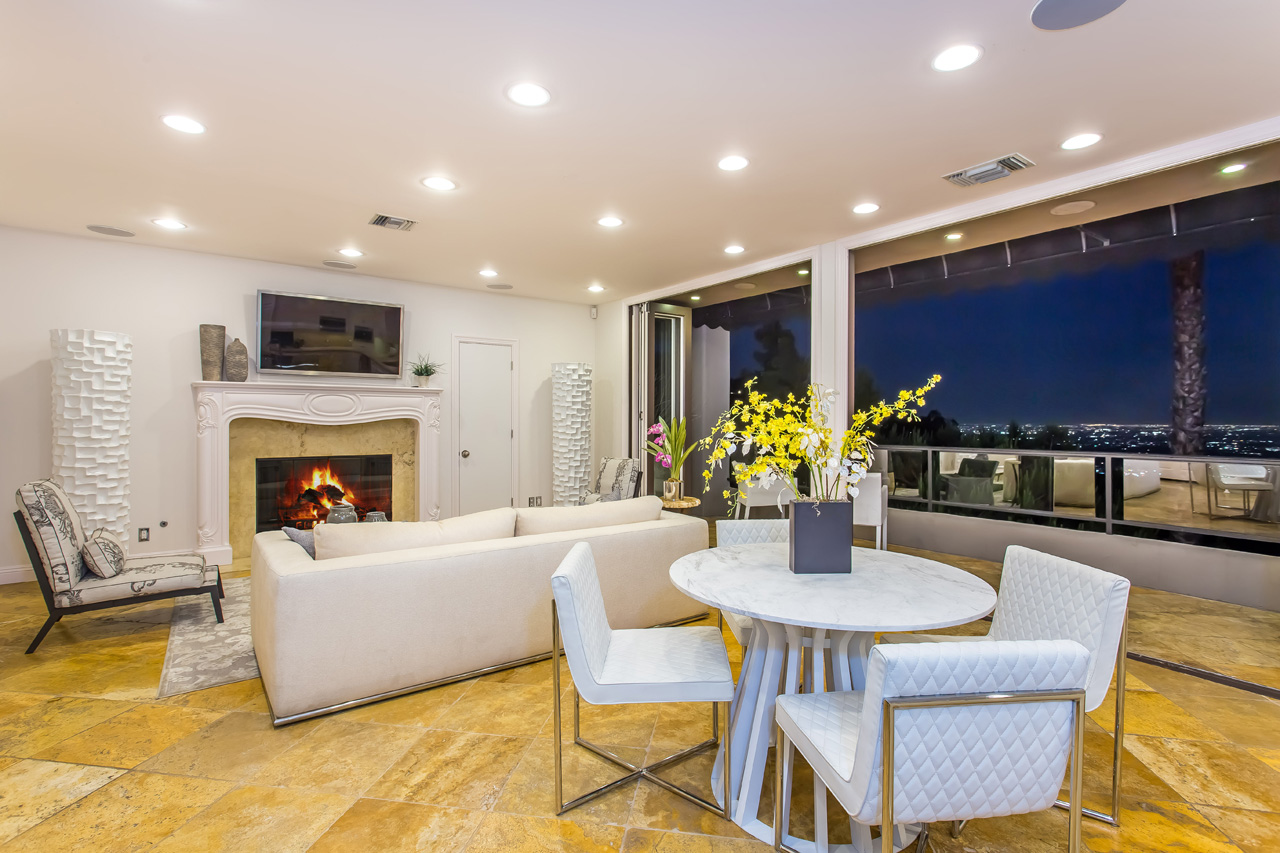 Behind private gates, this spectacular estate boasts breathtaking city views and a thoughtful floor plan allowing for plentiful natural light. Luxuriantly appointed kitchen boasts top of the line appliances, and an enormous master bedroom offers a fireplace (one of four in the house) and double vanity bathroom with bathtub and a large walk-in closet. Four additional en-suite bedrooms are equipped with walk-in closets, bathtubs, and amazing views, and a well-equipped sixth bedroom has a private entrance. A fabulous mid-level entertaining area includes a media room, full bar and kitchen and a salt water pool and spa has a dramatic waterfall feature cascading from the house and is adjacent to a fully equipped outdoor kitchen and bar. Elevator, wellness center with gym, sauna and steam shower equipped with guest lockers, a robust home security and video system, and 6-car parking completes this spectacular estate. Owner purchased the house in 2005 for $3,800,000 and has since upgraded it.