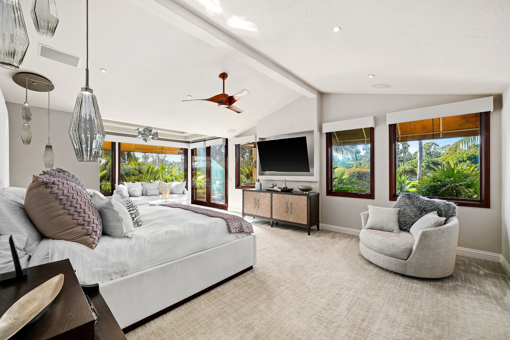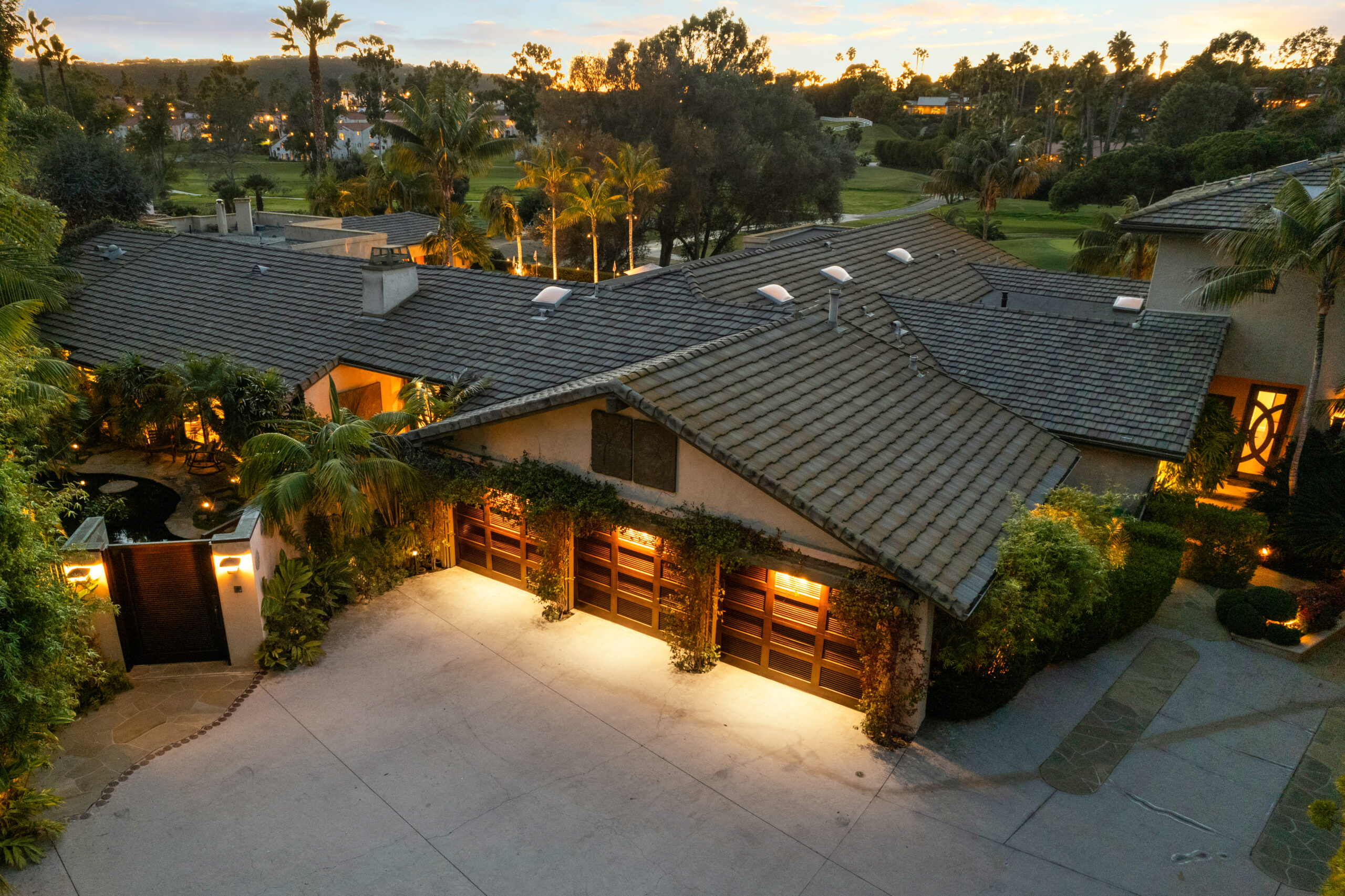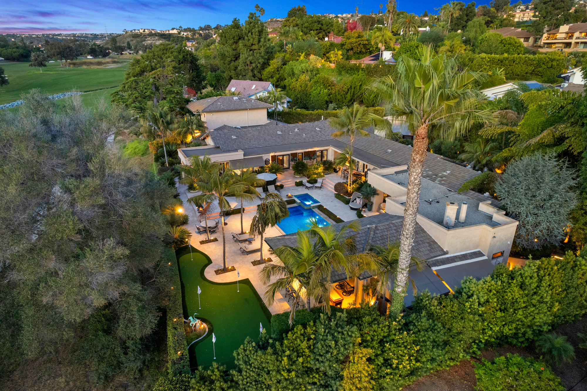 As you enter this grand estate beyond a long, private driveway, you are enveloped in unparalleled luxury within the residence, gracefully situated along the 14th fairway of the La Costa Golf Course, recently revitalized by acclaimed golf-course architect Gil Hanse. After crossing a bridge above a beautiful koi pond leading to a grand doorway, a tranquil ambiance envelops you, marked by a magnificent water wall that establishes Feng Shui harmony. This residence, which boasts panoramic views of the esteemed golf course, seamlessly integrates indoor and outdoor living, with each room effortlessly connecting to the expansive yard. The gourmet kitchen is a culinary sanctuary equipped with state-of-the-art Gaggenau appliances including a steamer/wok, double oven, and multiple dishwashers for unparalleled convenience. Enjoy dynamic gatherings in the Teppanyaki room, featuring a professional cooktop and custom copper hood that transforms into a poker table and cigar lounge. A smart home system allows for effortless control of lighting, sound, and a nine-foot drop-down theater screen in the living room. Additional features include an outdoor humidor, wine bar, wood-fired pizza oven, and a fully lit outdoor bar with heated countertops. Entertainment reaches new heights with a private putting green and a newly tiled pool/spa accompanied by a water wall featuring a fire element. The outdoor area extends to a covered full catering Viking kitchen equipped with a large BBQ, smoker oven, refrigerator, dishwasher, and warming drawers. The ultimate primary suite features a seating area, a private patio, and a luxurious walk-through shower. The primary suite patio overlooks the 14th fairway, making it a perfect vantage point for golf tournaments. For golf enthusiasts, the property offers private automatic gates for golf cart access directly onto the green, providing a rare and exclusive experience. Ample parking for 10+ cars on a long driveway and additional three car garage. Revel in a lifestyle seldom captured, tailored for connoisseurs who appreciate the enchantment of grand entertaining and the allure of intimate gatherings in a meticulously crafted oasis.
