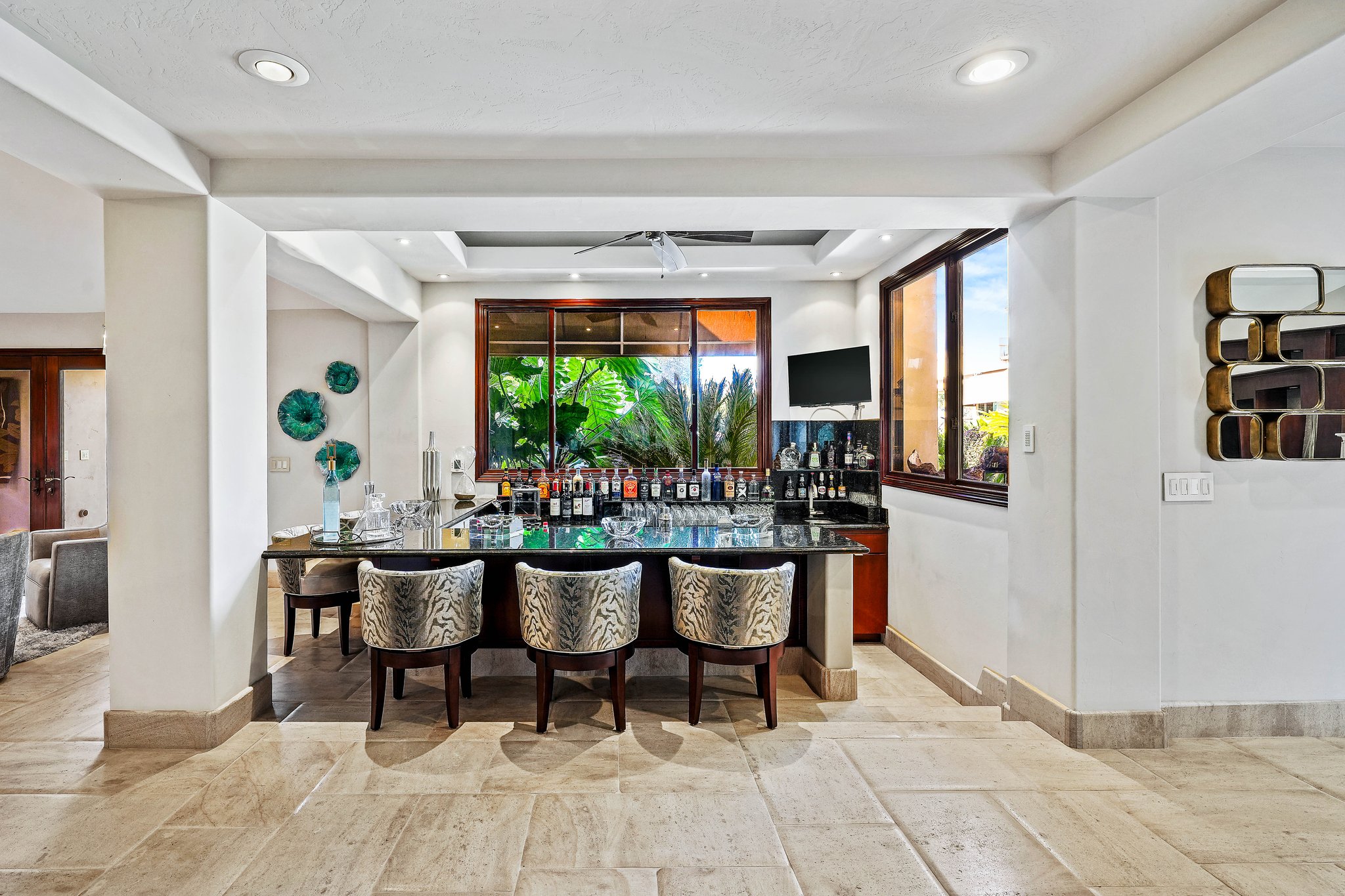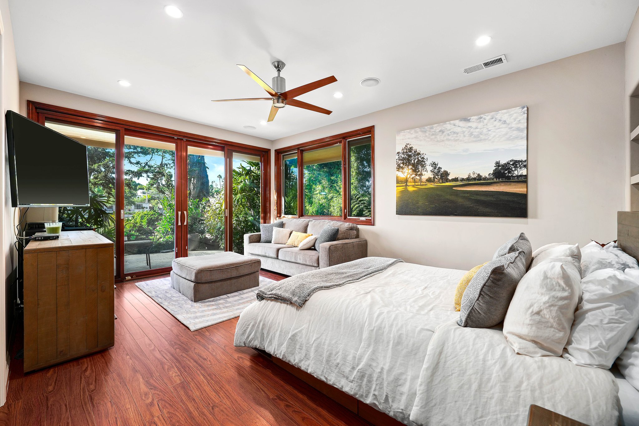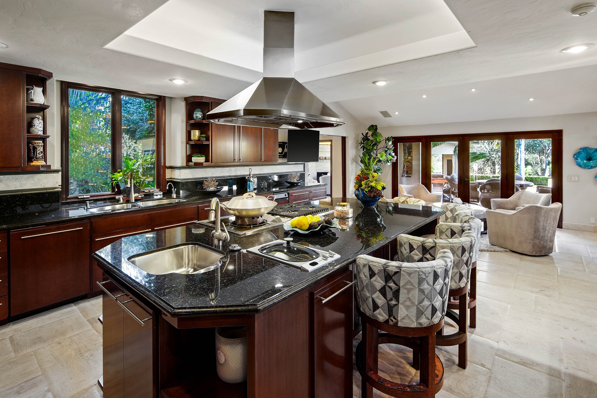 As you enter this grand estate beyond a long, private driveway, you are enveloped in unparalleled luxury within the residence, gracefully situated along the 14th fairway of the La Costa Golf Course, recently revitalized by acclaimed golf-course architect Gil Hanse. After crossing a bridge above a beautiful koi pond leading to a grand doorway, a tranquil ambiance envelops you, marked by a magnificent water wall that establishes Feng Shui harmony. This residence, which boasts panoramic views of the esteemed golf course, seamlessly integrates indoor and outdoor living, with each room effortlessly connecting to the expansive yard. The gourmet kitchen is a culinary sanctuary equipped with state-of-the-art Gaggenau appliances including a steamer/wok, double oven, and multiple dishwashers for unparalleled convenience. Enjoy dynamic gatherings in the Teppanyaki room, featuring a professional cooktop and custom copper hood that transforms into a poker table and cigar lounge. A smart home system allows for effortless control of lighting, sound, and a nine-foot drop-down theater screen in the living room. Additional features include an outdoor humidor, wine bar, wood-fired pizza oven, and a fully lit outdoor bar with heated countertops. Entertainment reaches new heights with a private putting green and a newly tiled pool/spa accompanied by a water wall featuring a fire element. The outdoor area extends to a covered full catering Viking kitchen equipped with a large BBQ, smoker oven, refrigerator, dishwasher, and warming drawers. The ultimate primary suite features a seating area, a private patio, and a luxurious walk-through shower. The primary suite patio overlooks the 14th fairway, making it a perfect vantage point for golf tournaments. For golf enthusiasts, the property offers private automatic gates for golf cart access directly onto the green, providing a rare and exclusive experience. Ample parking for 10+ cars on a long driveway and additional three car garage. Revel in a lifestyle seldom captured, tailored for connoisseurs who appreciate the enchantment of grand entertaining and the allure of intimate gatherings in a meticulously crafted oasis.