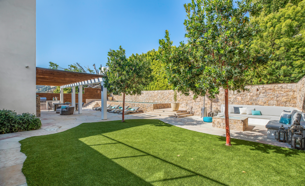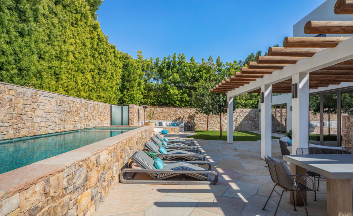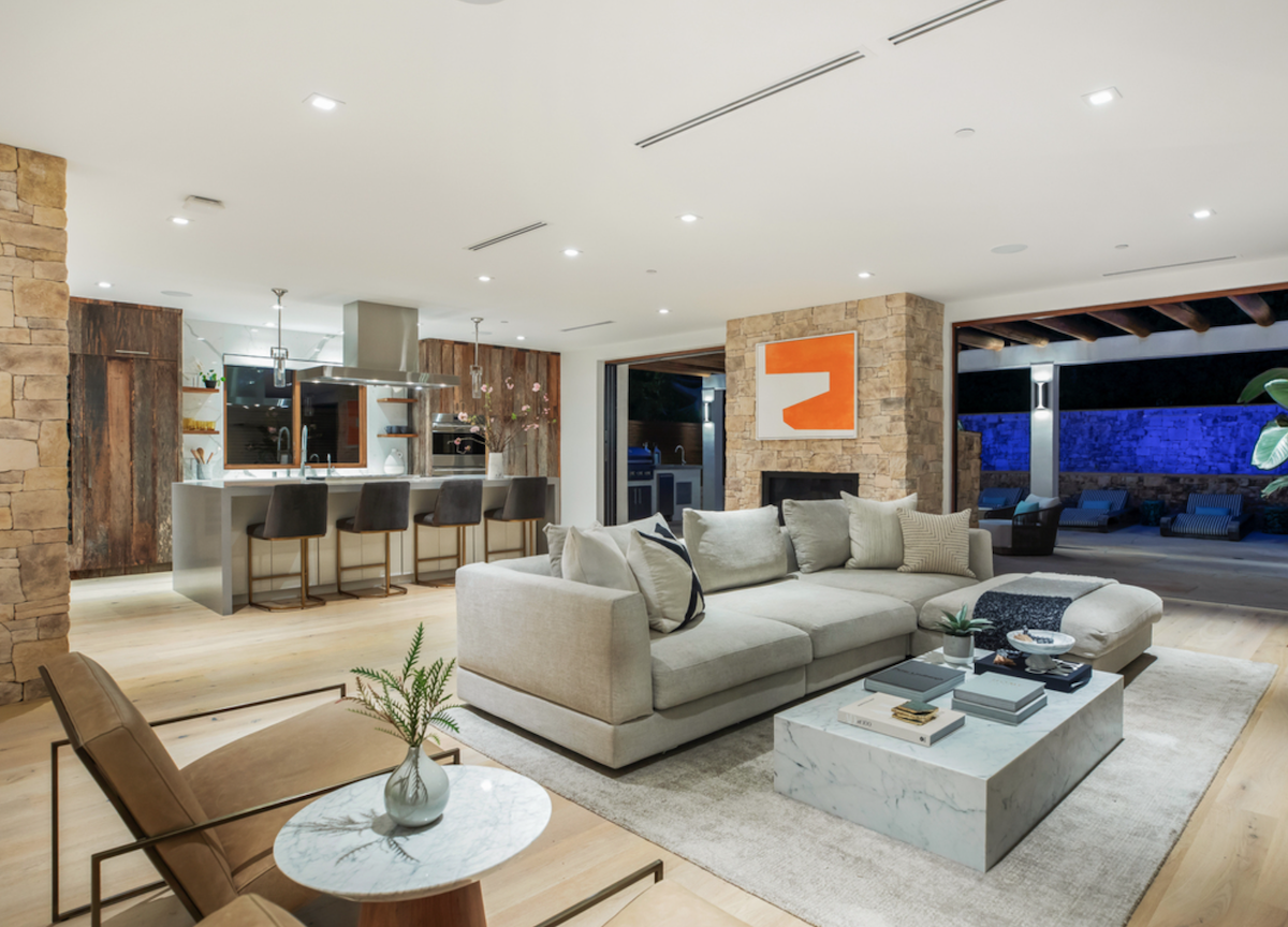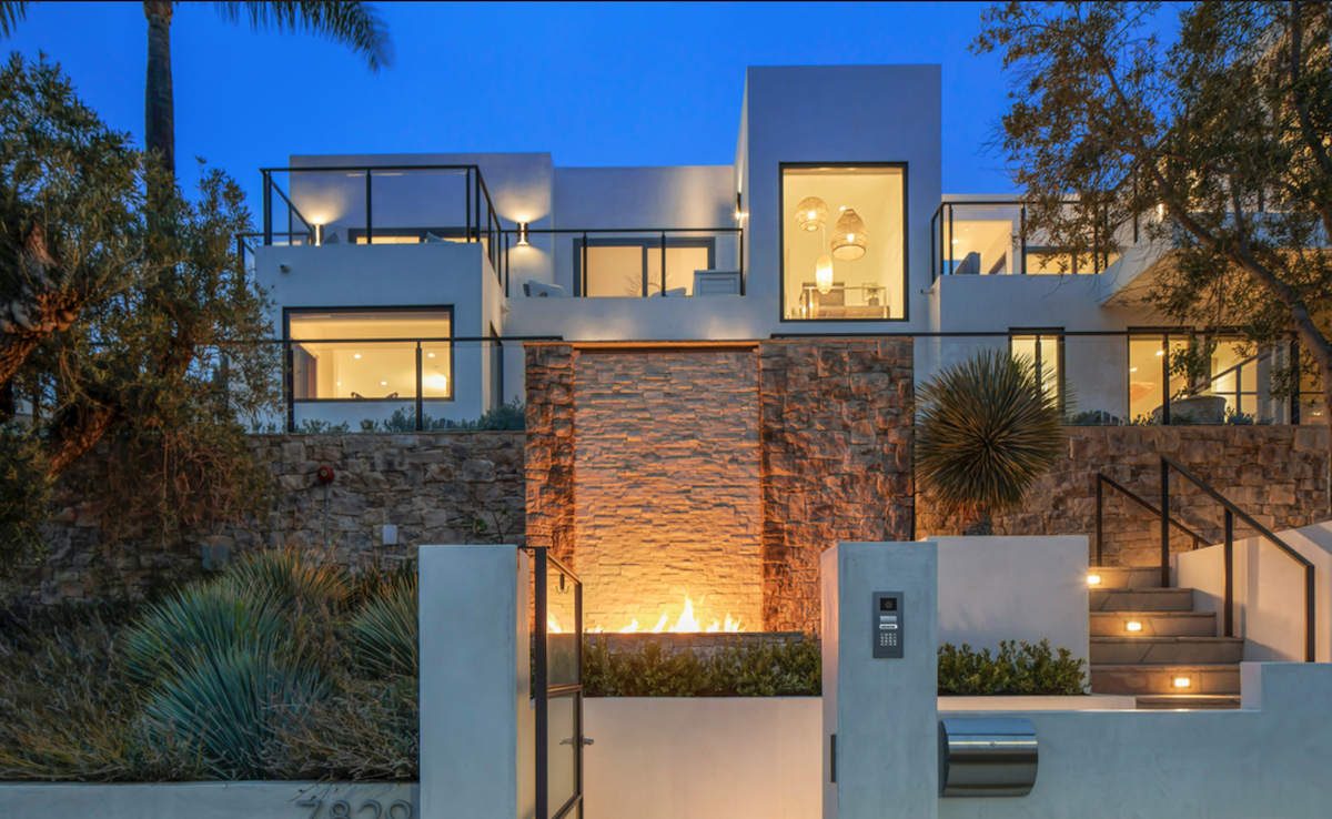 Ideally located in coveted Mount Olympus, this soft contemporary view home is designed with great attention to detail. Recently remodeled from the studs up, this gated and secure home features 4 bedrooms and 4 bathrooms + an expansive home gym and state-of-the-art theater. Numerous designer fixtures and finishes throughout, including European white oak floors, 100-year-old reclaimed Brazilian teak cabinetry, Ann Sacks tile, and custom window treatments. A top-of-the-line chef's kitchen complete with Sub Zero & Wolf appliances is situated between a dining area and large living area on the main floor, all of which open to resort-like outdoor dining and lounging, complete with a generous turf yard, pool & spa with LED lighting and waterfall, built-in seating area with fire pit, fireplace and a new custom built-in BBQ area. Carefully considered details continue to 2 master bedrooms with outdoor decks and spa-like en suite baths. 2 additional guest bedrooms and bathrooms complete the home. Nearly every indoor space flows effortlessly to the outdoors with city and ocean views from both master suites and kitchen & dining spaces. Boasting an elevator, 4-car garage with epoxy floor, accent lighting & marble feature wall, total privacy, and central location to all the shopping, dining, & nightlife that the Sunset Strip has to offer, this home is not to be missed!