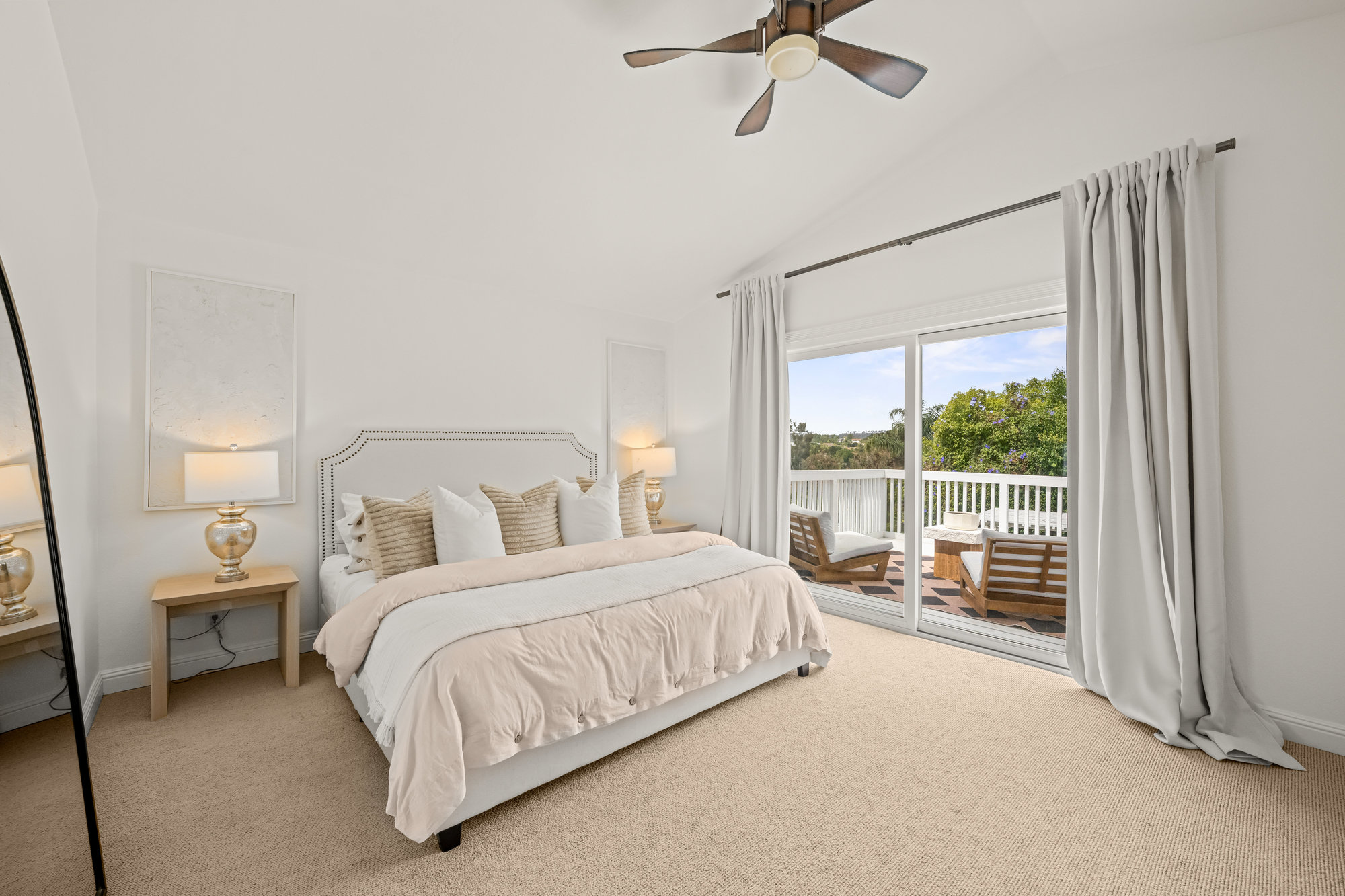Discover the perfect blend of comfort, style, & convenience in this impeccably maintained 3-bedroom, 2.5-bathroom home at 7911 Calle Posada. Nestled in Carlsbad, one of Southern California's most desirable communities, this residence welcomes you with warmth & charm from the moment you arrive. Step onto the inviting front porch deck, framed by a mature rose garden, & into a home thoughtfully designed for modern living. At its heart, the welcoming family room, complete with a cozy fireplace, offers the perfect space to gather & unwind. The bright kitchen, featuring a breakfast bar for casual meals, opens to a versatile flex space—ideal for a home office, lounge, or play area. A dedicated dining area sets the stage for memorable gatherings. The spacious primary suite is a true retreat, offering an oversized private balcony with breathtaking sunset views. Whether you’re starting your day with coffee or unwinding in the evening, this serene spot is sure to delight. Outside, your paradise awaits. The backyard is perfect for entertaining, with an alfresco dining area, mature fruit trees, lush landscaping, and raised garden beds for the home gardener. Solar panels enhance energy efficiency, while the 2-car garage provides ample parking. Location is everything, & this home delivers. You’re just a short walk from top-rated schools, with a community pool just around the corner. Plus, enjoy easy access to shopping, dining, freeways, & Southern California’s iconic beaches. Don’t miss the chance to make this exceptional property your own and enjoy the best of Carlsbad living.