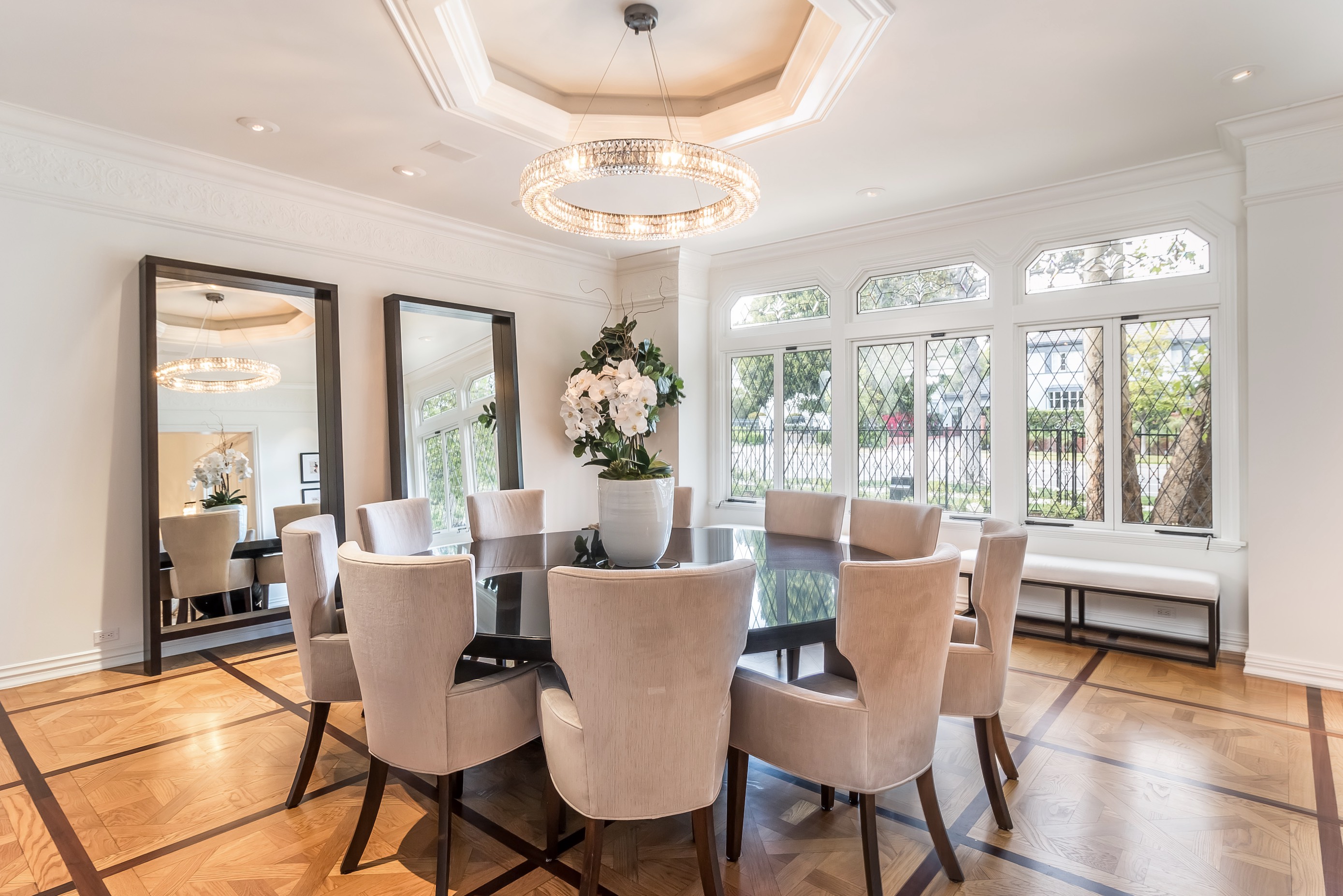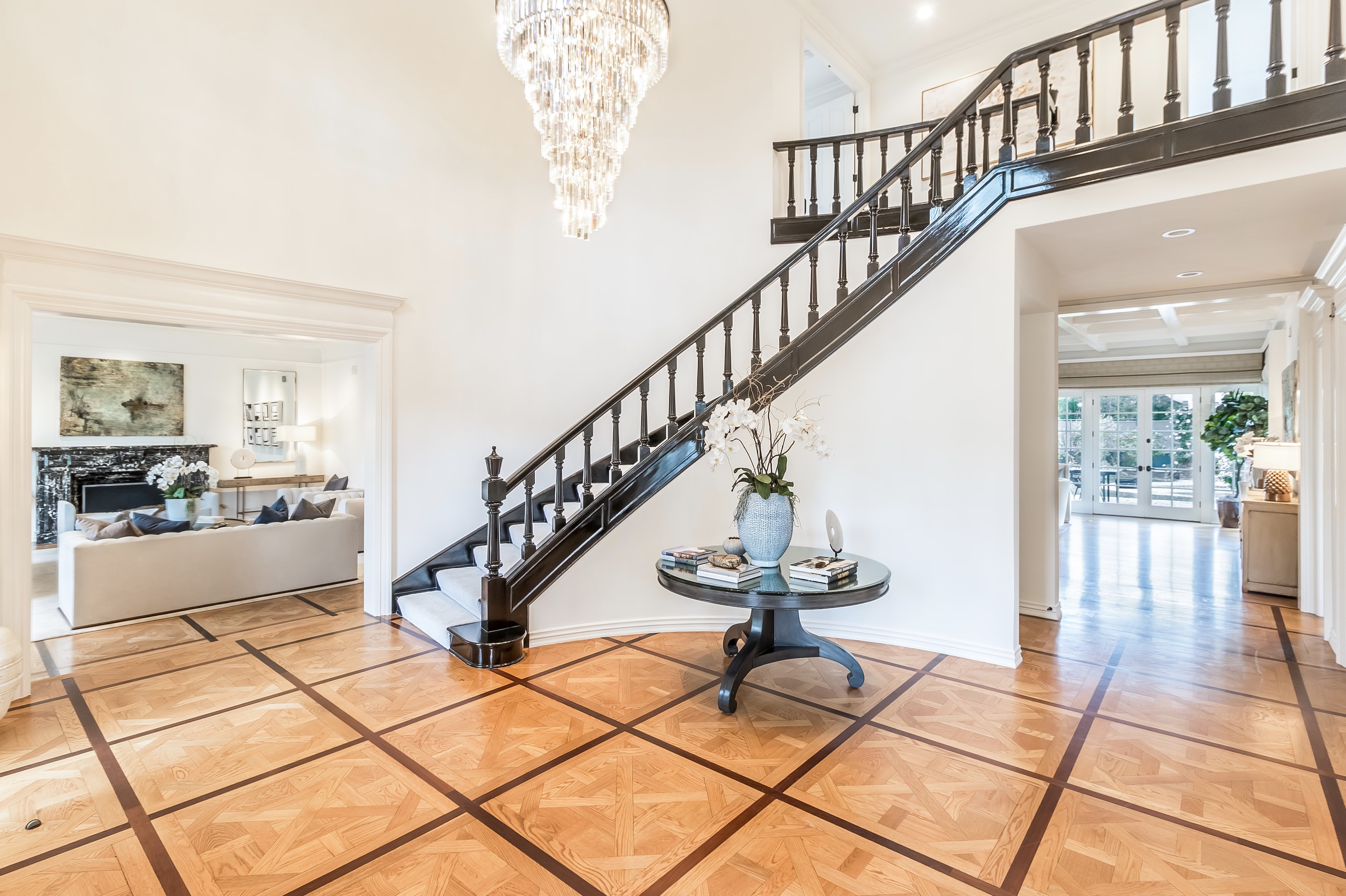 This beautifully renovated tennis-court estate is situated on a 30,000 square foot lot with 130 feet of frontage. Located on the prestigious 800 block of Crescent Dr. near to the world-renowned Beverly Hills Hotel, it is one of the grandest properties to come to market in the Beverly Hills flats in many years. The estate offers high ceilings throughout, 4 large en-suite bedrooms upstairs with 2 additional bedrooms downstairs, 8 bathrooms, a contemporary floor plan featuring an oversized master suite with wood burning fireplace, intricate parquet oak flooring, full bar, custom cabinetry, Sub Zero and Wolf appliances, dry sauna, a 3 car side by side attached garage, gated entrance, and mature landscaping providing full privacy for the spacious yard.
