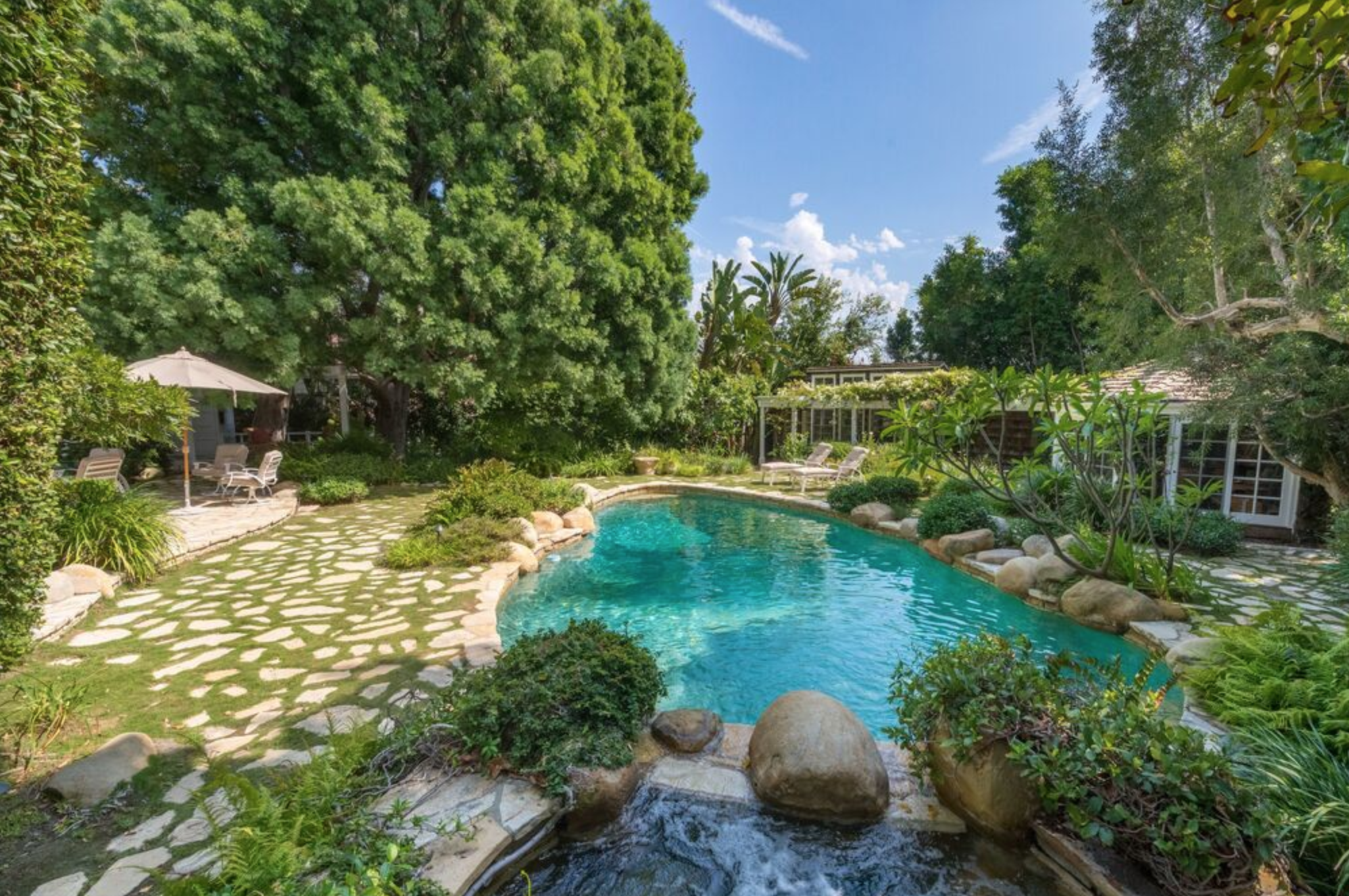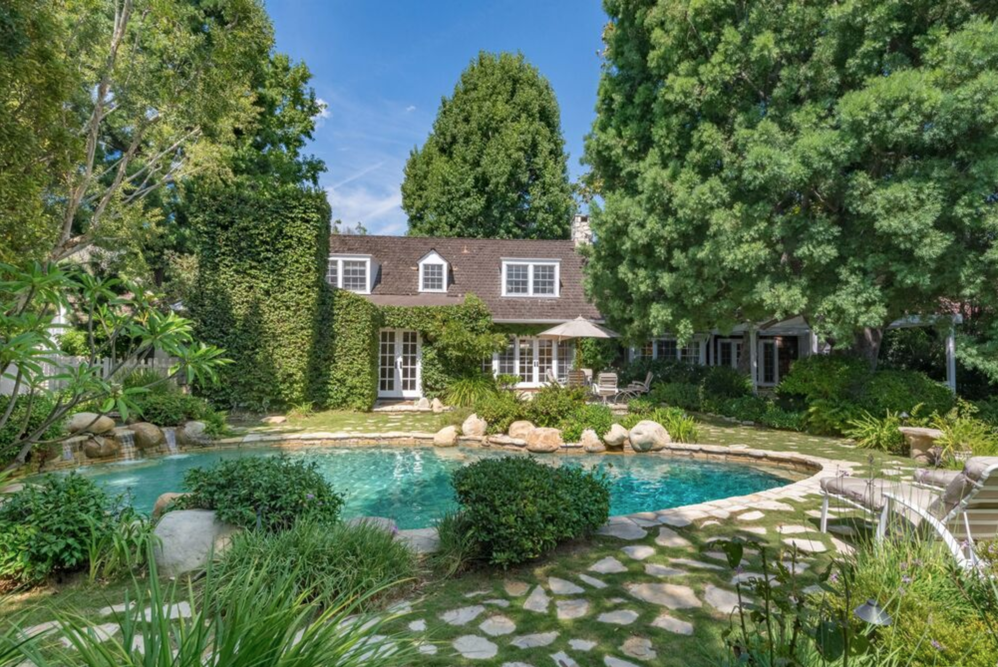 Set on over a half-acre lot in prime Beverly Hills flats minutes from Rodeo Drive & world class dining & entertainment. This charming family home was built by Mark Rios in 1952 & is an exceptional example of Colcord design. Upon entering, it's clear that this home was built & designed to the highest level of style & luxury of its time. Enter through private & gated driveway to semi-circular motor court & picturesque grounds, which are entirely surrounded by mature landscaping for privacy. Inside find a cozy living room w/bar & fireplace; den w/fireplace & rows of French doors opening to the serene back yard that includes pool, hot tub w/waterfall creating a Zen-like garden sanctuary. Large master suite includes 2 en-suite baths both w/own master closets & lounge area w/fireplace. Additional guest suites on 2nd level. Detached guesthouse includes large gym, office & meditation room.