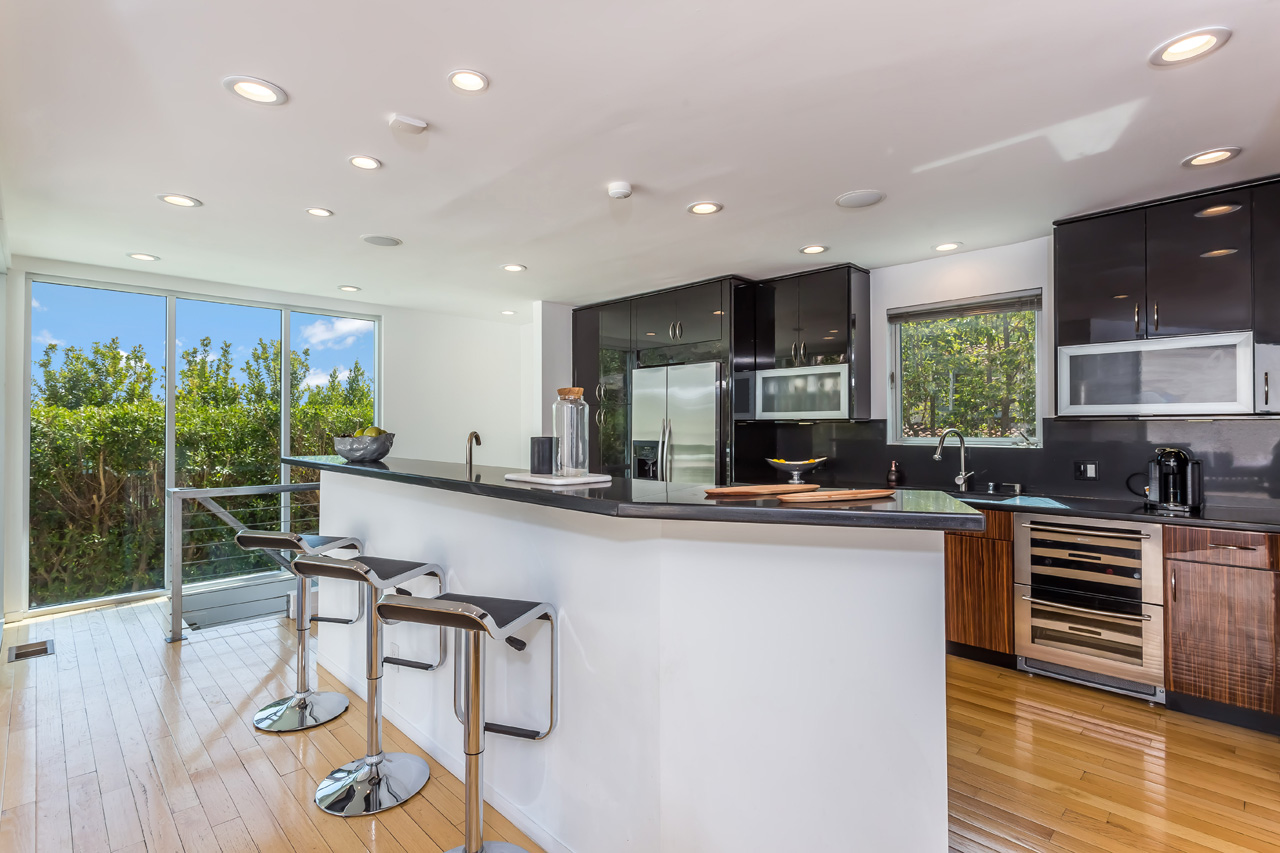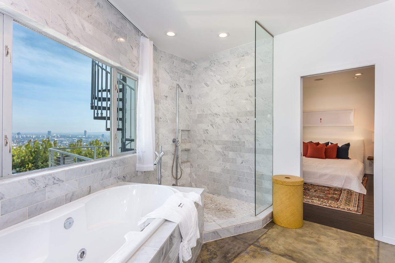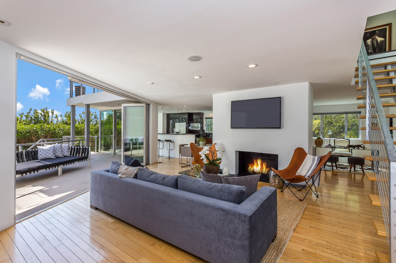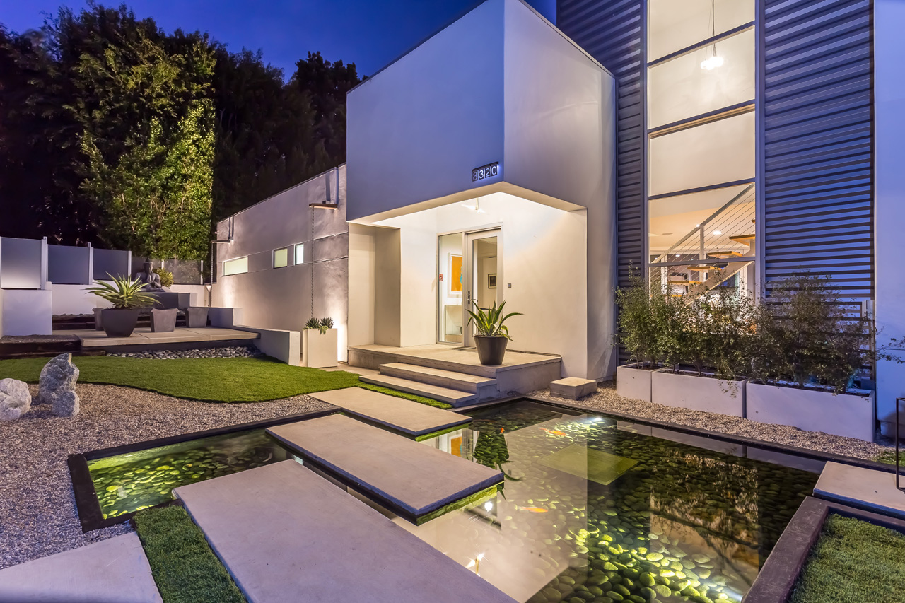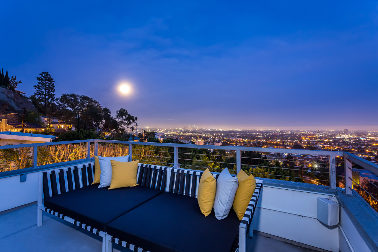 Located just above the iconic Sunset Strip and Chateau Marmont, this entertainer’s dream features an open floor plan with large terraces and dramatic city views. Privately gated, a Zen garden with reflection pool and floating steps accentuate the home's entrance. An open and bright living area leads to a gourmet kitchen and office, with a full span of glass doors opening to the main level deck. Outdoor living includes terraces replete with expansive pocketing doors off all major rooms, separate patio with fireplace, cook’s BBQ, bar, spa, and a large rooftop deck. A spacious and private upstairs master suite has a separate sitting/living area, luxurious master bath featuring marble tub and shower, an enormous walk-in closet and private balcony. Attached two-car garage.