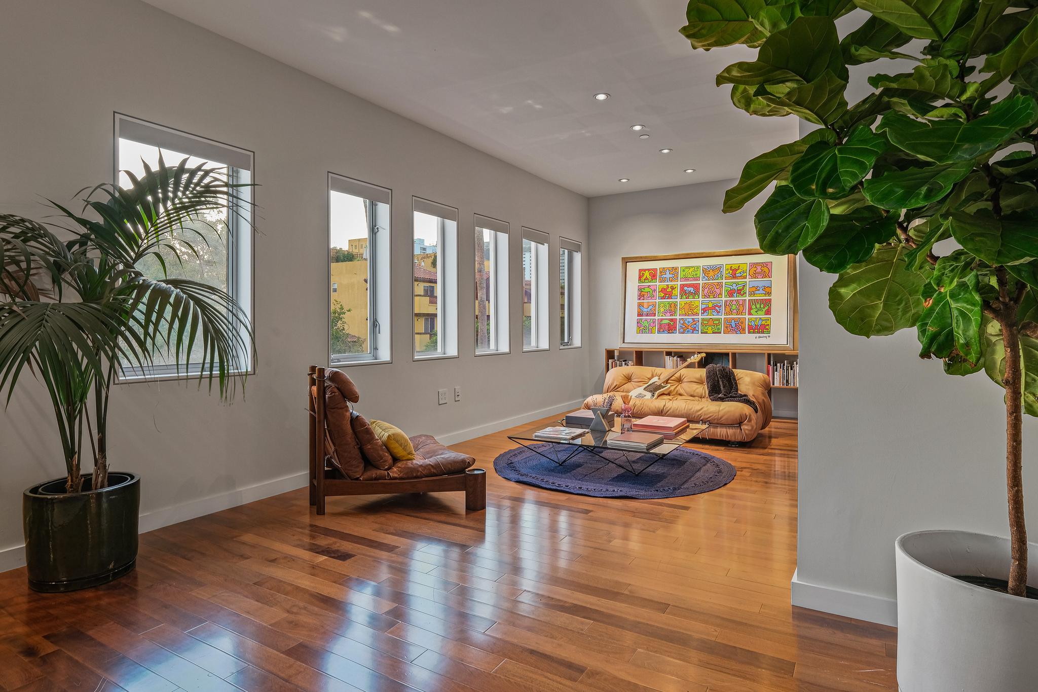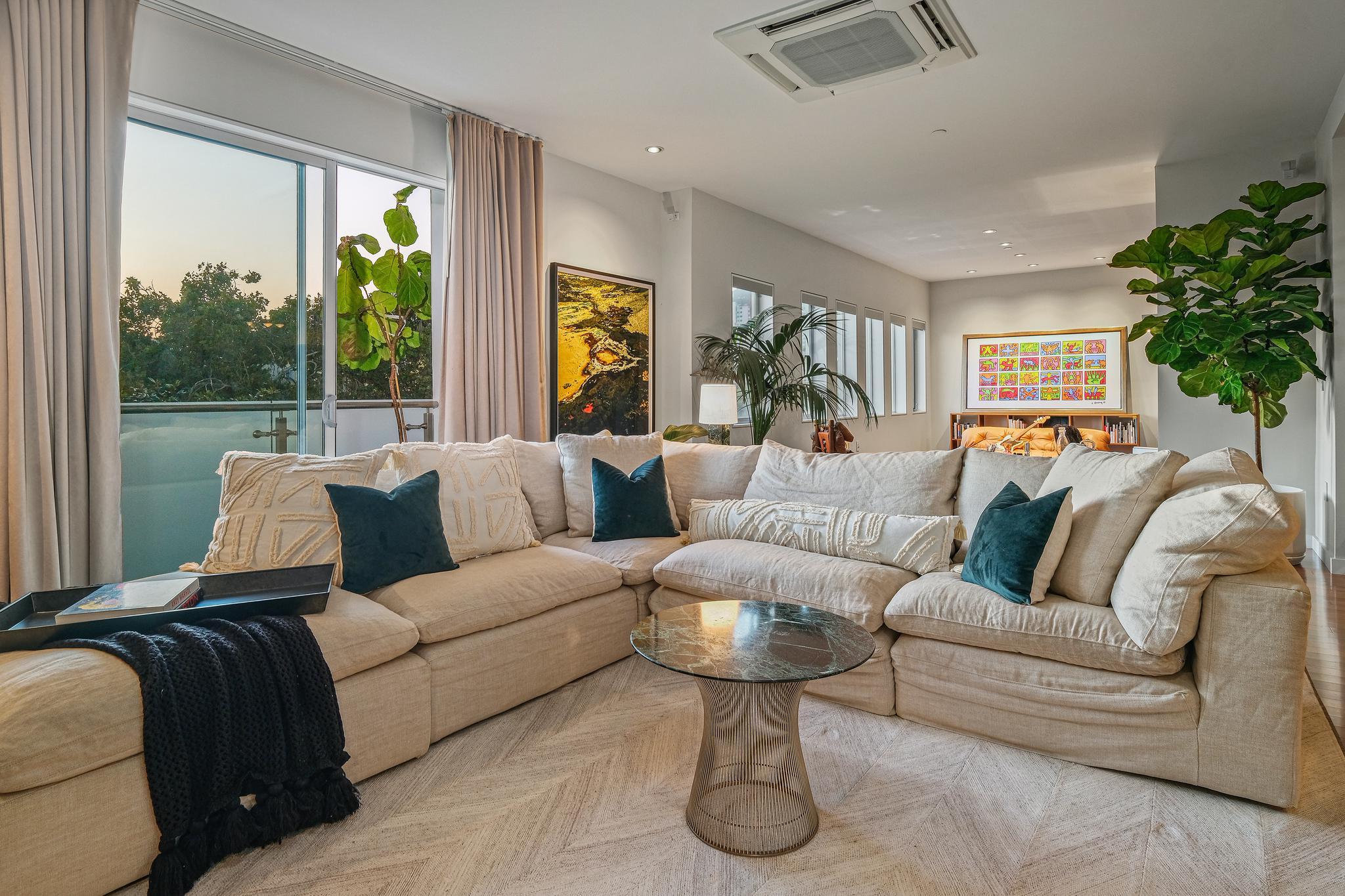 Sleek and stylish, this rare single-level penthouse at the Luminaire has it all. The West-facing orientation overlooks Century City, the Pacific Design Center and the Hollywood Hills. The open floor plan offers graciously proportioned living spaces, high ceilings, expansive windows, and a balcony, providing abundant natural light throughout. There are 3 bedrooms, 3.5 baths, including two luxurious bedroom suites with walk-in closets and their own laundry room. The separate den could be used as a 4th bedroom. Stunning kitchen features Caesarstone counters, Heath tile backsplash and high-end European appliances. Custom upgrades include slate, chevron walnut floors, and a Bose home-theater system. Controlled building and garage entry, with 2-car parking and guest parking as well. Enjoy 360-degree views of Los Angeles from the furnished roof-top deck. This sought-after location is just steps away from Melrose Pl. and some of the best restaurants and shopping LA has to offer.